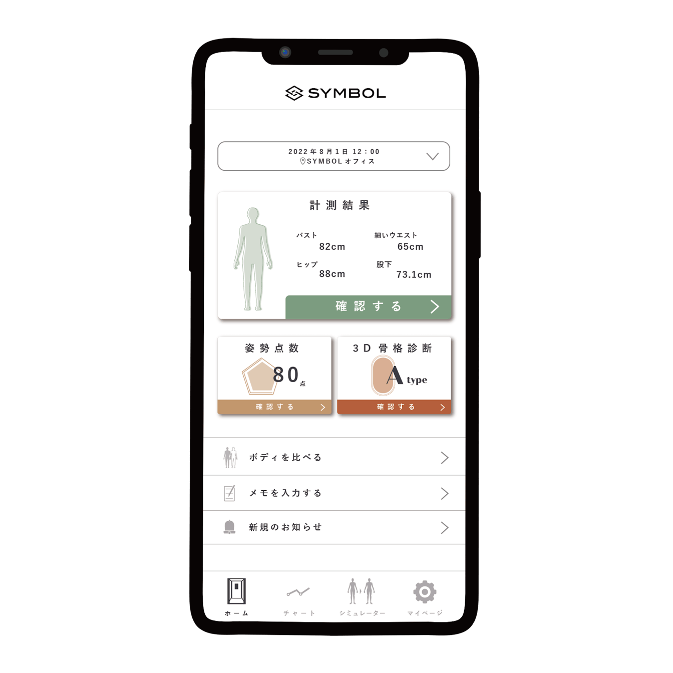 こうして得られた詳細なデータは独自のアルゴリズム診断によって解析され、アプリケーション「MyRealBody®」を通じてユーザーに伝達される。こちらでは約30箇所の身体の採寸値や姿勢診断、3D骨格診断の結果を知ることができ、ユーザーは客観化された自身の身体形状の情報を確認できる。