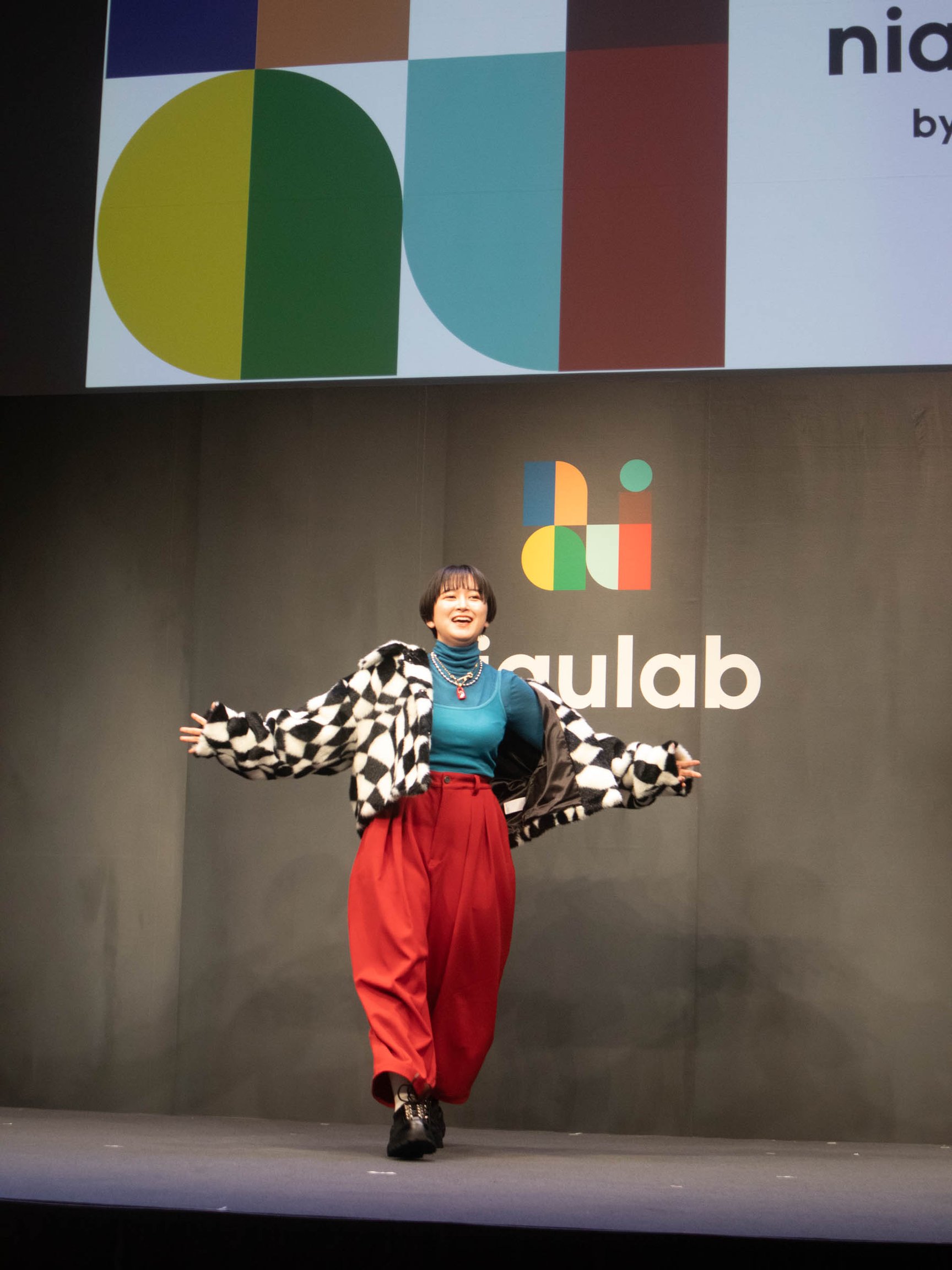 澤田宏太郎代表取締役社長兼CEOは、「niaulabをスタッフで体験した時に似合うは人を笑顔にできると感じました。『世界中をカッコよく、世界中に笑顔を。』という企業理念の実現に直結するサービスになると思っています」と新サービスへの期待を覗かせた。また、ゲストとしてスタイリスト 濱本愛弓とお笑い芸人のラランドが登壇し、niaulab by ZOZOを体験。普段モノトーンのアイテムを選びがちだというサーヤに、濱本は鮮やかな色も似合うと提案。ブラックとホワイトのファージャケット、鮮やかなブルーのシアートップス、レッドのワイドパンツを着用した。