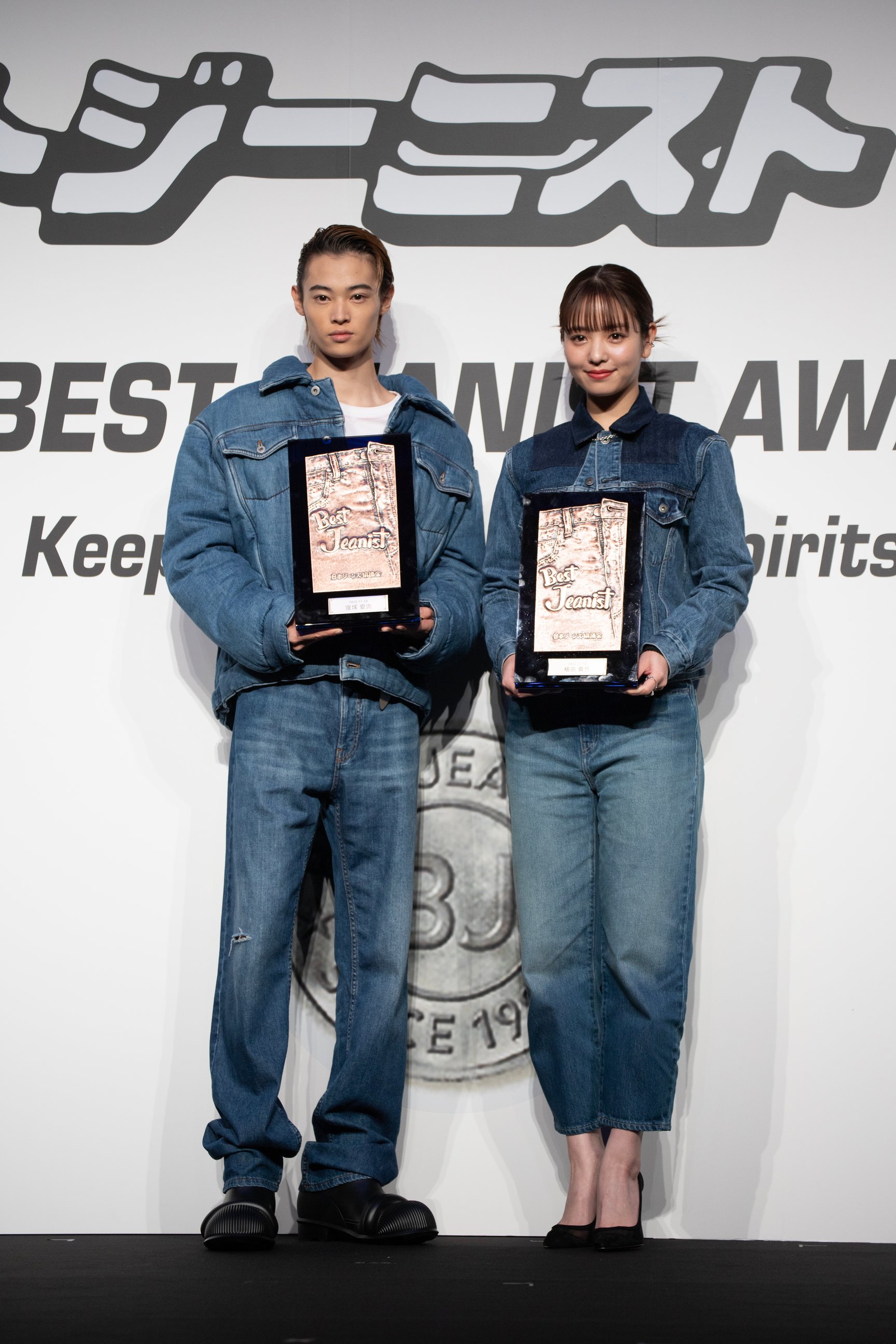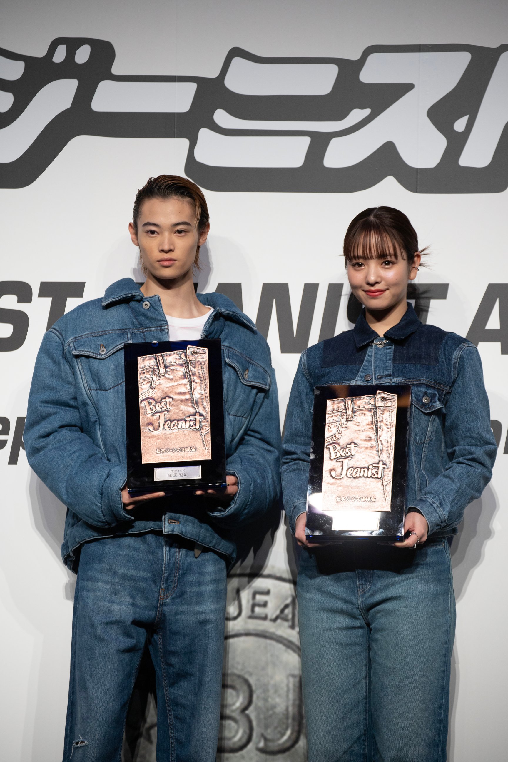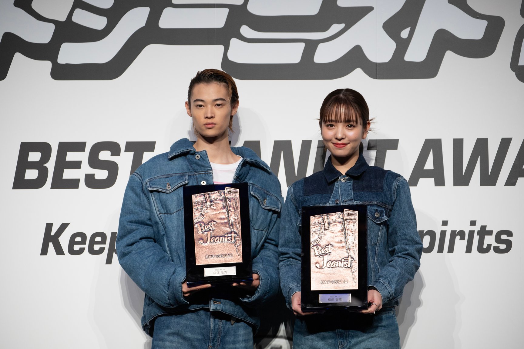 「ワコマリア(WACKO MARIA)」や「ワイルドサイド ヨウジヤマモト(WILDSIDE YOHJI YAMAMOTO)」のモデルを務めるなど、活躍の場を広げる窪塚愛流はコーディネートについて「Gジャンはシルエットがふんわりして可愛らしく、そこがポイントだと思っています」と回答。賞については、「僕にとってジーンズは幼い頃から馴染み深く、今でも欠かせないファッションアイテムの1つです。素敵な賞をいただけて、俳優として仕事に対しての意欲も高まり、やる気に満ち溢れています。地に足をつけてこれからも精進してまいります」と述べた。