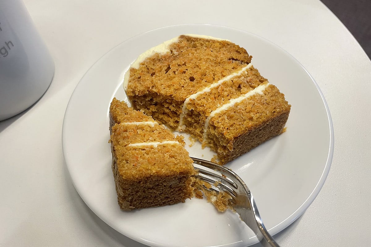 生地はしっとりとしていて、優しいにんじんの風味が口に広がっていく。そして濃厚なクリームも最高。ほのかに感じるクリームチーズと砂糖の甘みが生地と絶妙に相まって最高の味わいだ。名前の通りにんじんが入っているけど、にんじん嫌いな人だってきっと食べられる。
