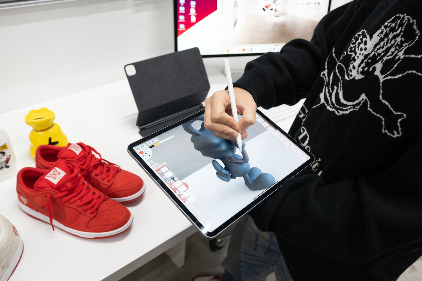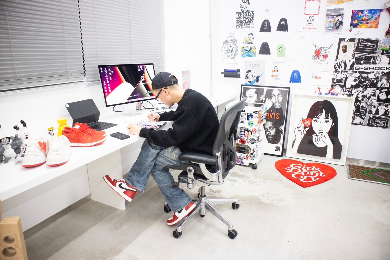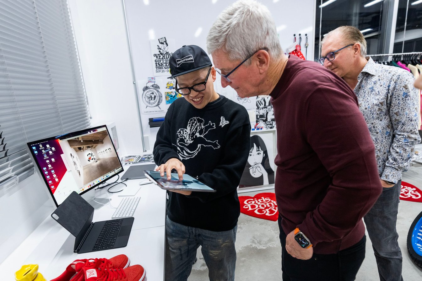 スタジオへの視察では、「ナイキ(NIKE)」「バドワイザー(BUDWEISER)」「パリ・サンジェルマン(PARIS SAINT-GERMAIN)」などと取り組んだコラボプロジェクトをはじめ、自身の活動についてヴェルディが説明。作品制作において日頃、MacBook ProやiPadなどを活用しているといい、実際にiPadとApple Pencilを使って「ガールズ ドント クライ(Girls Don't Cry)」のグラフィックやオリジナルキャラクター「ヴィック(VICK)」を描く様子も披露した。クックCEOは「良いフォントですね。素晴らしい」と話しながら、作品制作にまつわるエピソードに耳を傾け、ヴェルディとの交流を楽しんだ。ヴェルディは「専門学生の頃にお金を頑張って貯め、iMacを買ってデザインを始めた。そこから制作の場面ではアップル製品をずっと使い続けている。これから勉強していく段階だが、アップル製品やアプリケーションを活用しながら、将来的には3Dアニメーションの制作にも挑戦してみたい」と意気込みを語った。