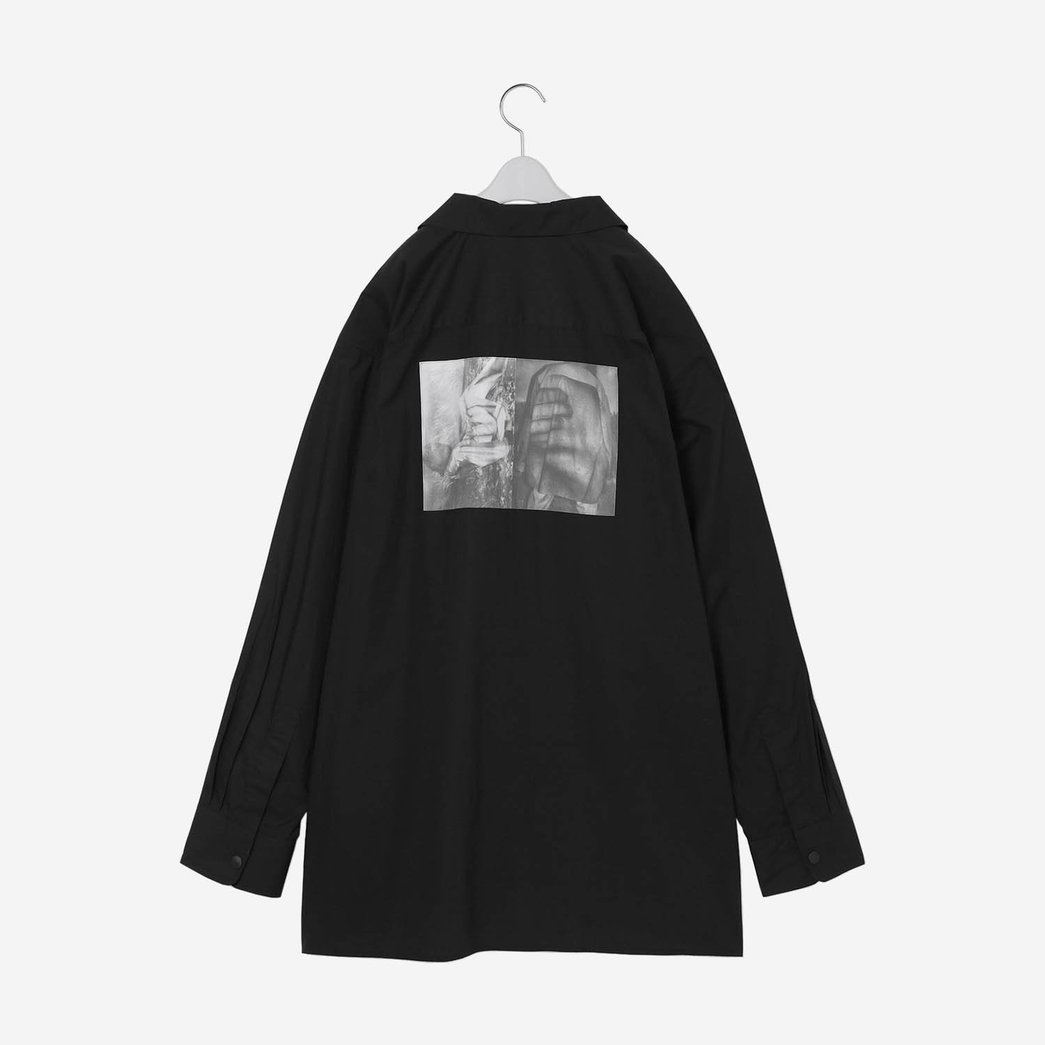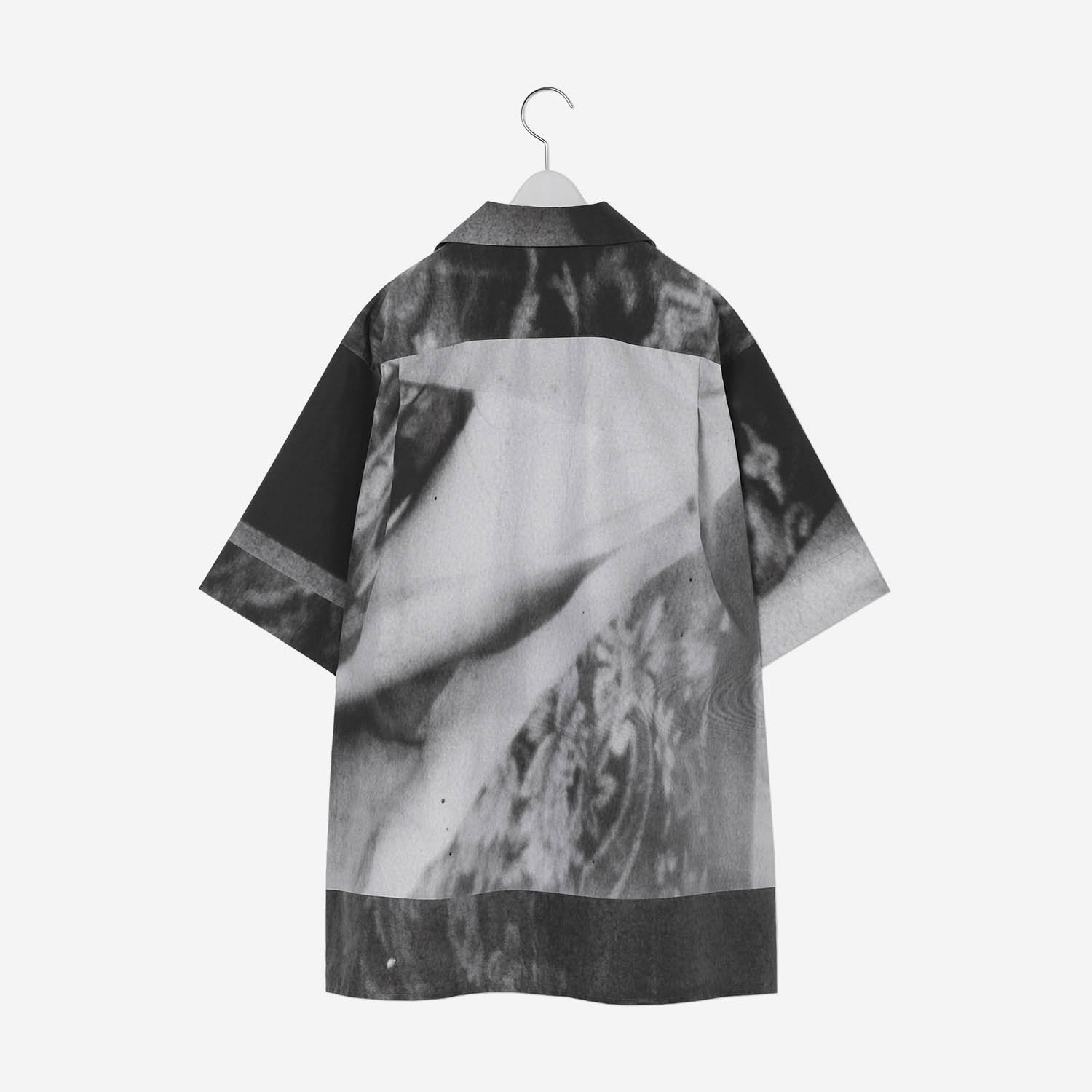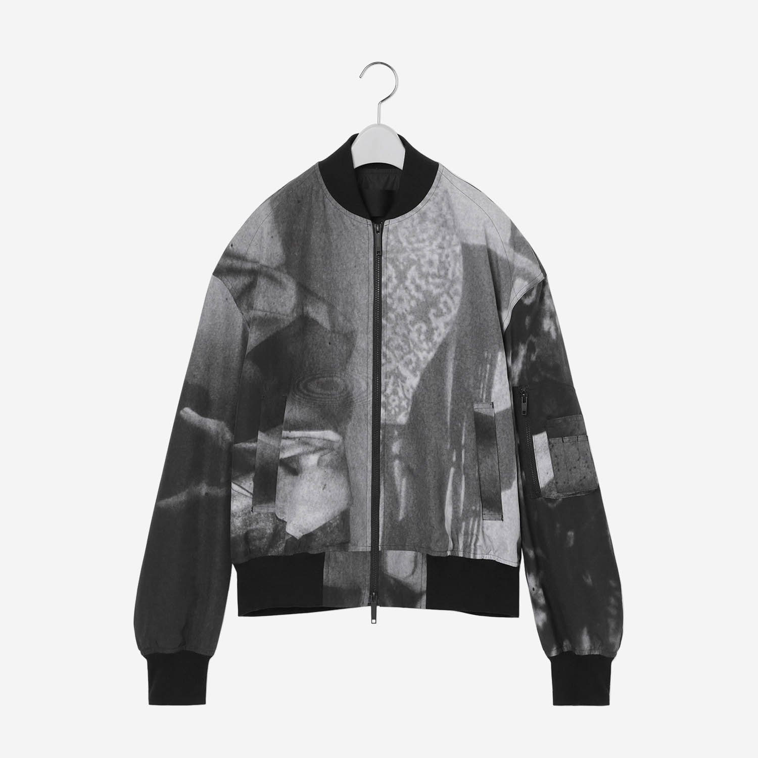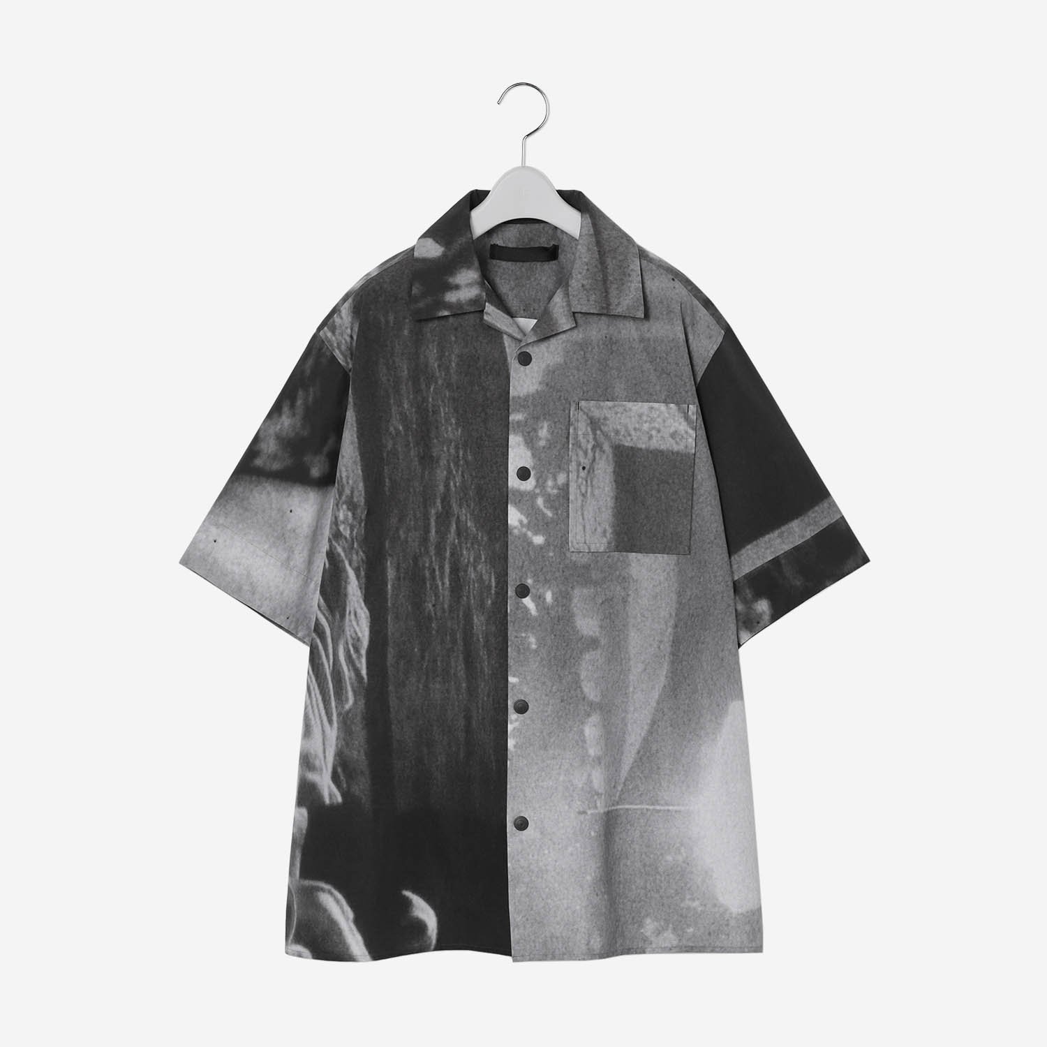 今回のコラボは、第1弾コラボのアイテムを着用したモデルを横田が撮影し、その作品をウェアに落とし込んだ。モノクロの写真をランダムに施したショート丈のMA-1ジャケット「DY Short MA-1 Jacket」(6万3800)をはじめ、胸と背面にモノクロの作品をプリントしたオーバーサイズの開襟シャツ「DY Oversized Shirt」(5万600)や、グラフィックを全面に配したセットアップで着用可能な半袖Tシャツ「DY Drop Shoulder Tee」(2万6400)とショーツ「DY Sports Shorts」(4万8400/いずれも税込)など全9型を用意する。なおウェアにプリントするグラフィックは1点ごとに異なるアートピースとなっている。