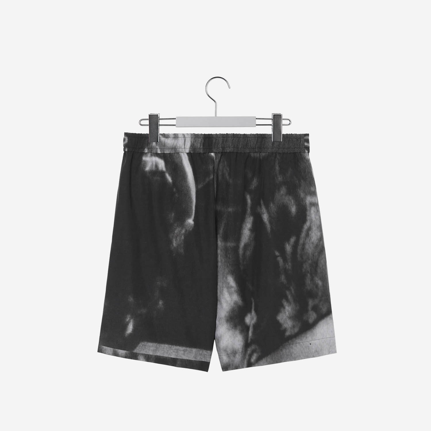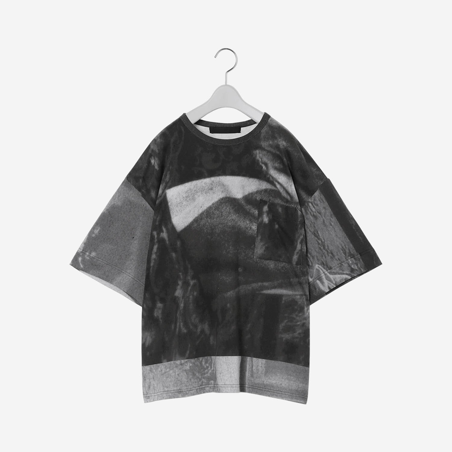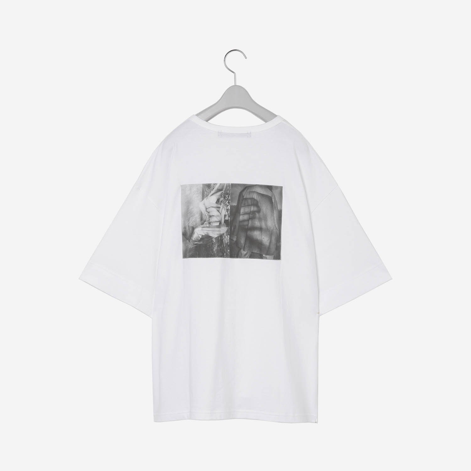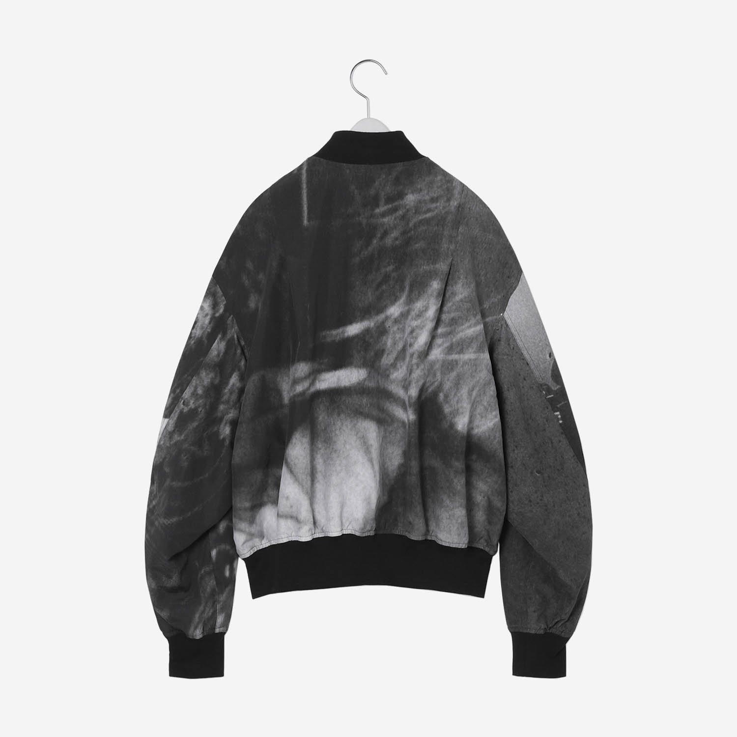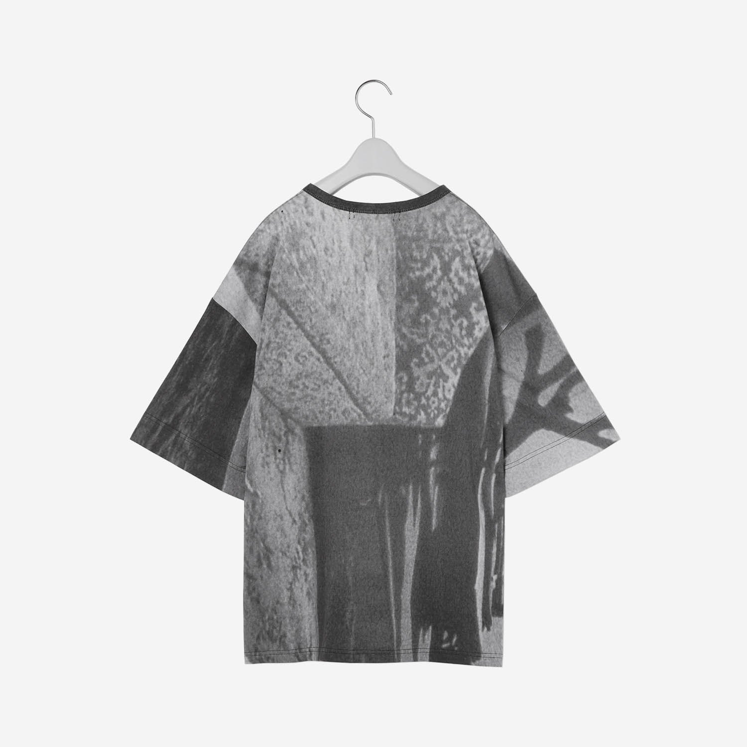 今回のコラボは、第1弾コラボのアイテムを着用したモデルを横田が撮影し、その作品をウェアに落とし込んだ。モノクロの写真をランダムに施したショート丈のMA-1ジャケット「DY Short MA-1 Jacket」(6万3800)をはじめ、胸と背面にモノクロの作品をプリントしたオーバーサイズの開襟シャツ「DY Oversized Shirt」(5万600)や、グラフィックを全面に配したセットアップで着用可能な半袖Tシャツ「DY Drop Shoulder Tee」(2万6400)とショーツ「DY Sports Shorts」(4万8400/いずれも税込)など全9型を用意する。なおウェアにプリントするグラフィックは1点ごとに異なるアートピースとなっている。