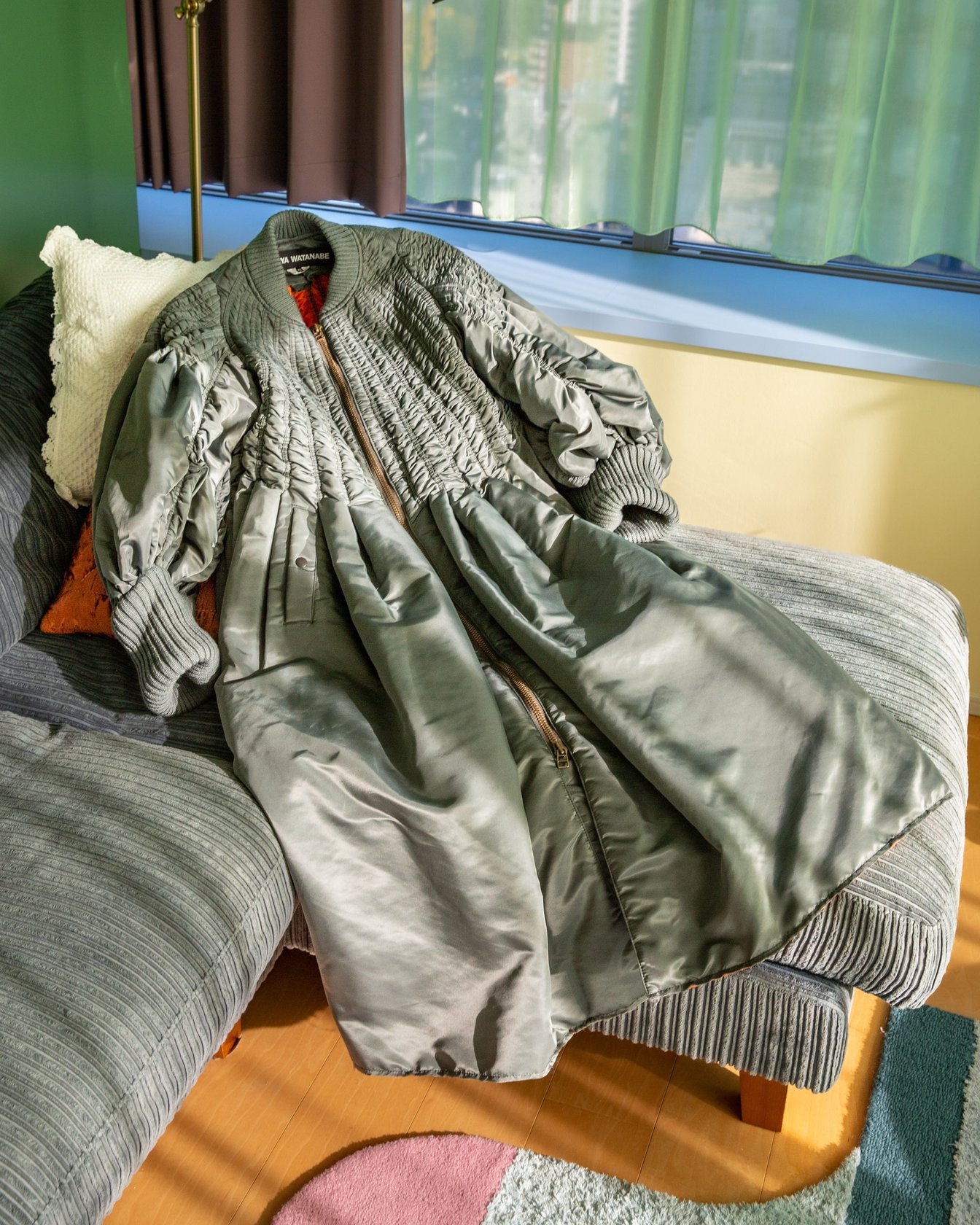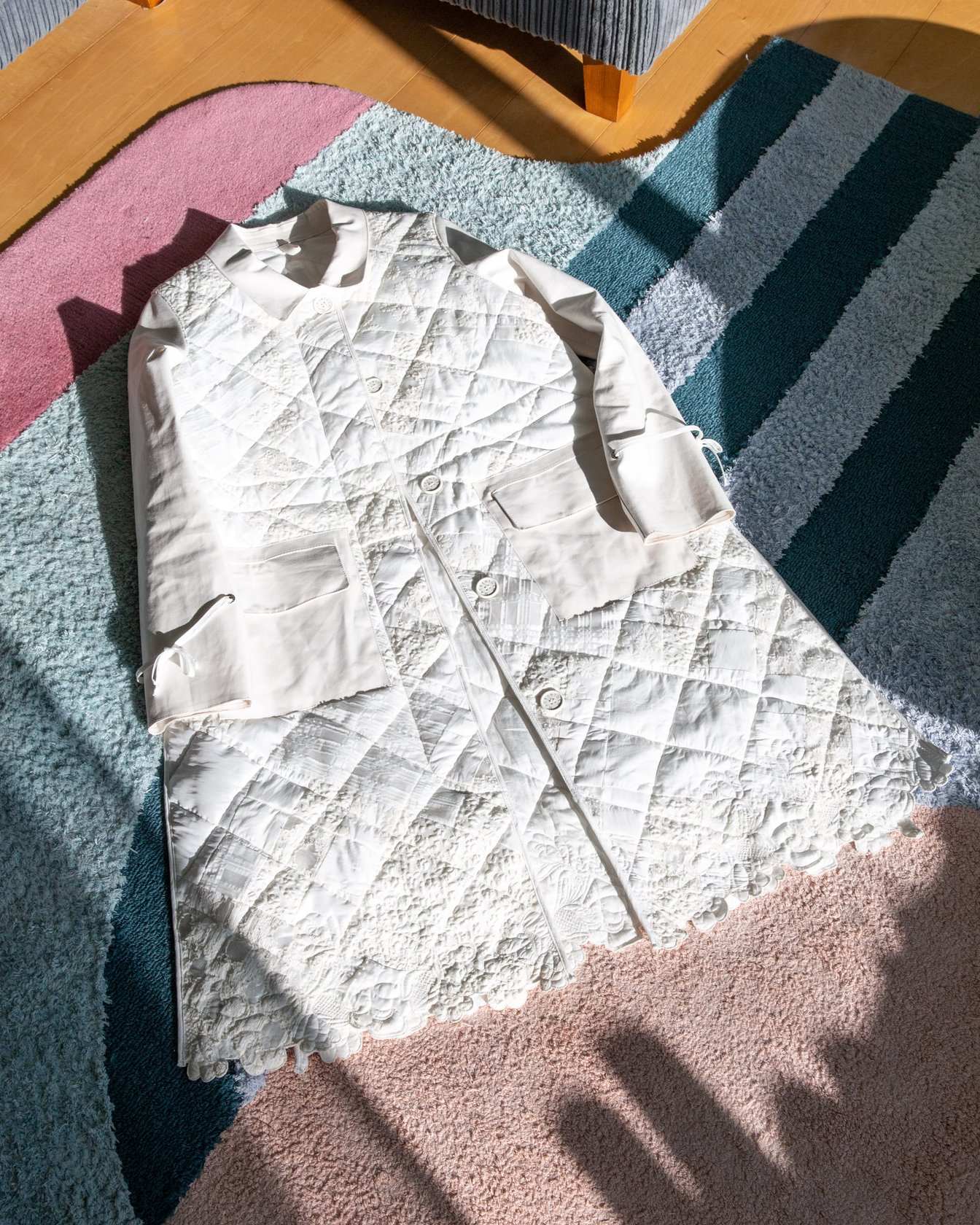 F:生地にキルティングとレースが合わさっていて、形は普遍的なマッキントッシュのコートの形なんですね。どんなオケージョンで着用していますか?
