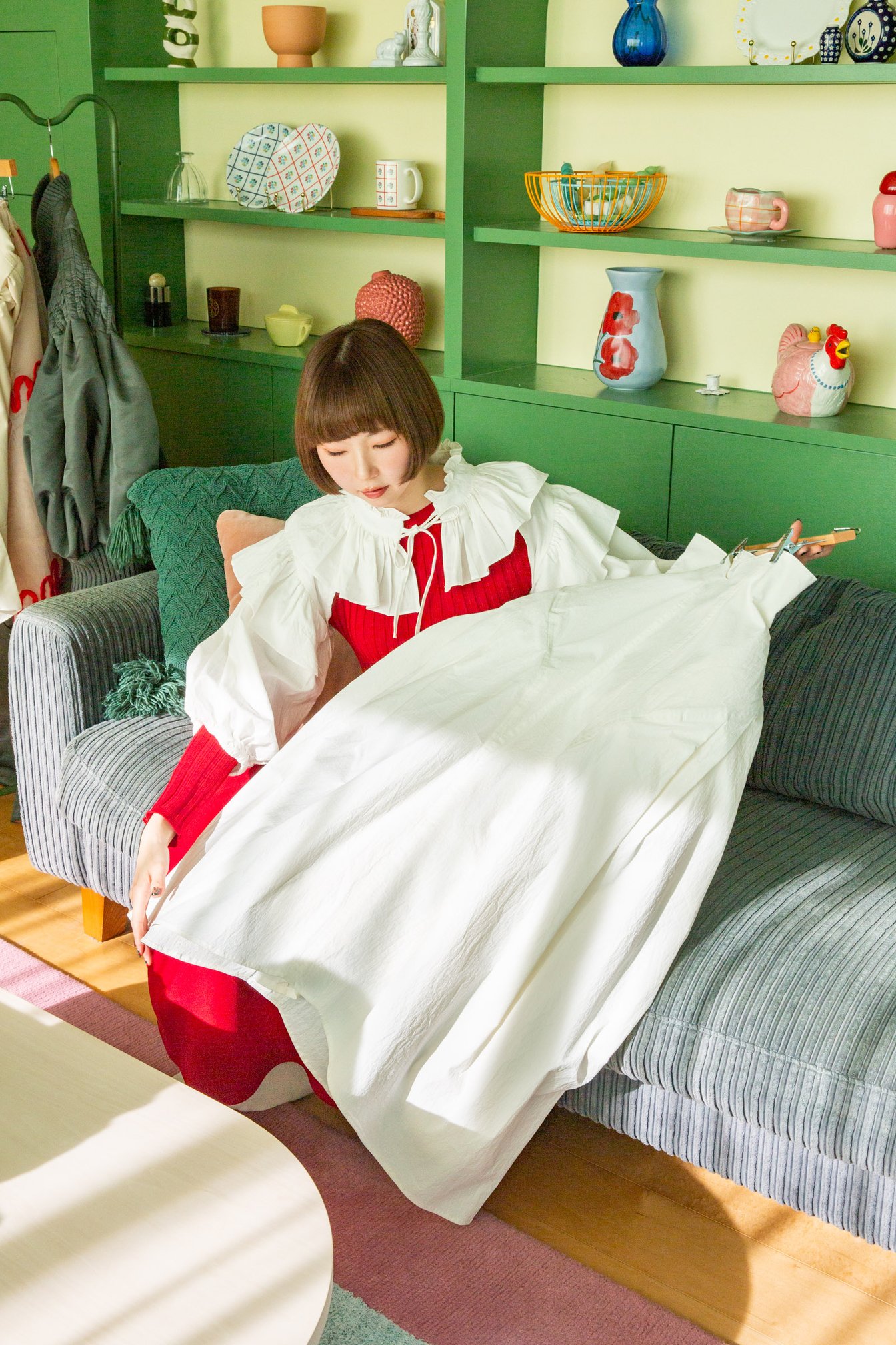 あさぎーにょ:袖もバルーンスリーブになっているのが可愛くて。買ってすぐに現地で着用していたのですが、たくさんの方に褒めていただいてうれしかったんです。ロンドンの有名なチョコレート屋さんで、80歳くらいのおじいちゃまに「素敵な服を着ているね」と声をかけられて、一緒に写真撮影もお願いされて(笑)。この服を通じてたくさんの方とコミュニケーションを取ることができました。
