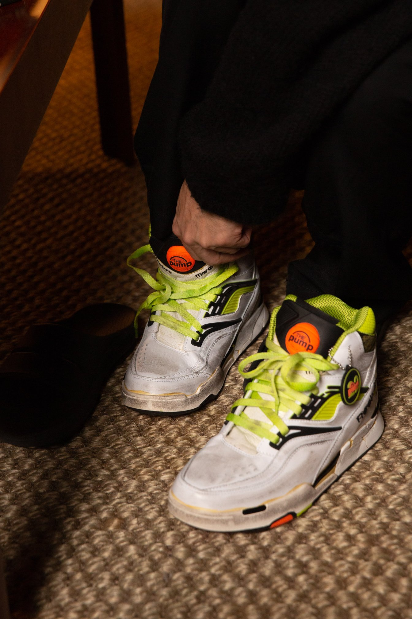 山口:これはリーボックではなくてマルジェラ制作のスニーカーなんですよね。リーボックのデッドストックをマルジェラが再現したという。だからこのポンプならではのボタンの部分とか、本来は空気を入れるポンプの役割のはずなんですが、ただのプニュプニュ。