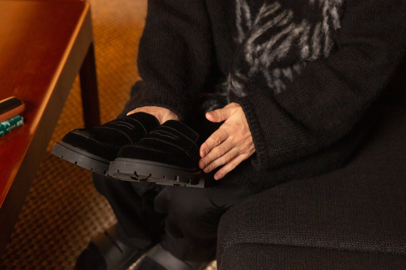 山口:持っていなくて、セットアップに合う靴を探していたいんです。それでこれを見つけた時に「あ、これだなあ」と思って。ちょっとボテッとしていて最高にかわいいんですよ。このポニーレザーはフェイクなんですが、僕は少し懐かしい感じもして。