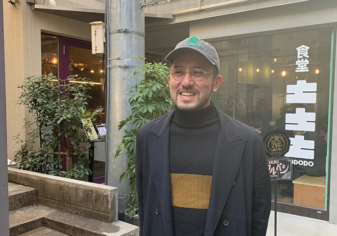 オーナーの鈴木克哉さん。CCXがあるのは下北沢の駅かがほど近いながらも路地裏の一角。美味しいことで定評のあるサンドウィッチショップやカレースタンド、食堂などがある人気エリア。