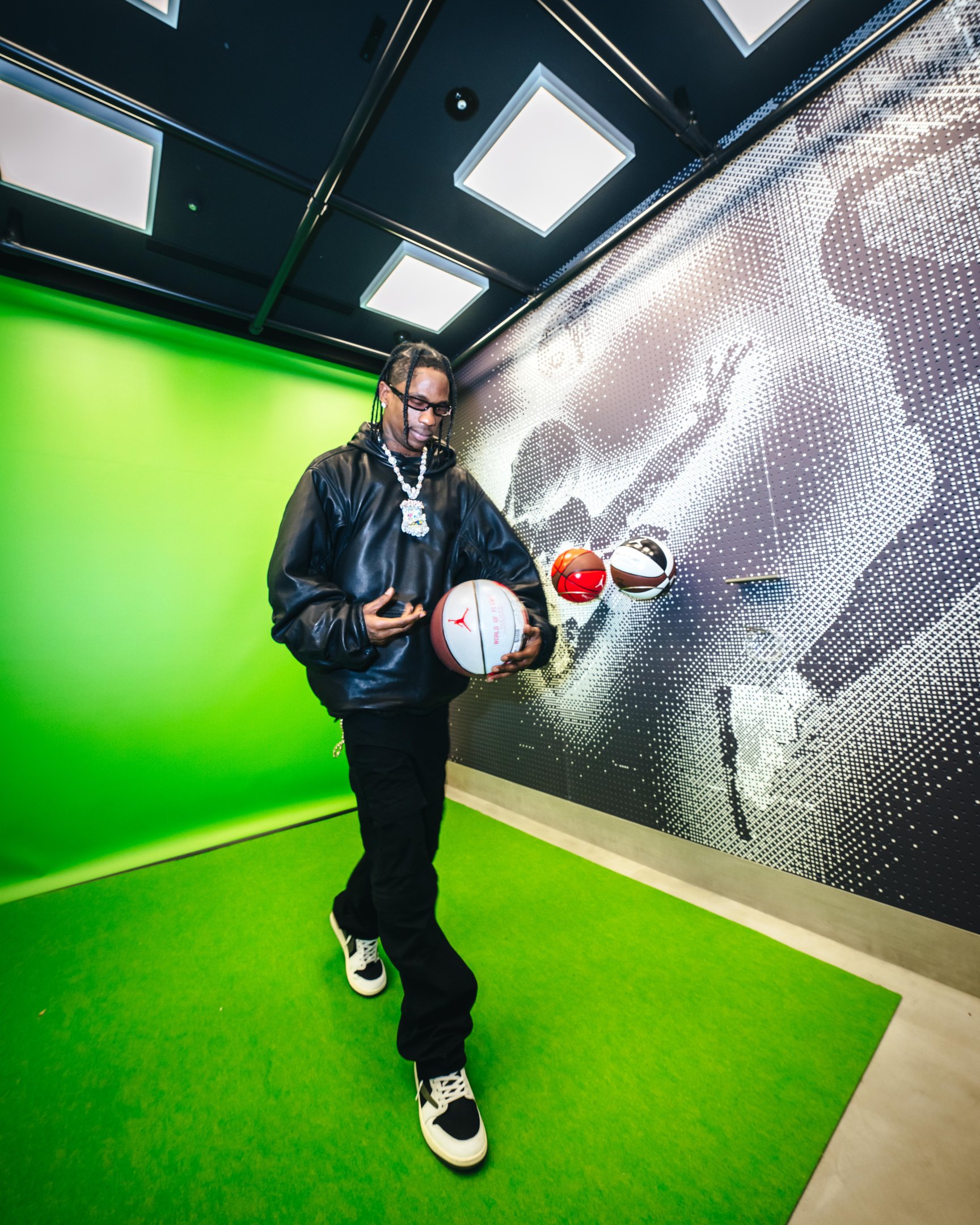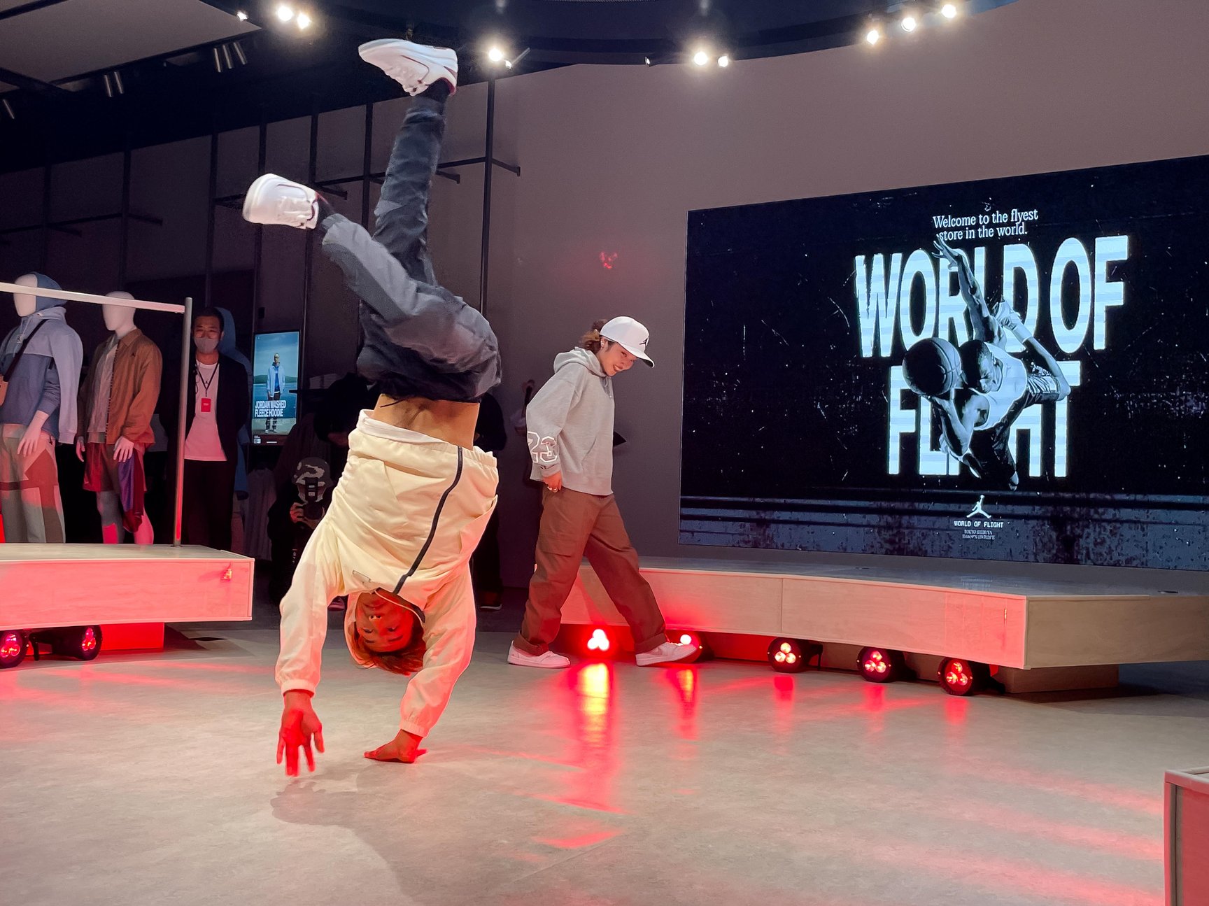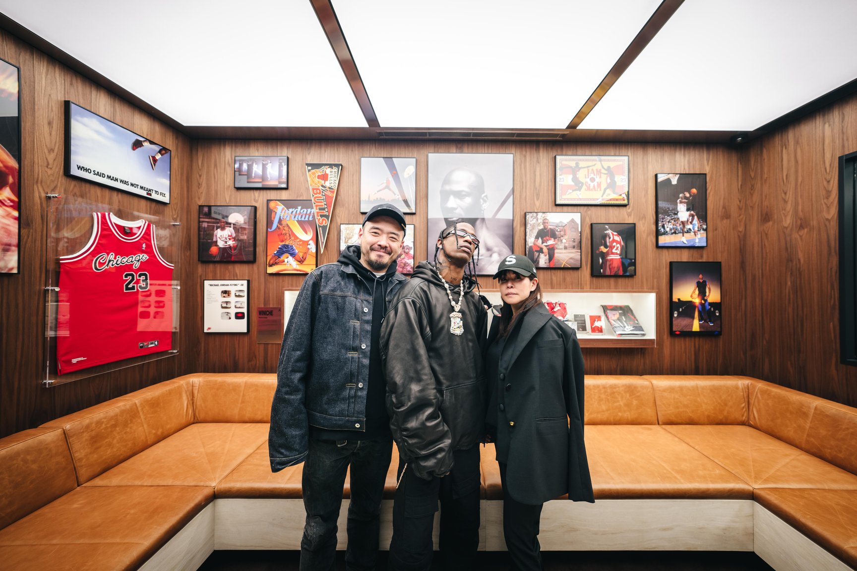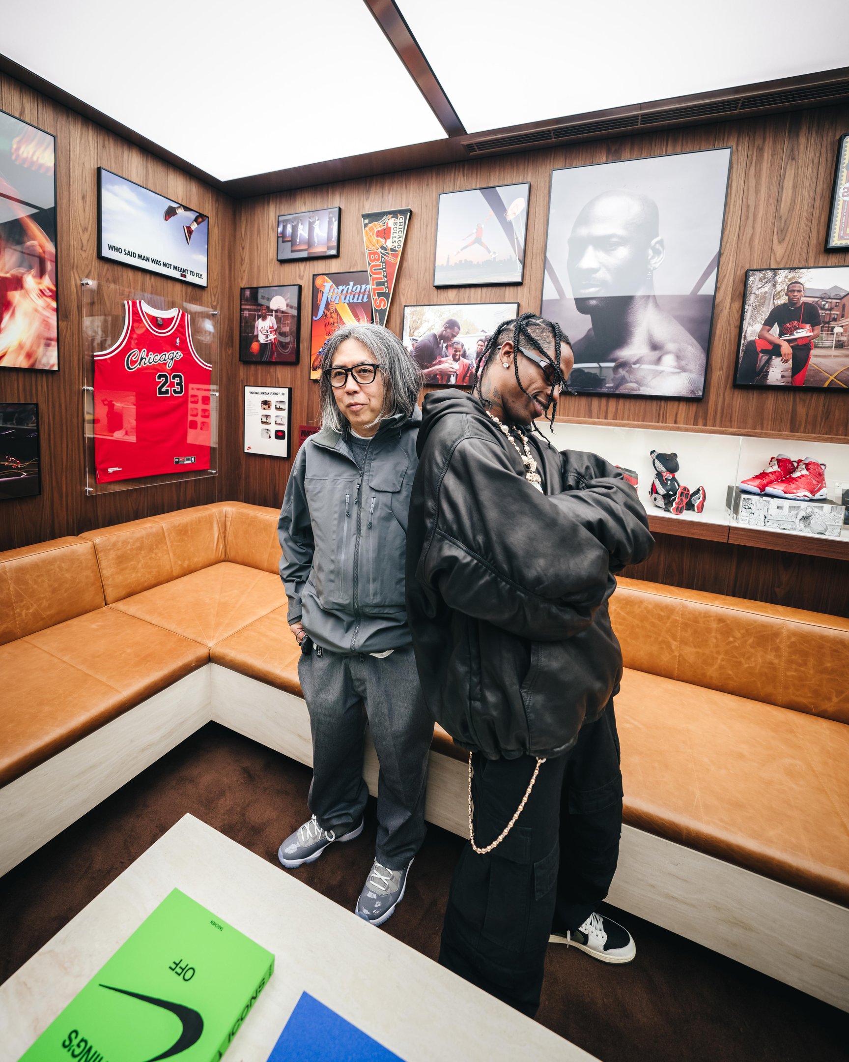 23日の夜にはストアイベントと、両国国技館でスペシャルイベント「センターコート(Center Court)」を開催した。ストアイベントでは、ブレイクダンサーのShigekixとAmiによるダンスパフォーマンスが行われたほか、来場者がパスポートに見立てたスタンプラリーをすることでノベルティが手に入るイベント限定コンテンツなどを用意。ケータリングでは、マイケル・ジョーダンが現役時代に試合の4時間前に必ず食べていたというサーロインステーキと野菜スティック、ジンジャーエールをそれぞれアレンジしたメニューをはじめとするフードとドリンクが提供された。また、スペシャルゲストとしてトラヴィス・スコットが来店し、ワークショップやコンテンツ スタジオを実際に体験したほか、藤原ヒロシや「サカイ(sacai)」の阿部千登勢、「レディメイド(READYMADE)」の細川雄太など記念イベントに集まったカルチャーリーダーたちと写真撮影を行うなど、交流を楽しむ様子が見られた。