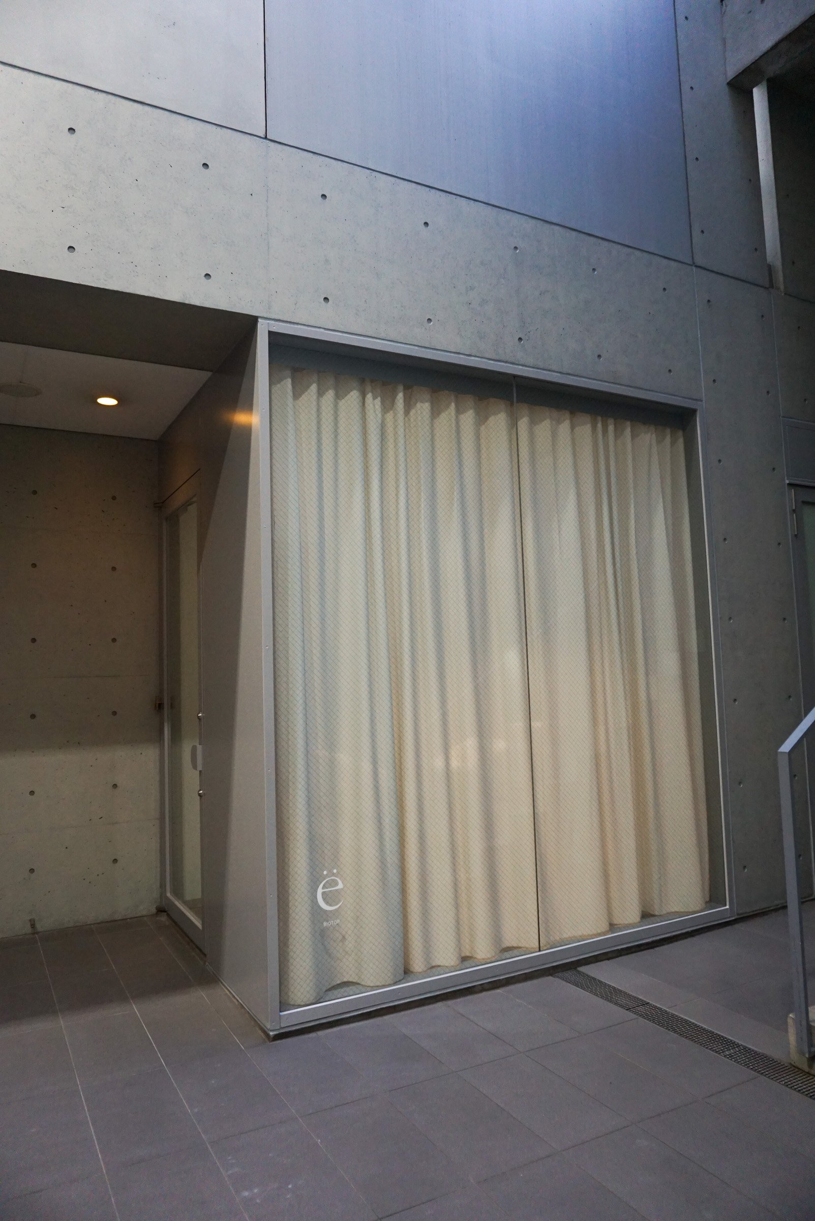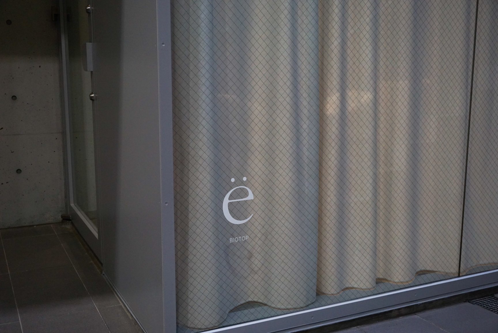 表参道駅からみゆき通り沿いを歩いて4分。都会ながら閑静なエリアに佇む安藤忠雄建築のビルの一室に「ビオトープ(BIOTOP)」のオリジナルレーベル「ヨー ビオトープ(ë BIOTOP)」の初となる直営店がオープンする。ロゴを主張しない、まるで隠れ家のような店内では打ちっぱなしのコンクリートを活かしながら、淡い色合いのカーテンが柔らかな雰囲気を演出。商品は極力置かずにラックのみで見せる、無駄な要素を一切省いた空間は、ファッション感度の高い女性から支持を集めるヨー ビオトープのミニマルで自然体な世界そのものだ。