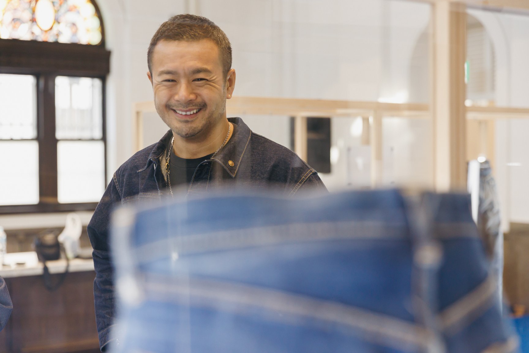 リプロダクト制作に際しては、本物のヴィンテージアイテムを直接観察してディテールを研究することができず厳密な再現が難しいという加工場の課題に対し、藤原が実際に私物コレクションの現物を貸し出すことで高い再現性を実現。藤原は「児島のデニムが優れているというイメージは勿論知っていましたが、実際に足を運んでみると、そのものづくりの素晴らしさを実感できます。この職人の技術はしっかりと残していってほしいです」と話した。
