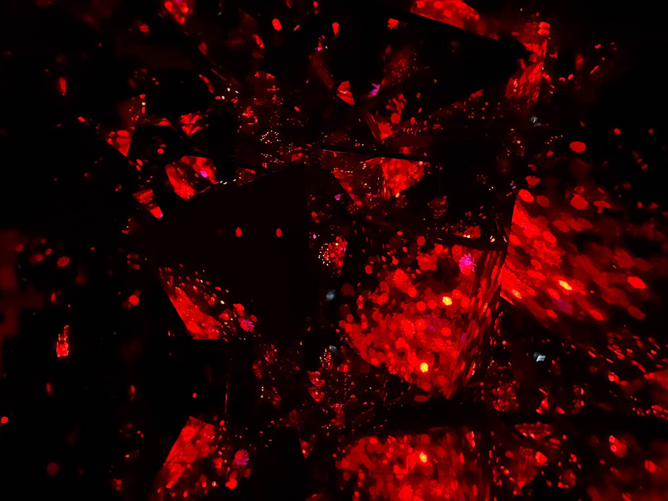 現在も制作中の空間「Megalth Crystal Formation」では、真っ暗な空間に複数のLEDパネルが配置され、チームラボボーダレスの世界を構成する様々なアート群を投影。作品同士が複雑に関係し合い、境界なく連続する世界を表現するという。