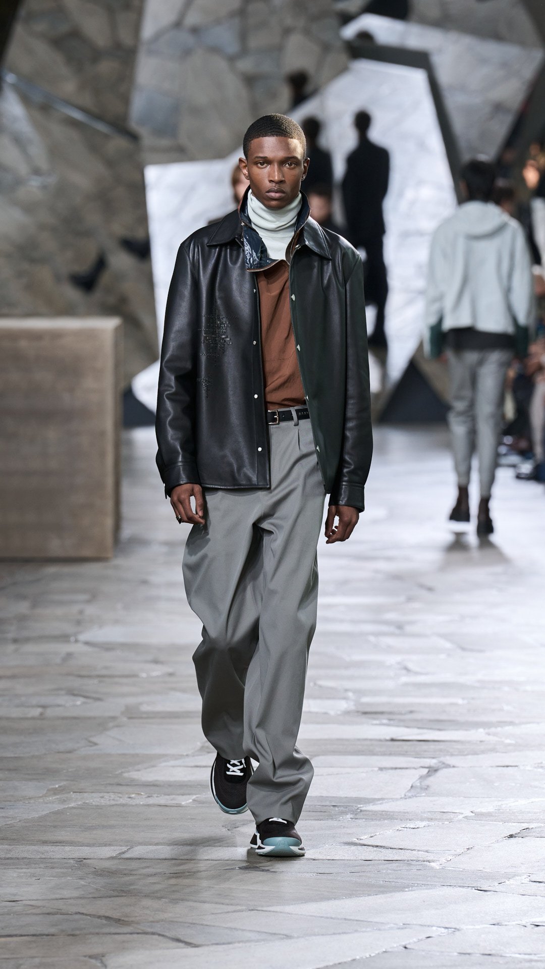 ヴェロニク・ニシャニアン(Véronique Nichanian)が手掛ける「エルメス(HERMÈS)」が1月21日、2023年秋冬メンズコレクションを発表した。会場はパリ7区の1958年に建てられたユネスコ本部。ミラーを多面的に配したセットを背景に、モデルたちが軽やかなウォーキングを披露した。