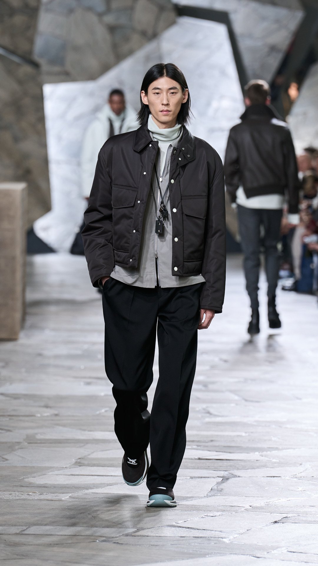 さらに、快活さを引き出すスニーカーやジップブルゾンなども登場し、男性たちに「冬でもおしゃれをして街へ出よ」と呼びかけているかのようだった。