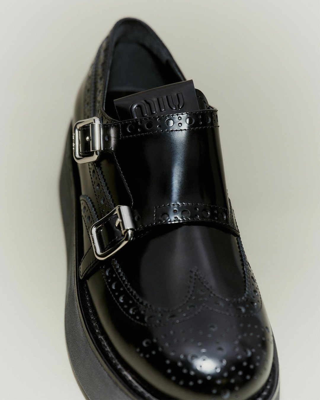 さらに、2024年春夏ファッションショーで発表された「チャーチ(Church's)」とのコラボレーションシューズ第2弾が登場。歴史あるチャーチのアイコン「シャンガイ(Shanghai)」をベースに、エイジング加工を施したポリッシュドレザーとキャンバスのパネルを組み合わせた、初夏のリラックスムード溢れる一足となっている。