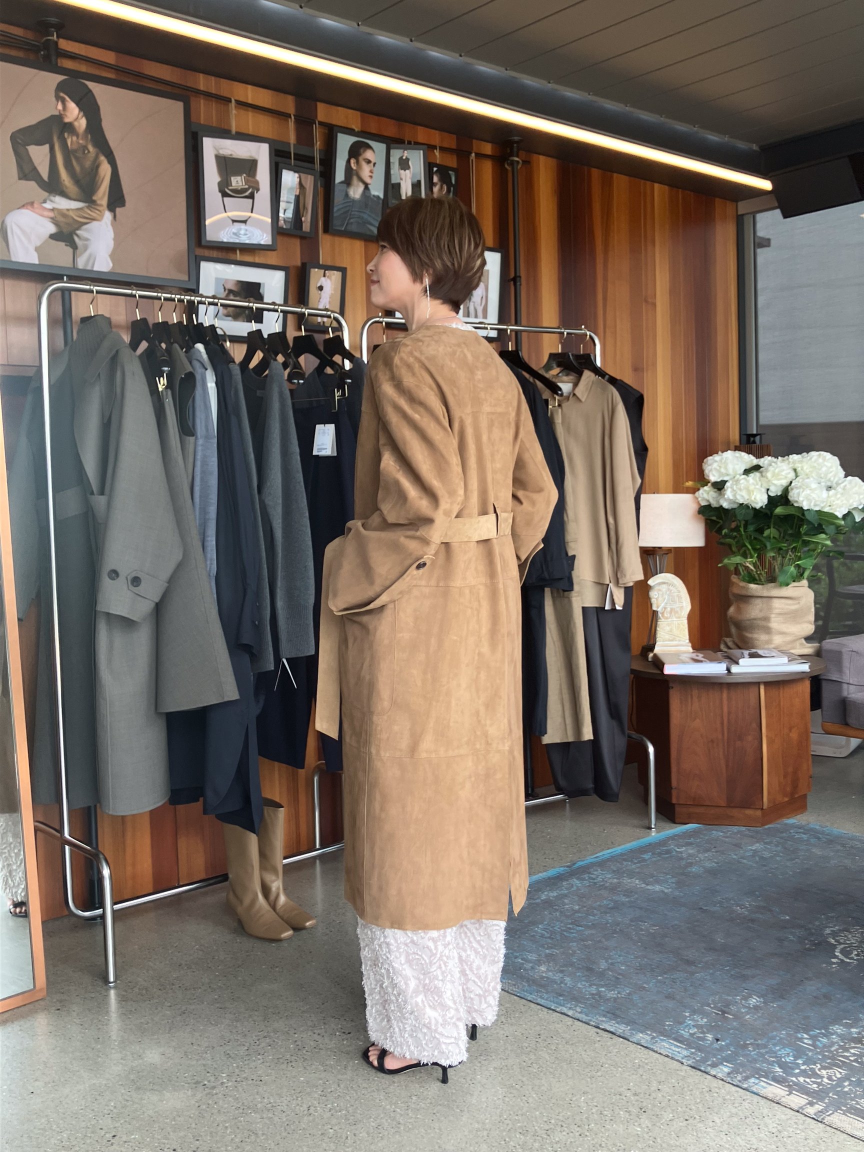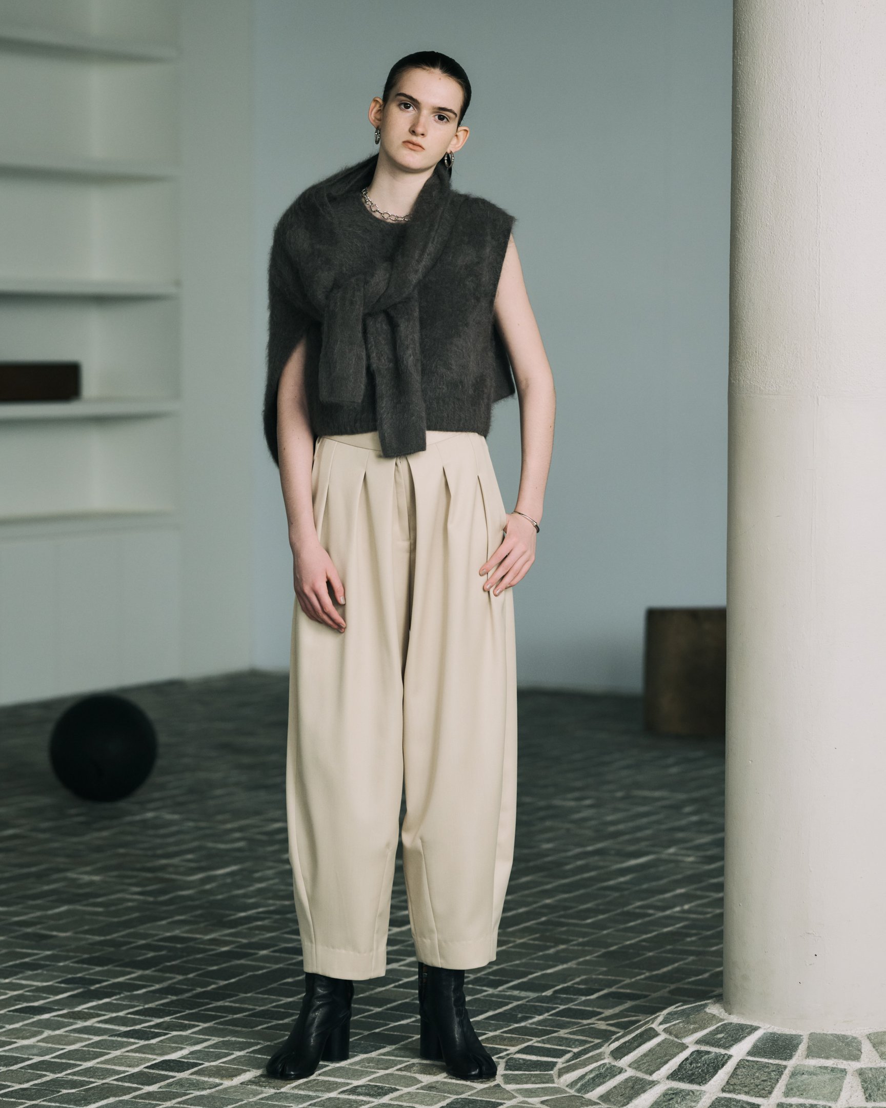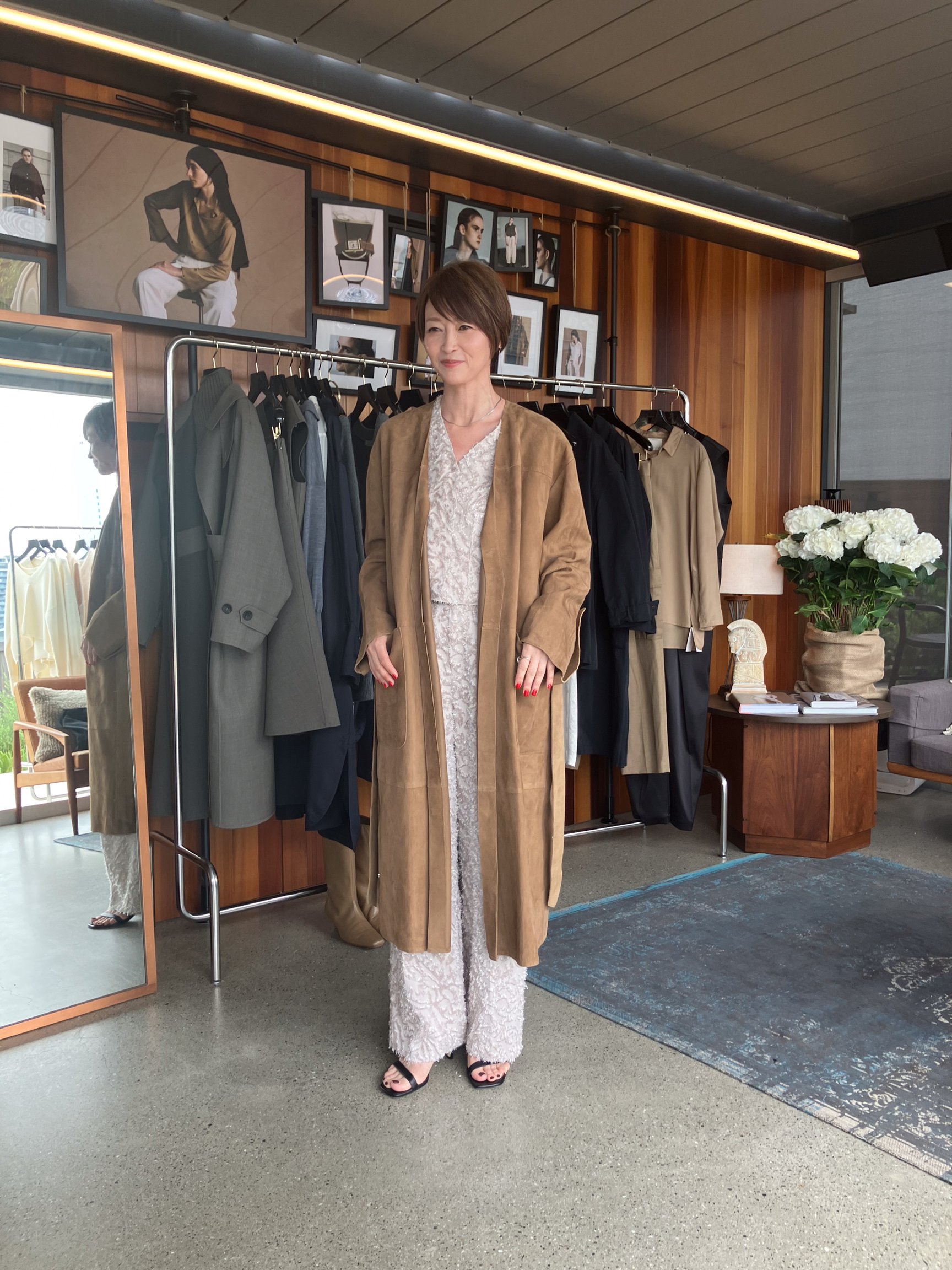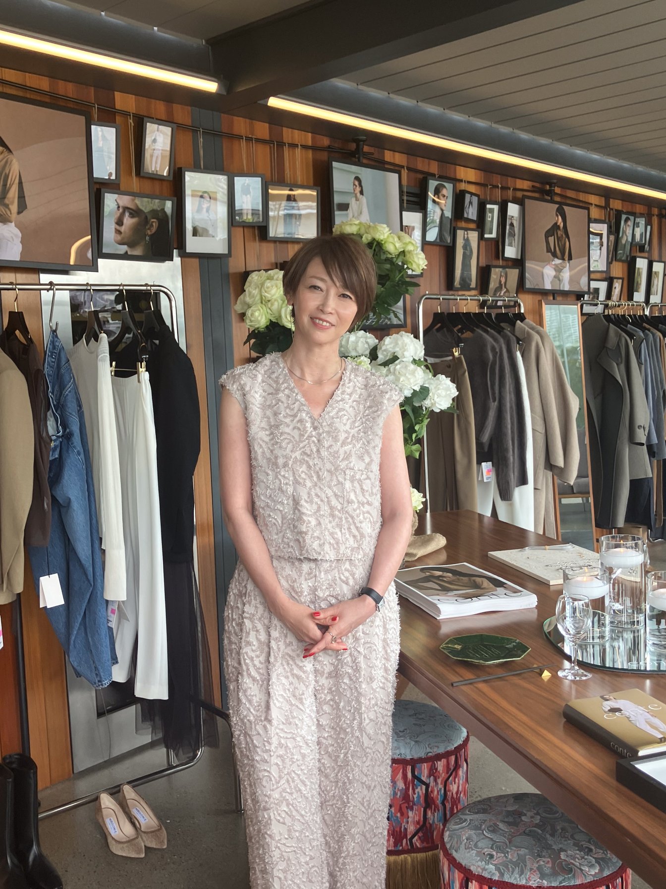 ステートメントとして“新しいベージュ”を意味する「ノーベルベージュ(NOVEL BEIGE)」を掲げる通り、同ブランドでは多様なトーンの「ベージュ」カラーを基調にコレクションを製作。辺見は「ベージュという色は、女性の美しさや艶やかさを引き出すことのできる魅力的なカラー。でも、年齢によって似合うトーンは変化していくからこそ、コンテでは40代後半の私と同世代の大人の女性たちのための、新しいベージュの見せ方をしたいと思っています」と背景にある思いを語る。