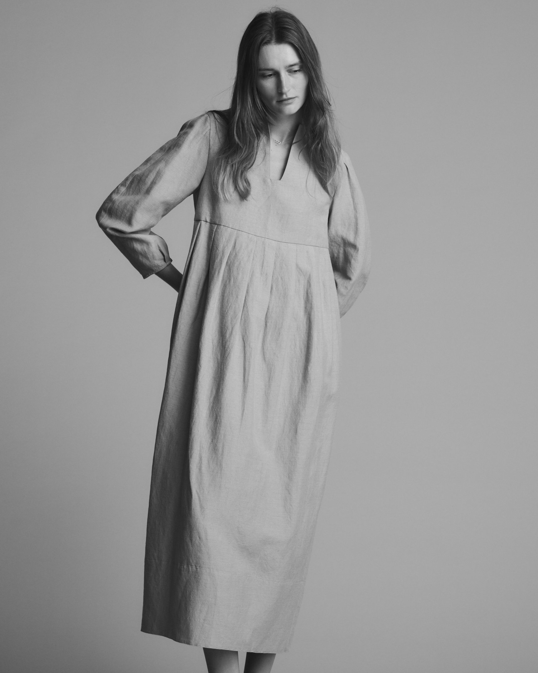 ブランドコンセプトは、「ナチュラルモード(NATURAL MODE)」。年齢や経験を重ねた強さや自信を持つ大人の女性たちが、凛としながらも自然体でいられるような抜け感や柔らかさを取り入れたアイテムを提案する。フェミニンな色味やシルエットをベースにしつつも、素材やディテールでメンズライクな要素を取り入れることで、甘さを抑えた上品なバランスを備えた、オン・オフ両方で着られるアイテムに仕上げた。