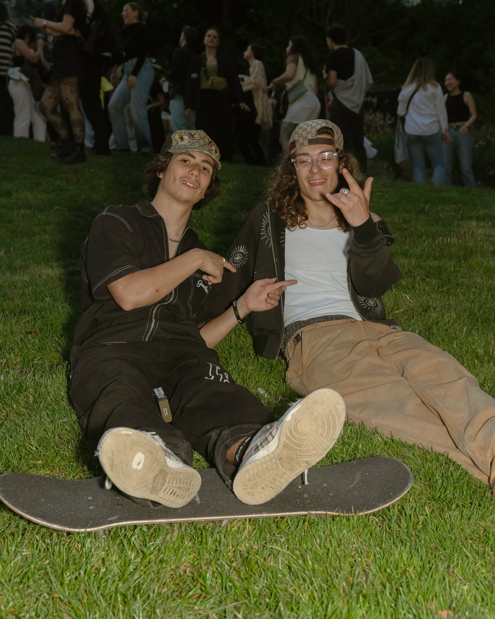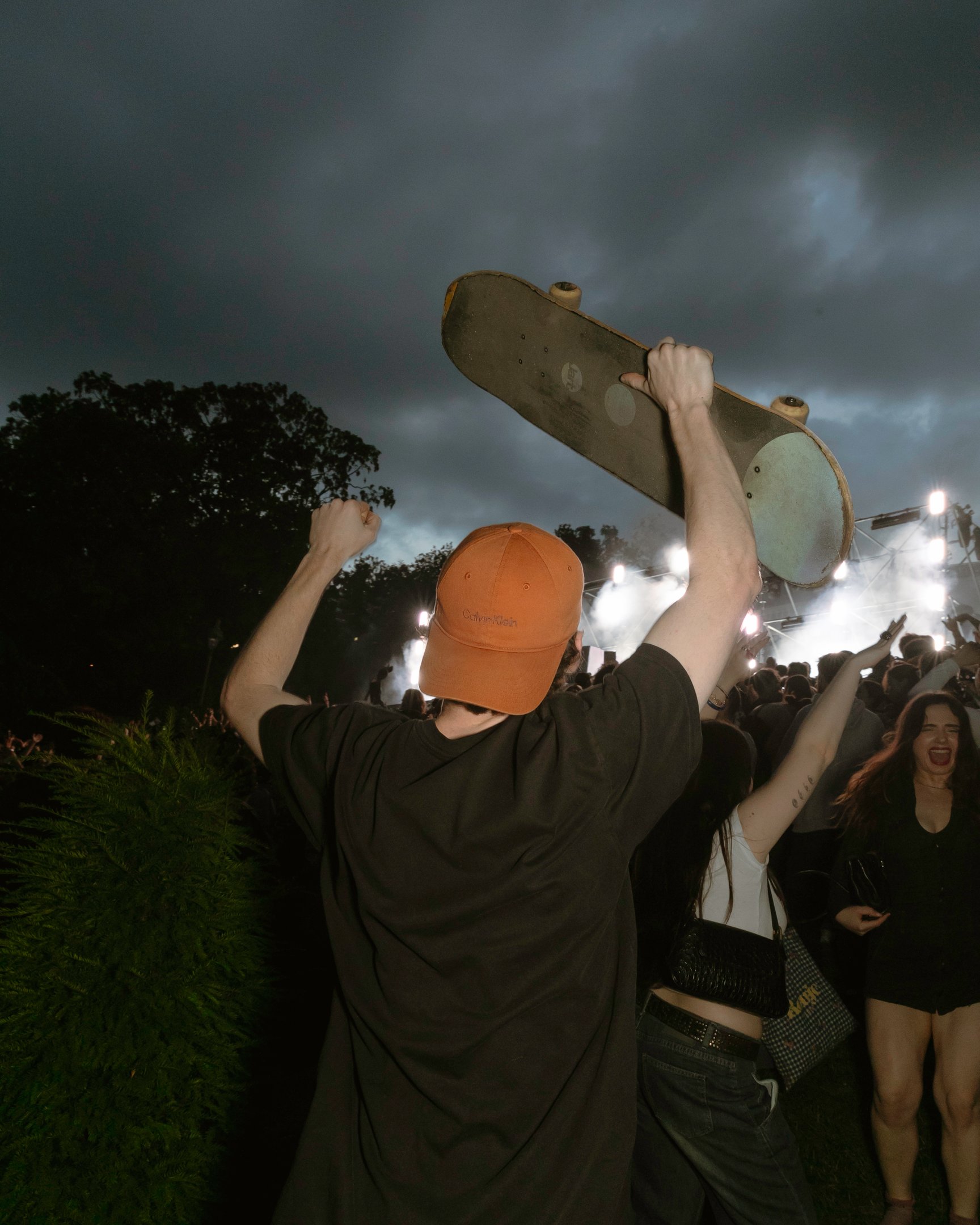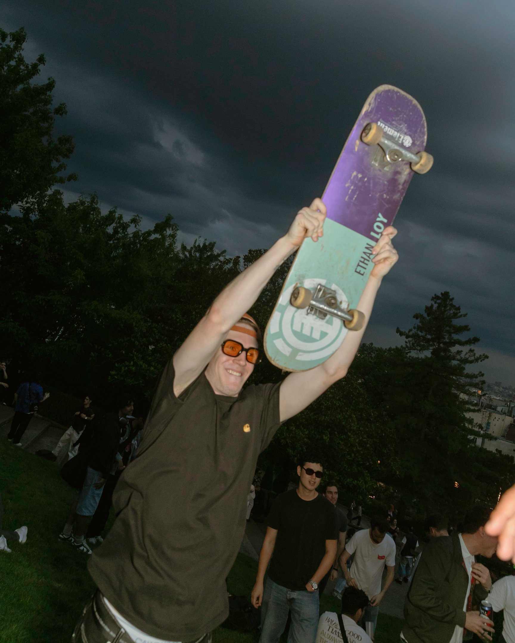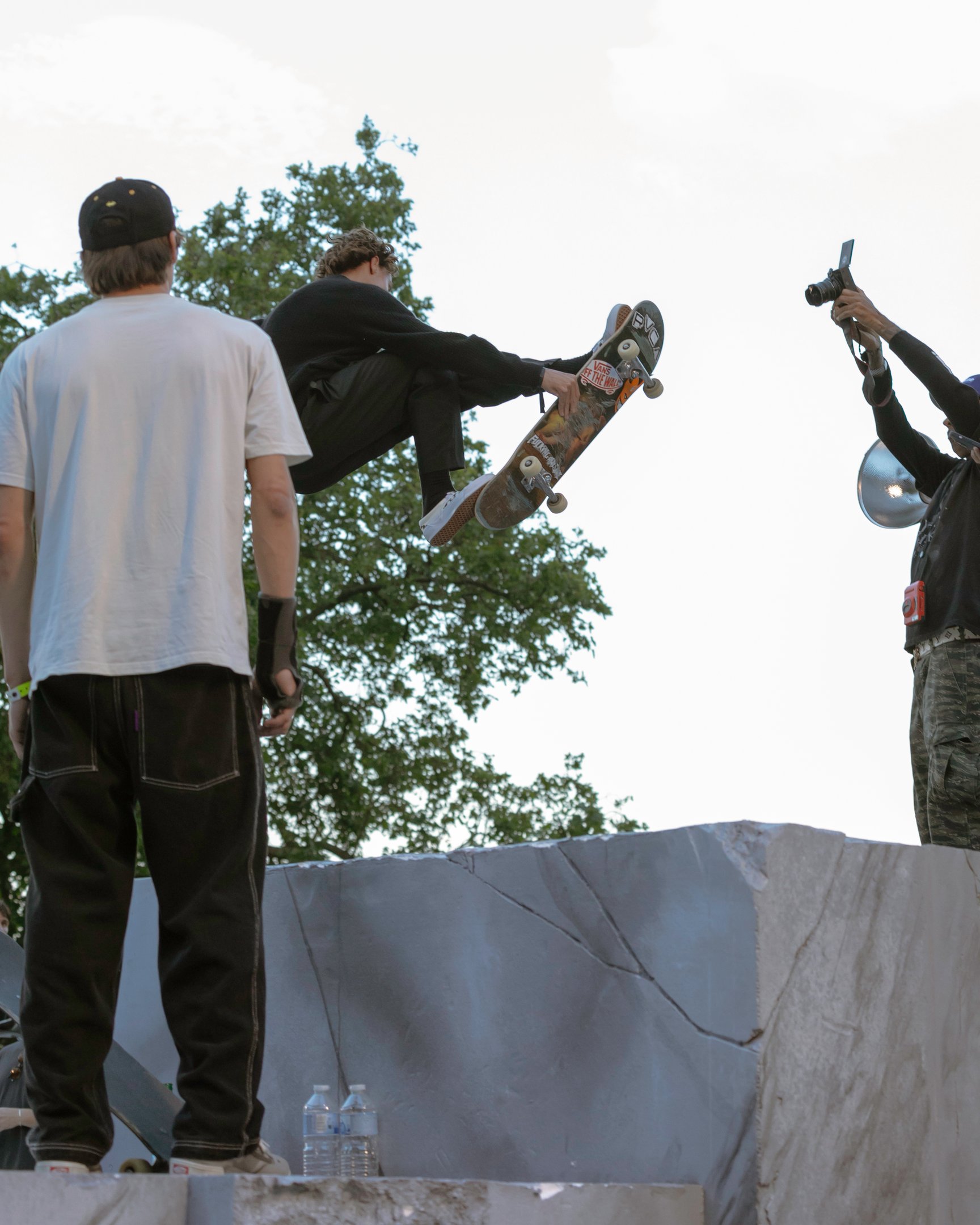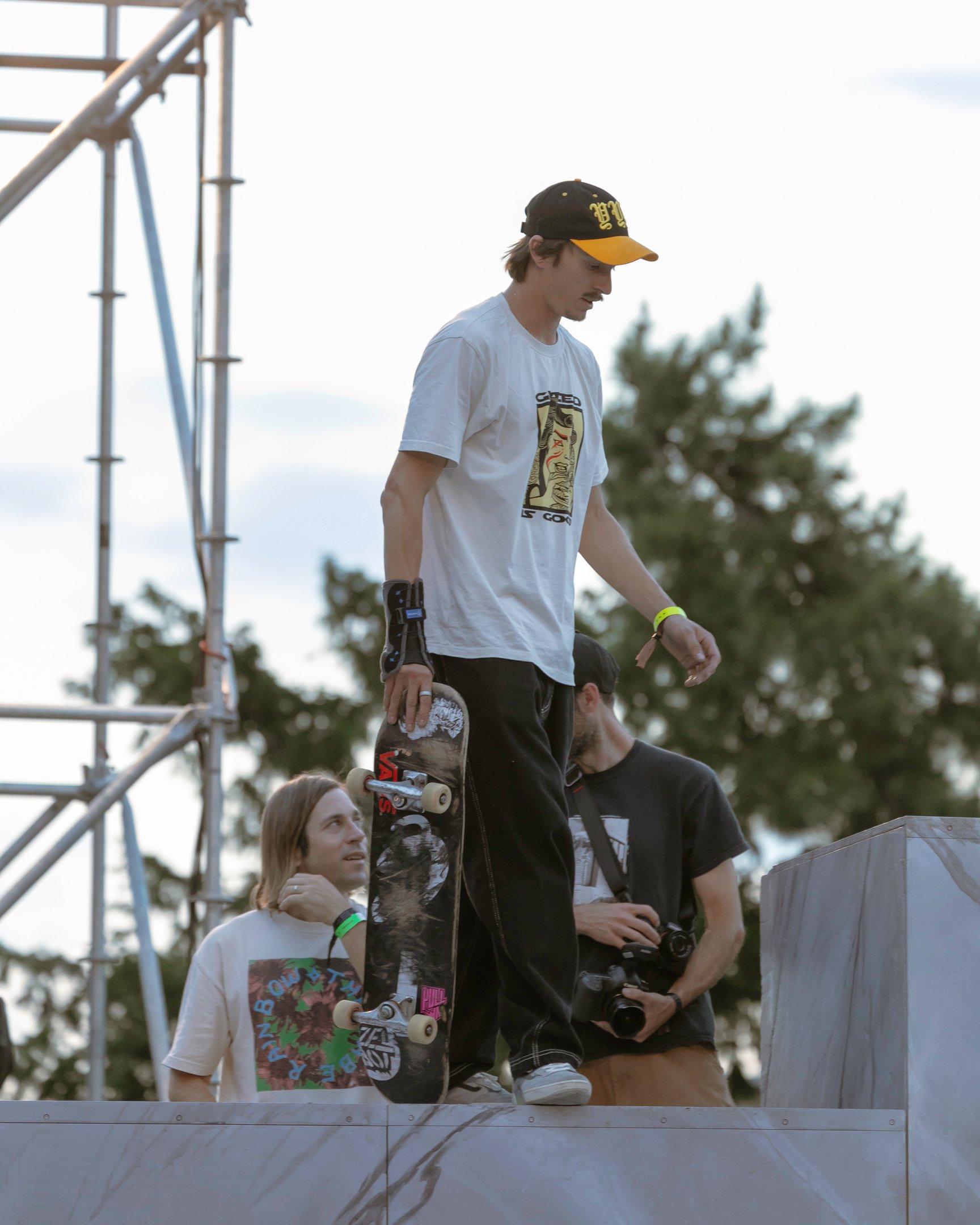 丘の麓には、「カリフォルニア スケートパークス」による大理石調のスケートボールが出現し、カレン・ケープルズ(Curren Caples)を筆頭に、ローワン・ゾリラ(Rowan Zorilla)、エリヤ・バーリー(Elijah Berle)、マルティーノ・カタネオ(Martino Cattaneo)、タニア・クルズ(Tania Cruz)、エフロン・ダンジグ(Efron Danzig)、ディエゴ・トッド(Diego Todd)らレジェンドからフレッシュな若手まで、世界トップクラスのスケーターが集結。日本からも星野大喜や手塚まみといった「ヴァンズ」のジャパンライダーが参戦し、軽快かつ創造性のある滑りで夜通しインスタレーションを盛り上げた。
