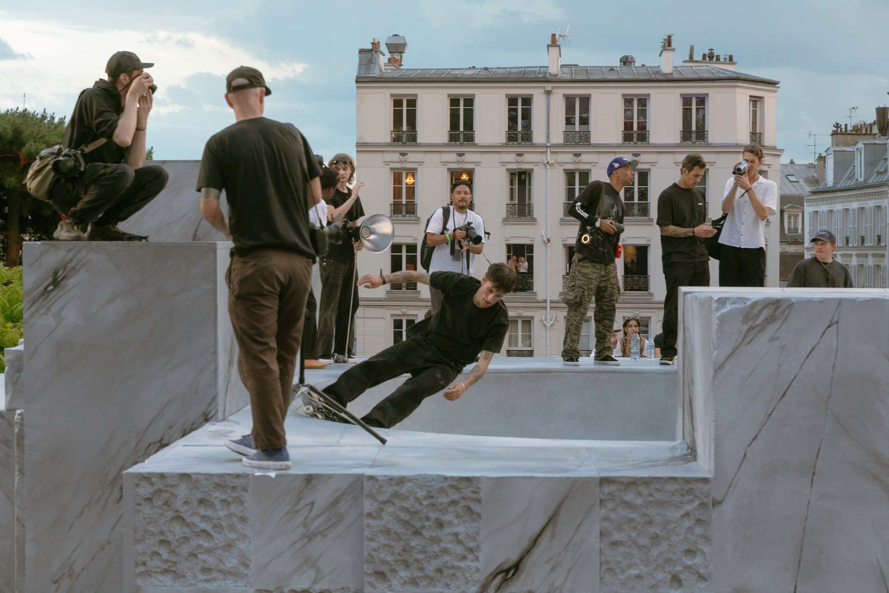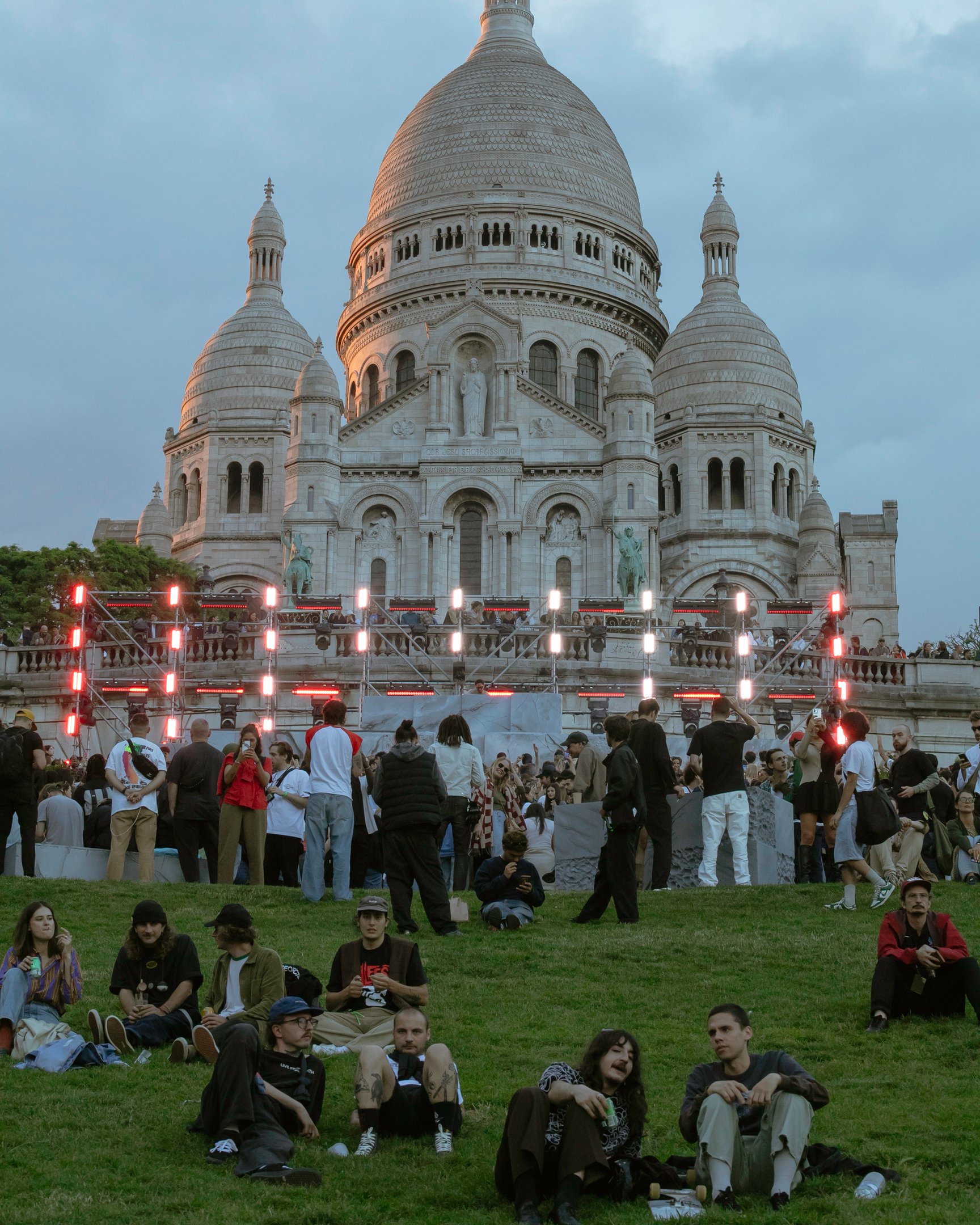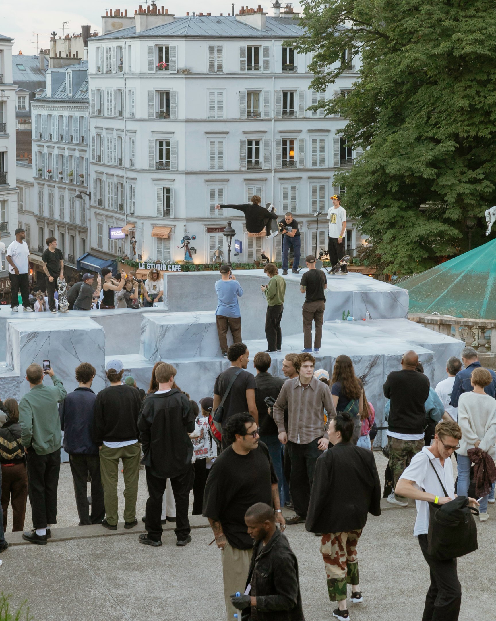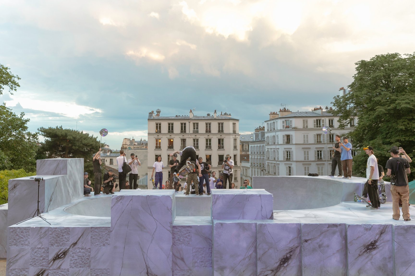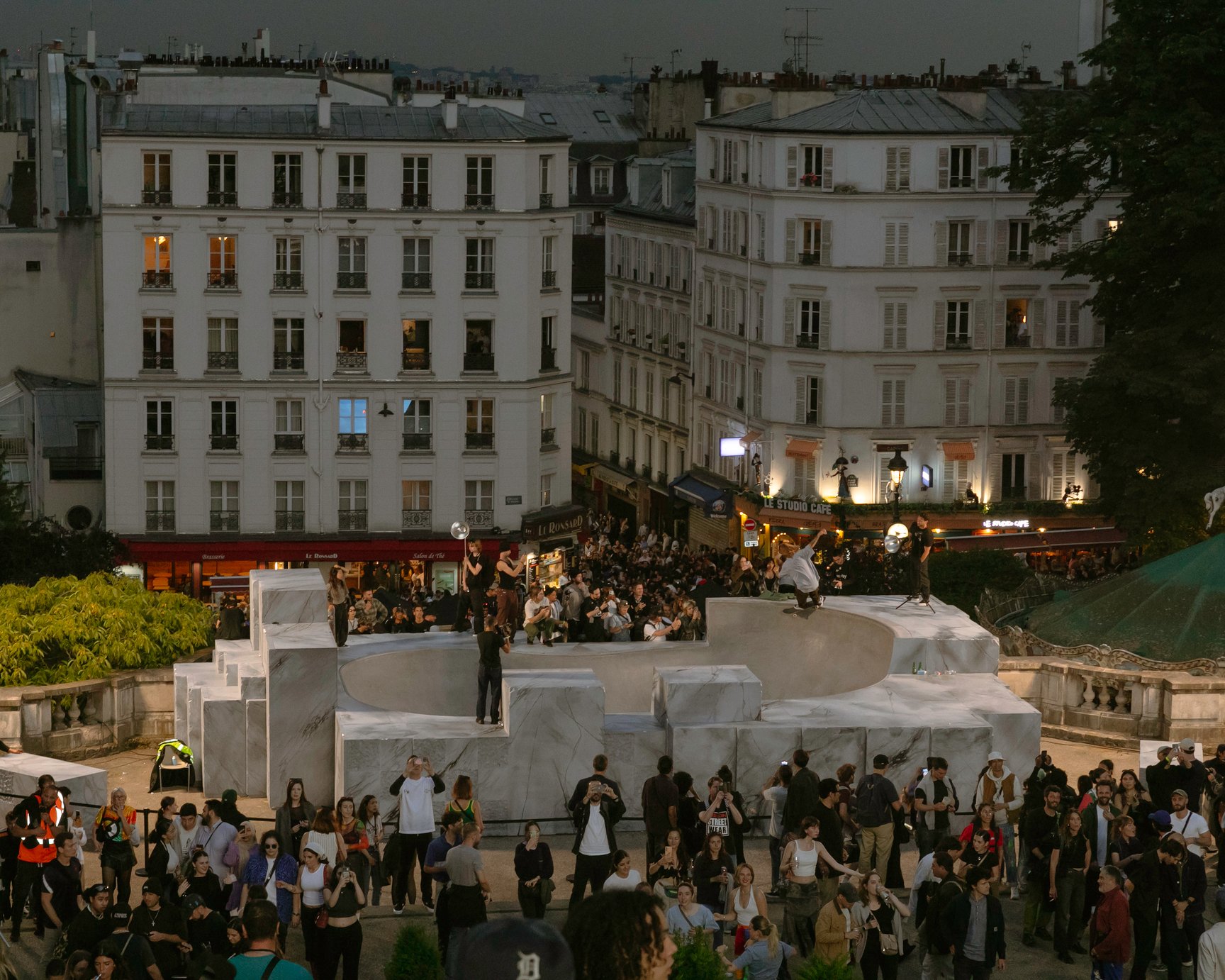 同イベントは、6月21日がフランス国内における“音楽の日(La Fete de la Musique)”かつ国際スケートボード協会が定める“ゴー スケートボーディング デイ(Go Skateboarding Day)”であることを祝したもの。スケートボード×音楽×アートの融合を掲げ、ロサンゼルスを拠点とするクリエイティブ・スタジオ「プライラボ(PlayLab)」と世界有数のスケートパーク設計会社「カリフォルニア スケートパークス(California Skateparks)」の協力のもと、教会堂「サクレ・クール寺院」がある「モンマルトルの丘」を1日限りでジャックした形だ。