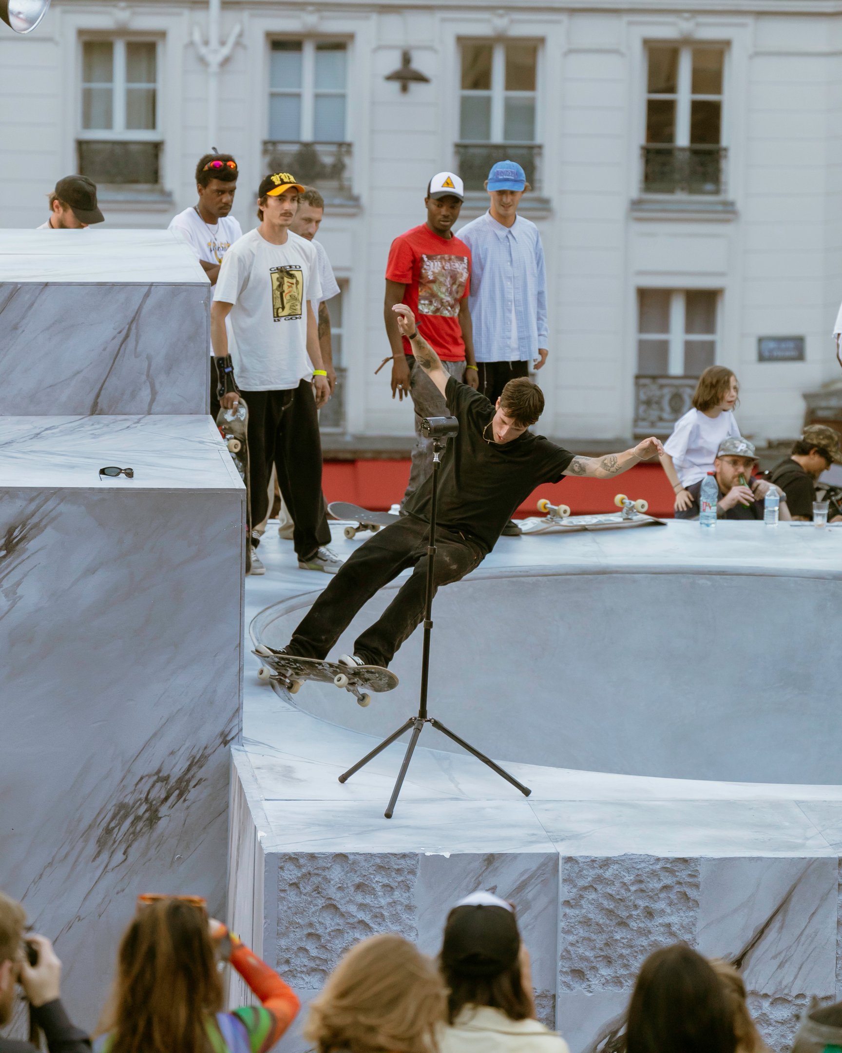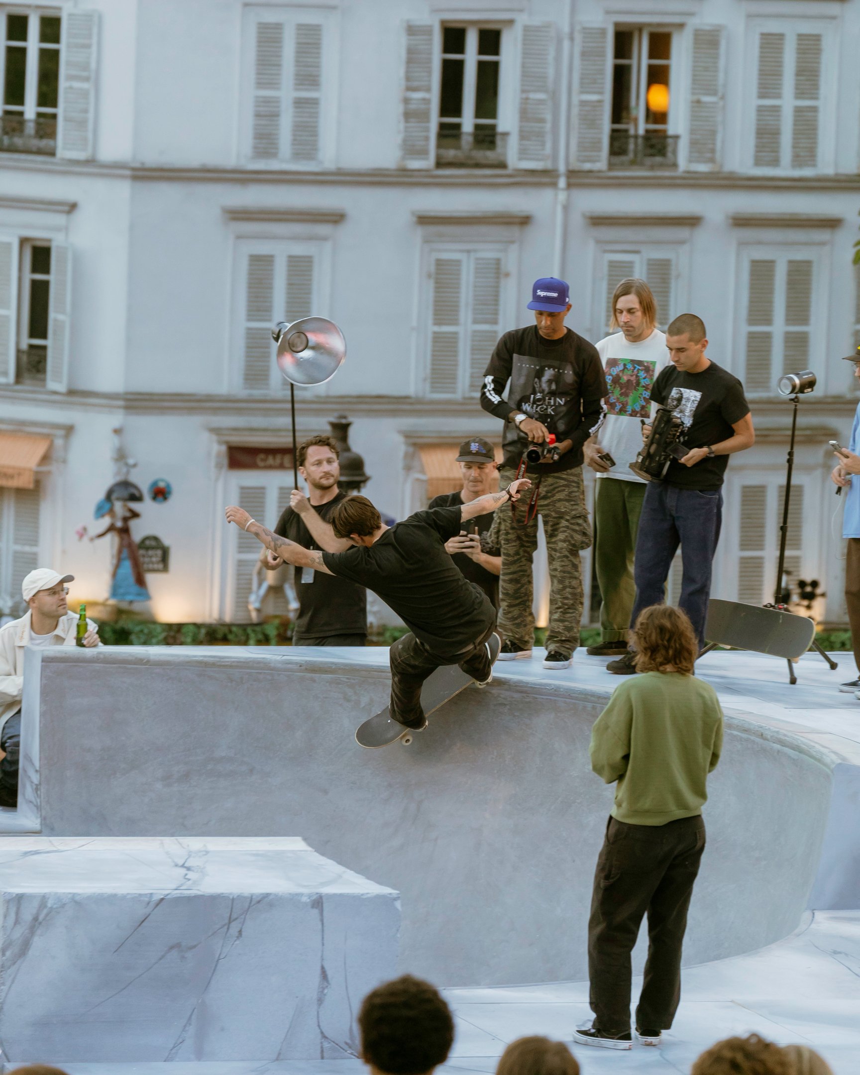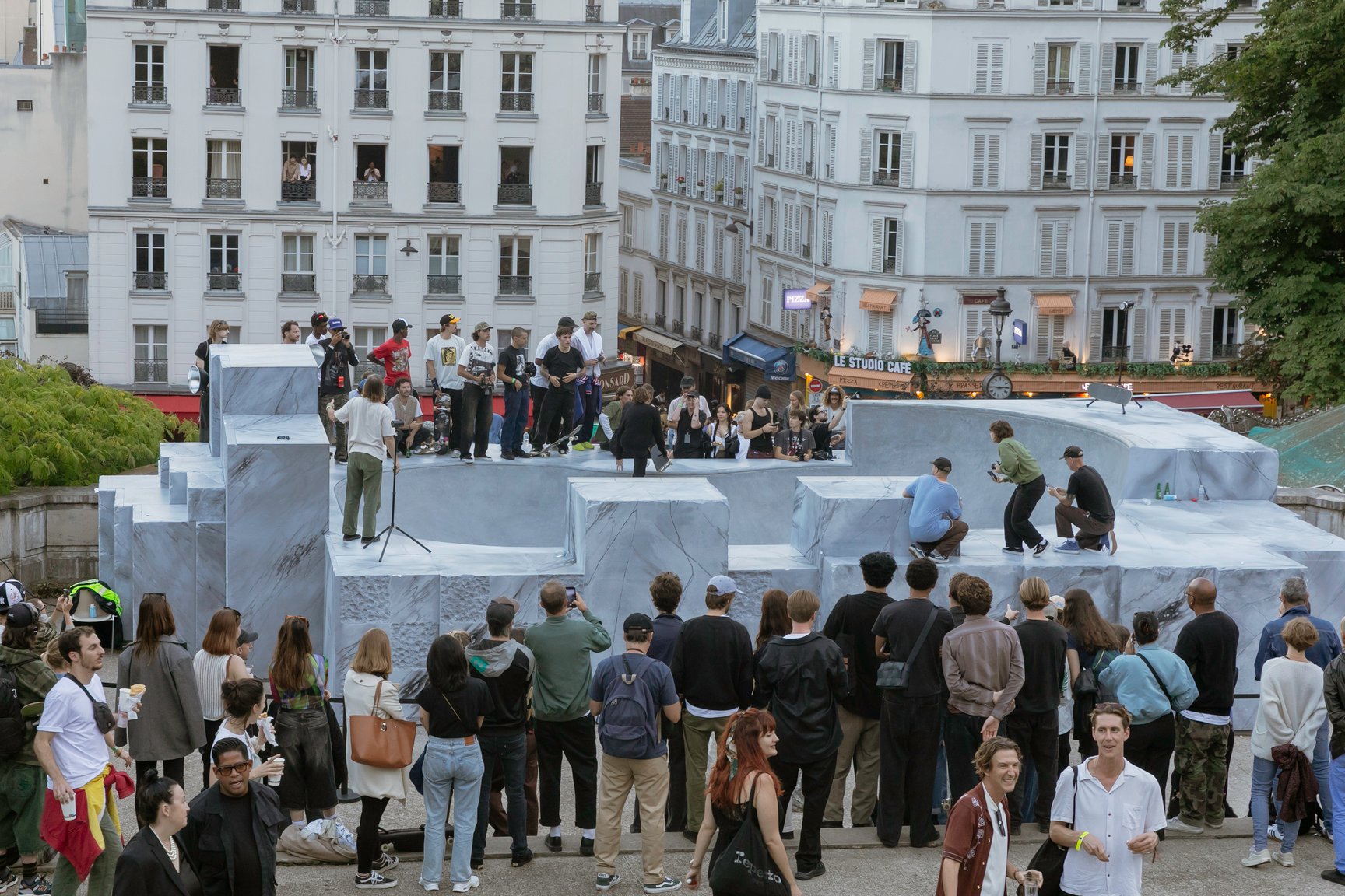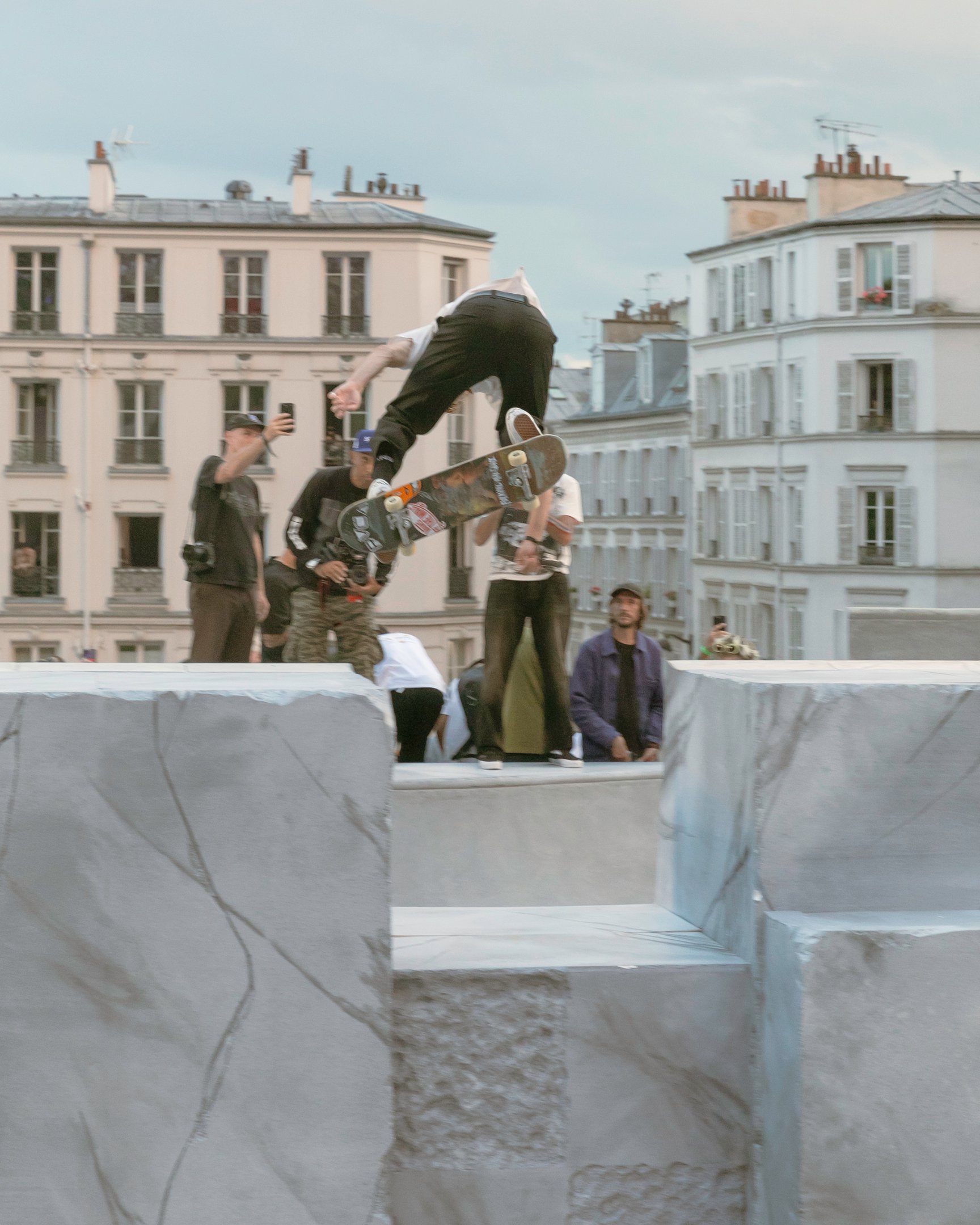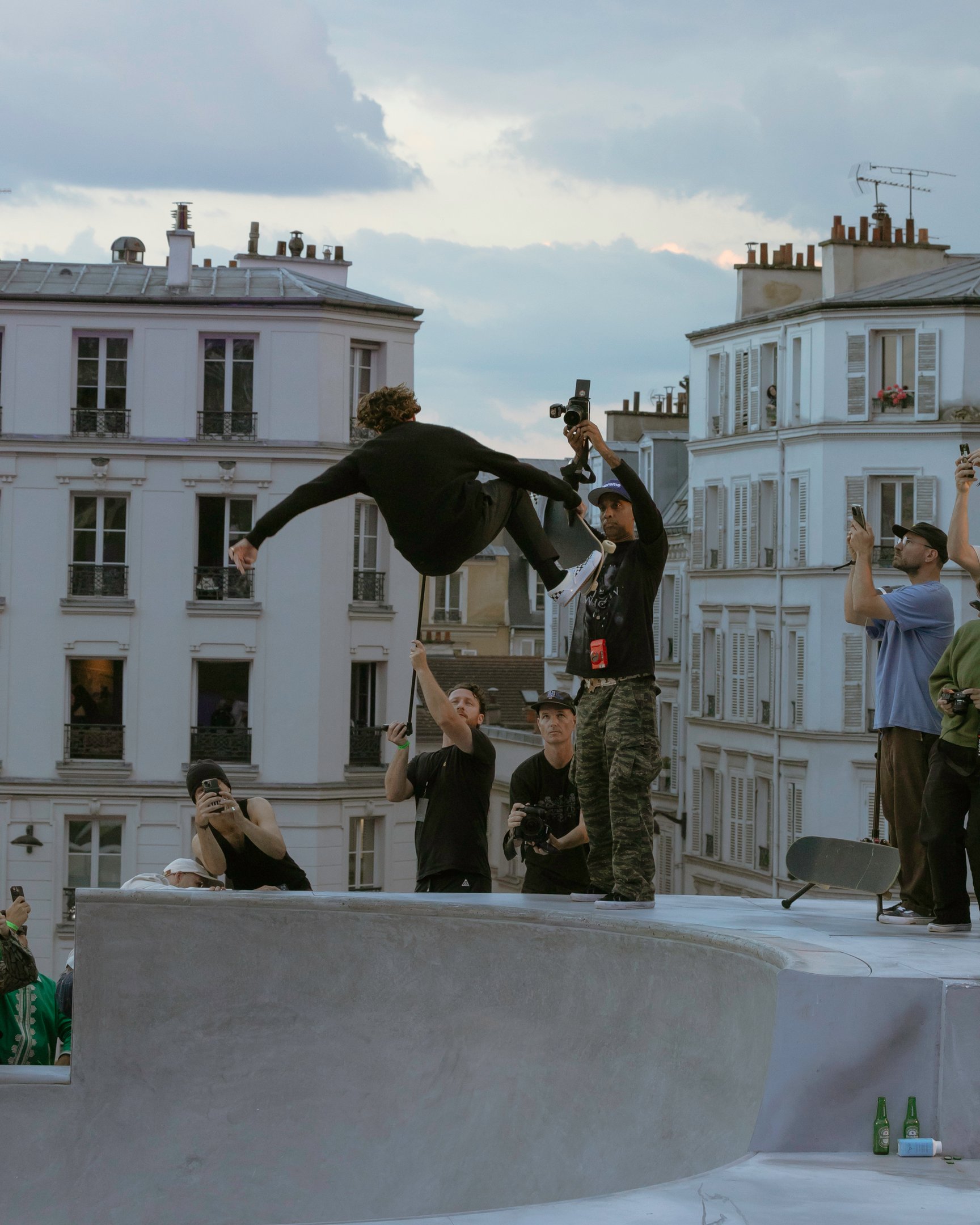 同イベントは、6月21日がフランス国内における“音楽の日(La Fete de la Musique)”かつ国際スケートボード協会が定める“ゴー スケートボーディング デイ(Go Skateboarding Day)”であることを祝したもの。スケートボード×音楽×アートの融合を掲げ、ロサンゼルスを拠点とするクリエイティブ・スタジオ「プライラボ(PlayLab)」と世界有数のスケートパーク設計会社「カリフォルニア スケートパークス(California Skateparks)」の協力のもと、教会堂「サクレ・クール寺院」がある「モンマルトルの丘」を1日限りでジャックした形だ。