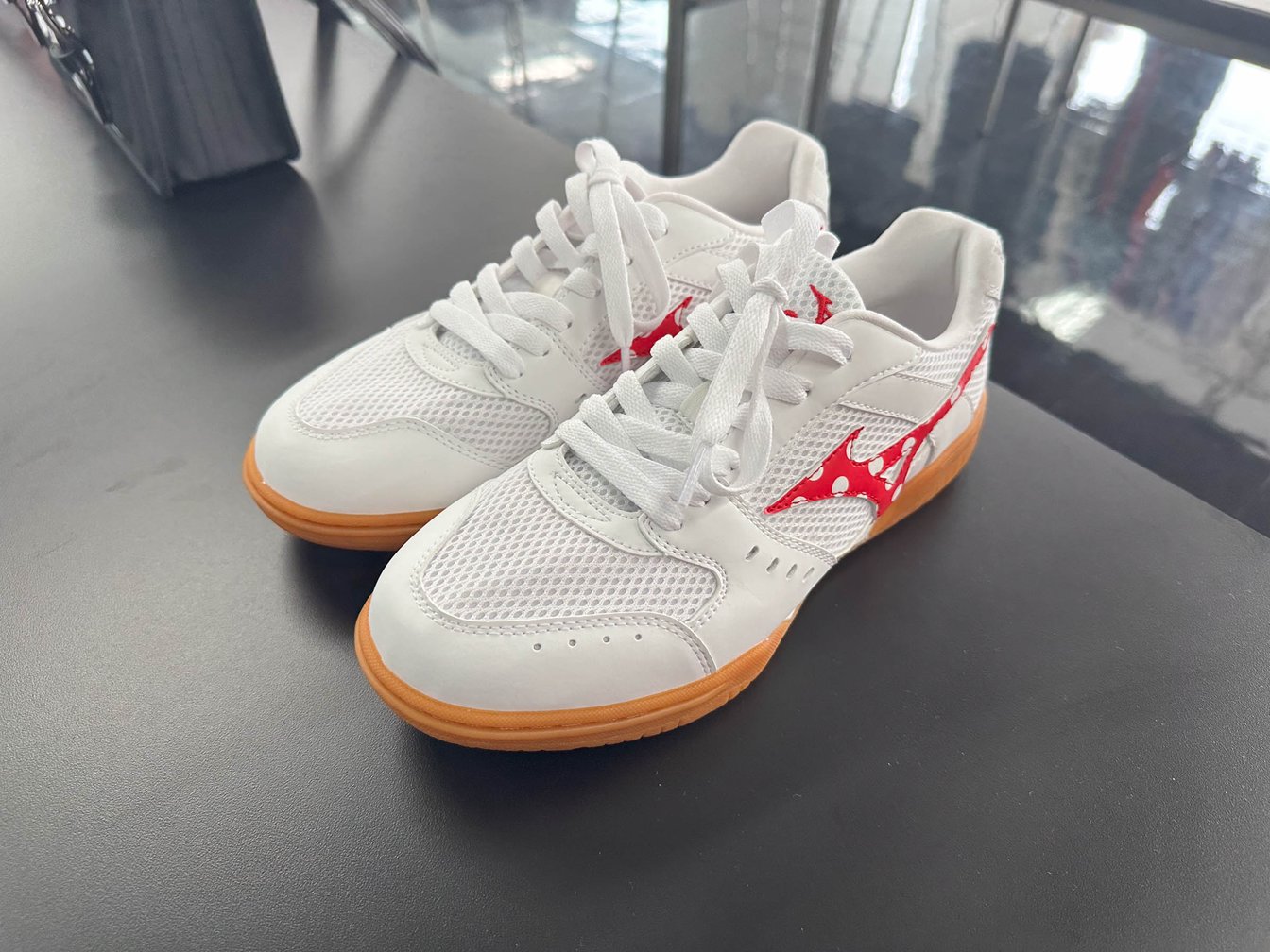ミズノとのコラボでは、クラシカルなスクールシューズにあしらわれたミズノのランバードマークをポルカドット柄にアレンジした。1色展開で、価格は2万2000。