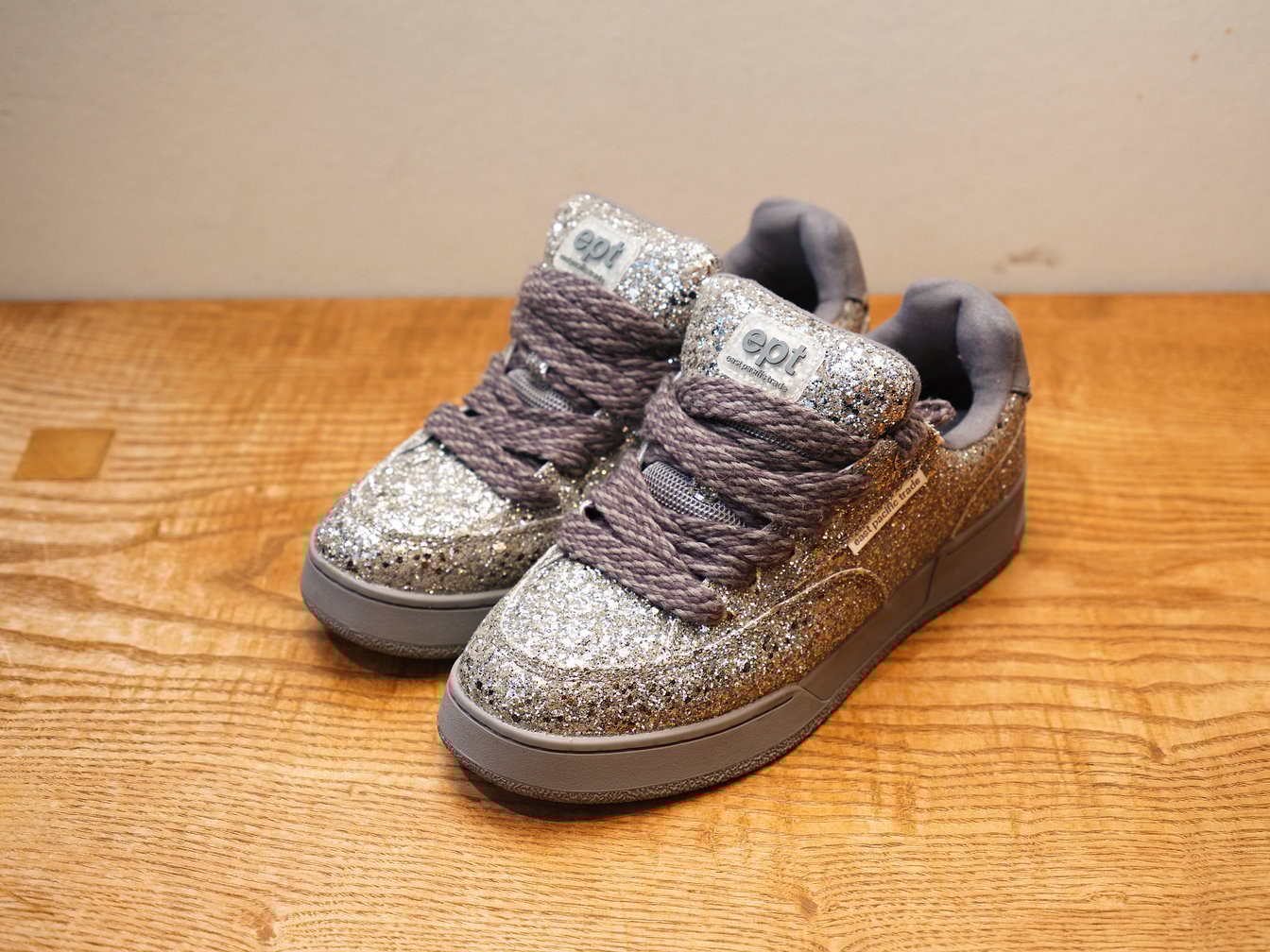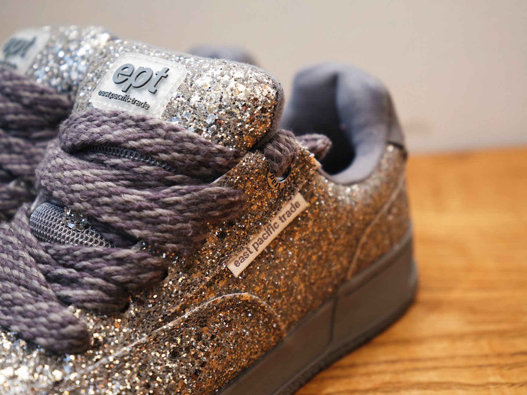 大平:「イーストパシフィックトレード(East Pacific Trade)」という韓国発のスニーカーブランドで、小木“Poggy”基史さんのプロデュースのもと「エムエーエスユー(M A S U)」とコラボレーションした一足です。企画させていただいた文化服装学院の講義で、エムエーエスユーのデザイナーの後藤愼平さんにゲスト講師としてご登壇いただいた時に、後藤さんがご自身で履いてらっしゃったんです。シャツにジャケットにネクタイ、ボトムはデニム、そして足元はこのギラッとしたスケシューというスタイルが格好よくて。そのスタイル真似したい!と思い、ポップアップのレセプションで買いました。