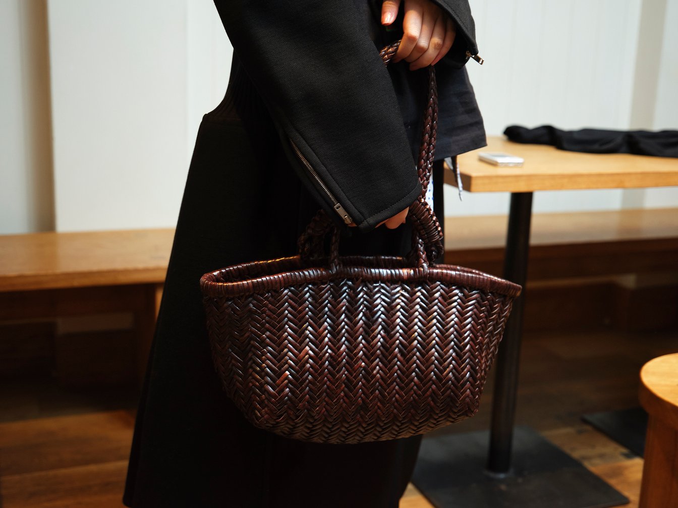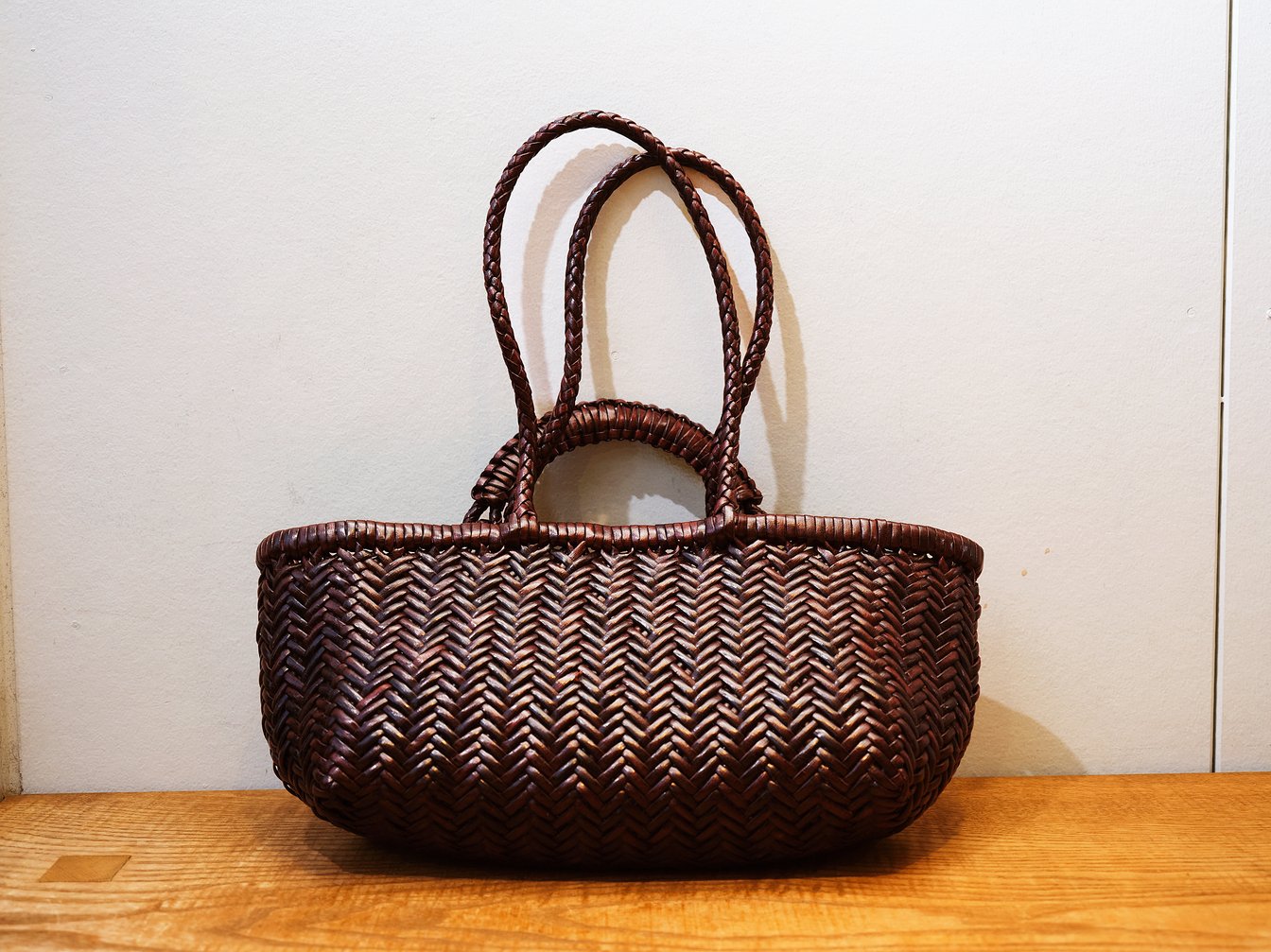 大平:初めてウィーンのお店に行ってそこで購入したバッグです。ショップで掛かっているのを見て花入れにも見えるオブジェ感が可愛くて綺麗だなと思ったのと、インドで編まれたものだと知ってそのクラフトマンシップにも惹かれて購入しました。いつか着る和装にも合うかなと(笑)。