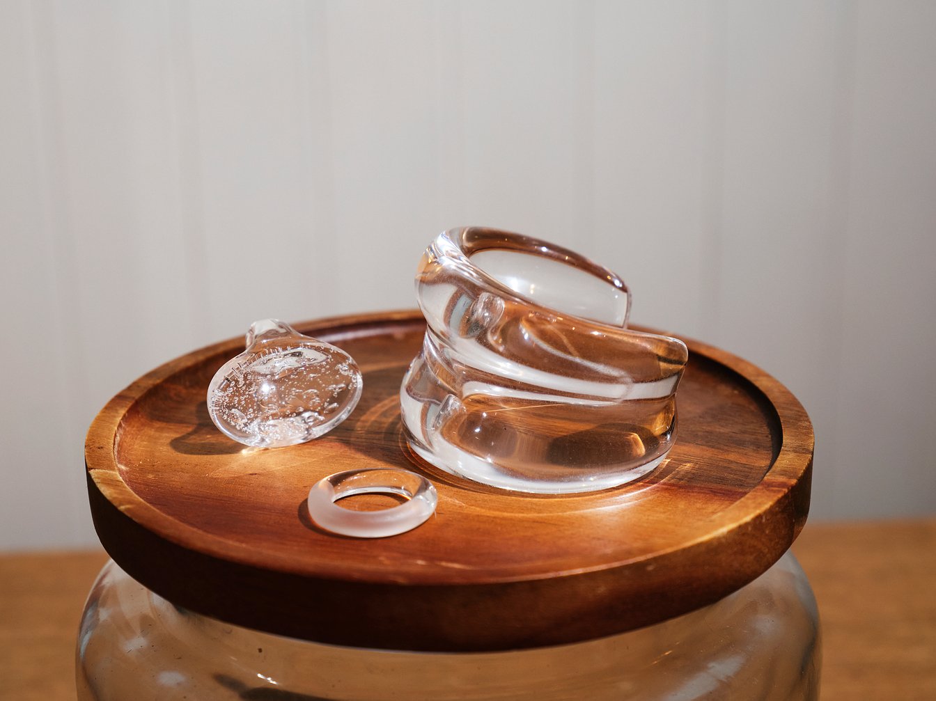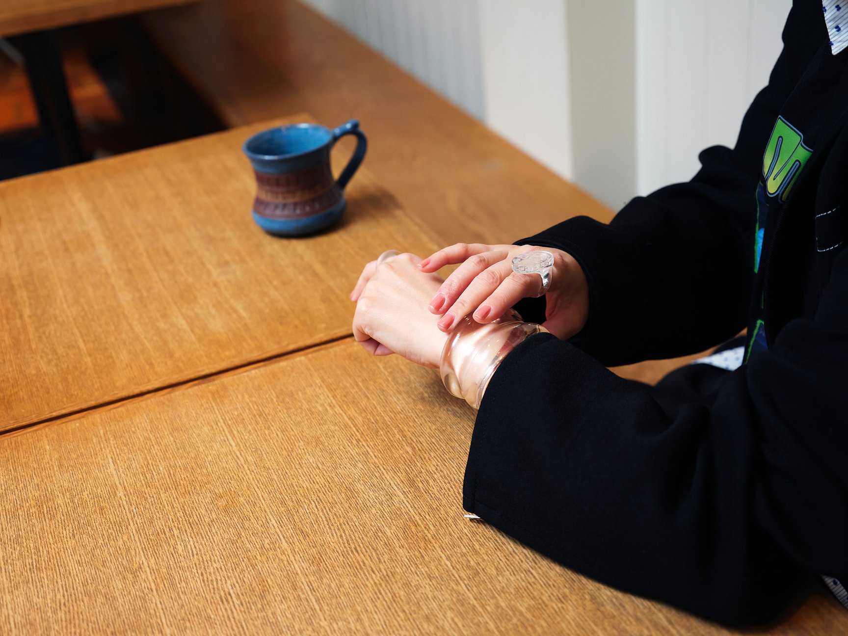 大平:「シリ シリ(SIRI SIRI)」というジュエリーブランドのもので、バングルはアクリル、リングはガラスですね。実は金属アレルギーを昔から持っていて全くつけられなかったわけではないのですが、年々ひどくなっていて以前購入したジュエリーをつける機会が減ってしまったんですよね。