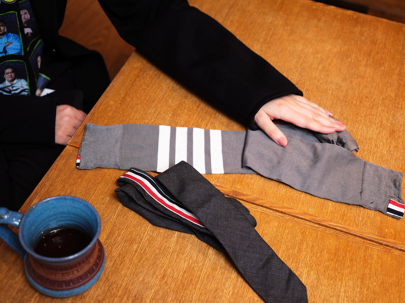 大平:そうですね。こちらは展示会で見て可愛いと思って全色購入しました。今年は膝上のショートパンツや先ほどのトム ブラウンのスカートのように膝丈くらいのスカートを履く機会が増えたのでそれに合わせてますね。シューズも細身でエレガントなものをよく選んでいて、こういう靴下を履くことも多くなったんですよ。