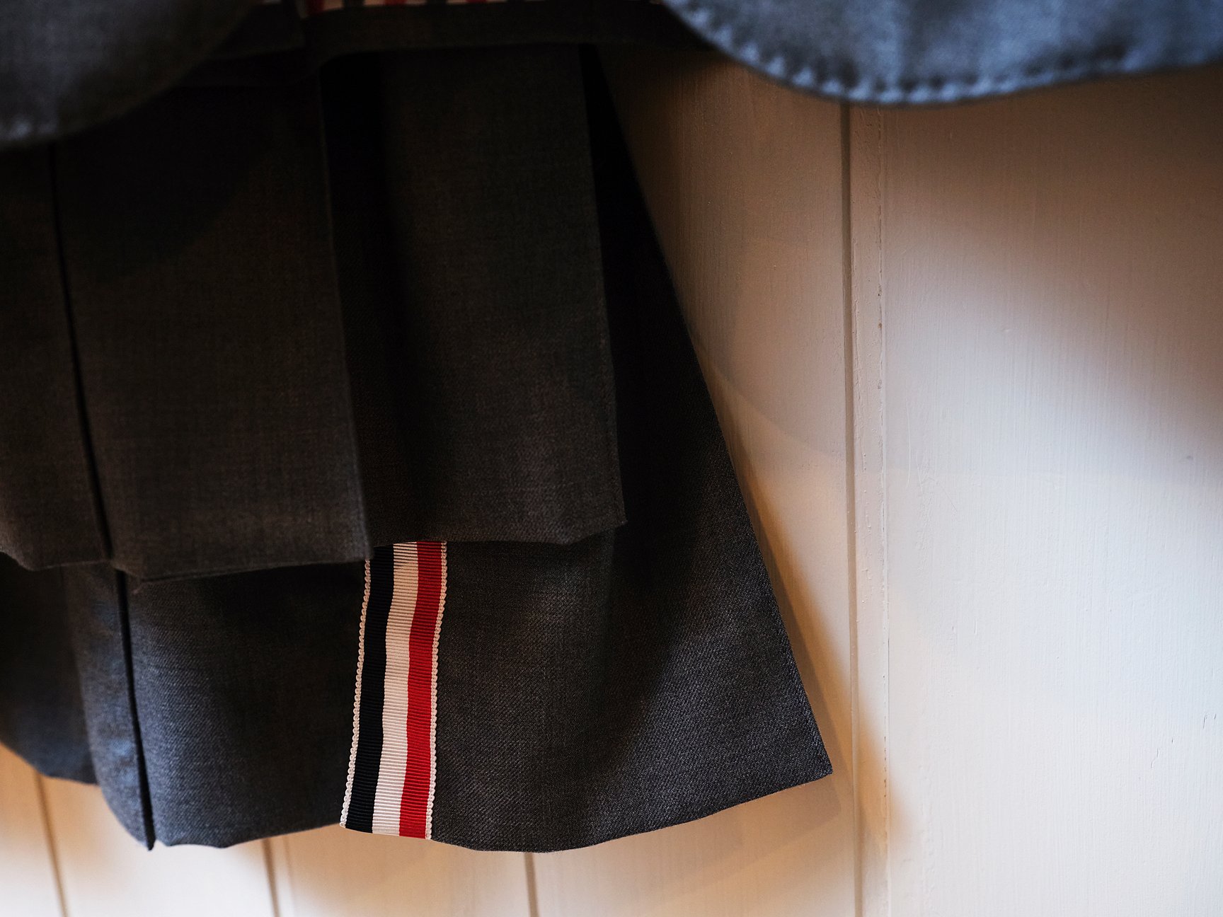 大平:いや、全然持ってなかったんですよ。ただ、ニューヨークの同僚で着ている人が多くて、働く大人の女性のユニフォームとしてかっこいいなと思っていたんです。一式で揃えて着ているというよりはジャケットやスカート、バッグなどでさりげなく取り入れていてトリコロールが見えた時に「あっこれトム ブラウンだったんだ」と気づけるくらいの、いい塩梅に主張できる感じも含めてモダンで今っぽいなと感じていました。