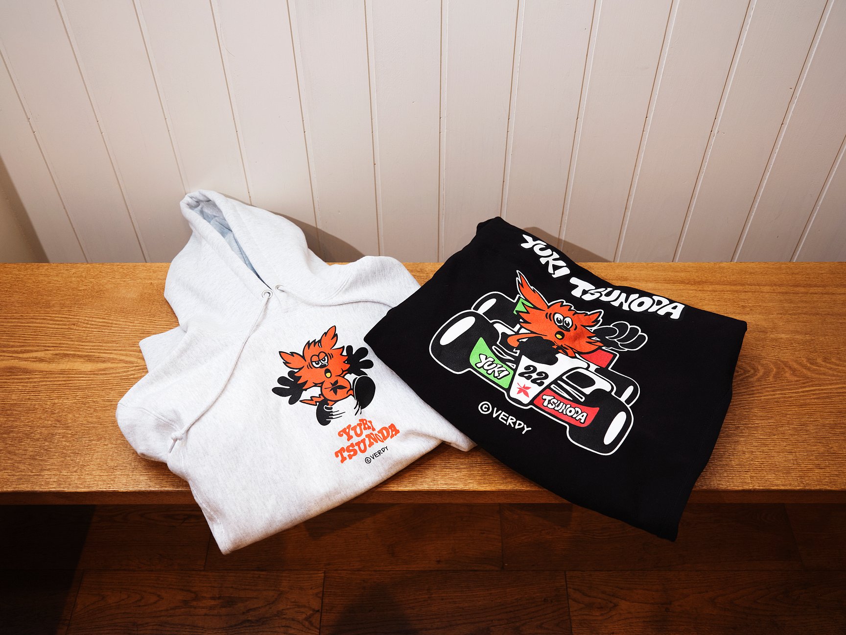 大平:角田さんは世界で20人しかいないF1レーサーの唯一の日本人ということで凄く応援していますし、尊敬もしています。その角田さんが日本を代表するグラフィックデザイナーのVERDYさんとコラボするというのが熱いなと。渋谷PARCOのポップアップ限定で販売されていました。