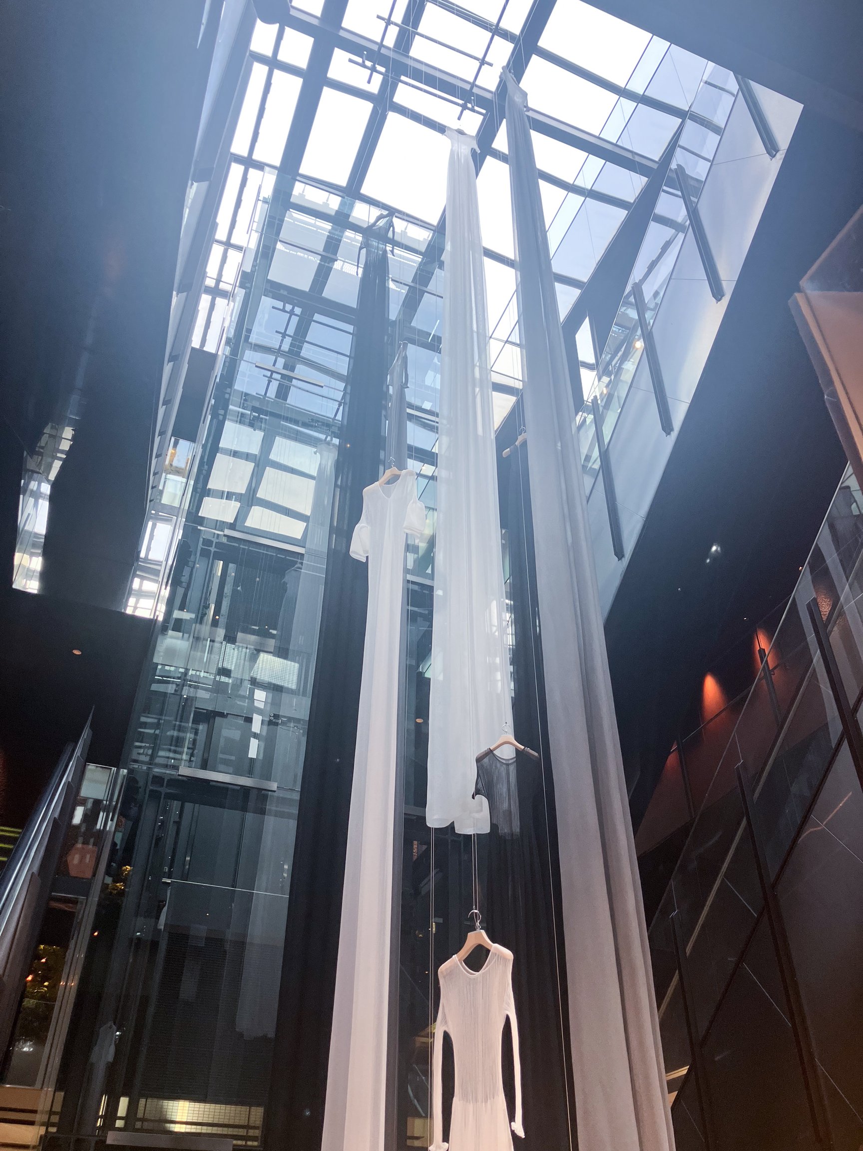 そのほか、期間中には表参道GYREの吹き抜けスペースで、全長10メートルほどの複数のニットドレスを天井から吊るしたインスタレーションも併せて展開している。