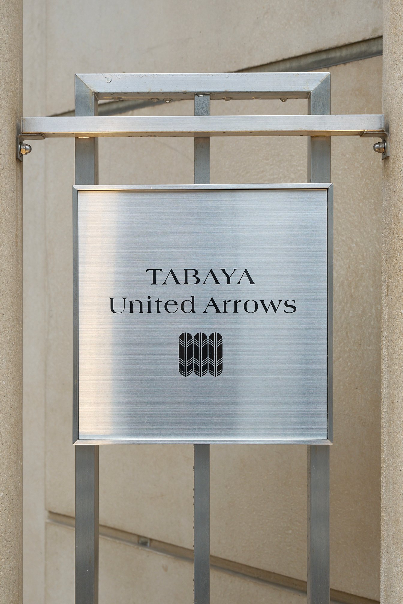 店名の「TABAYA(束矢)」は、「ひとつの目的に向かって直進する矢(ARROW)を束ねた(UNITED)」を意味するユナイテッドアローズの和名に由来。同店を象徴するモチーフとして、創業時から用いてきた「束矢のブルーの紋章」のデザインをアップデートして採用したほか、ブランドカラーとして深い蒼色の「TABAYAブルー」を新たに定めた。