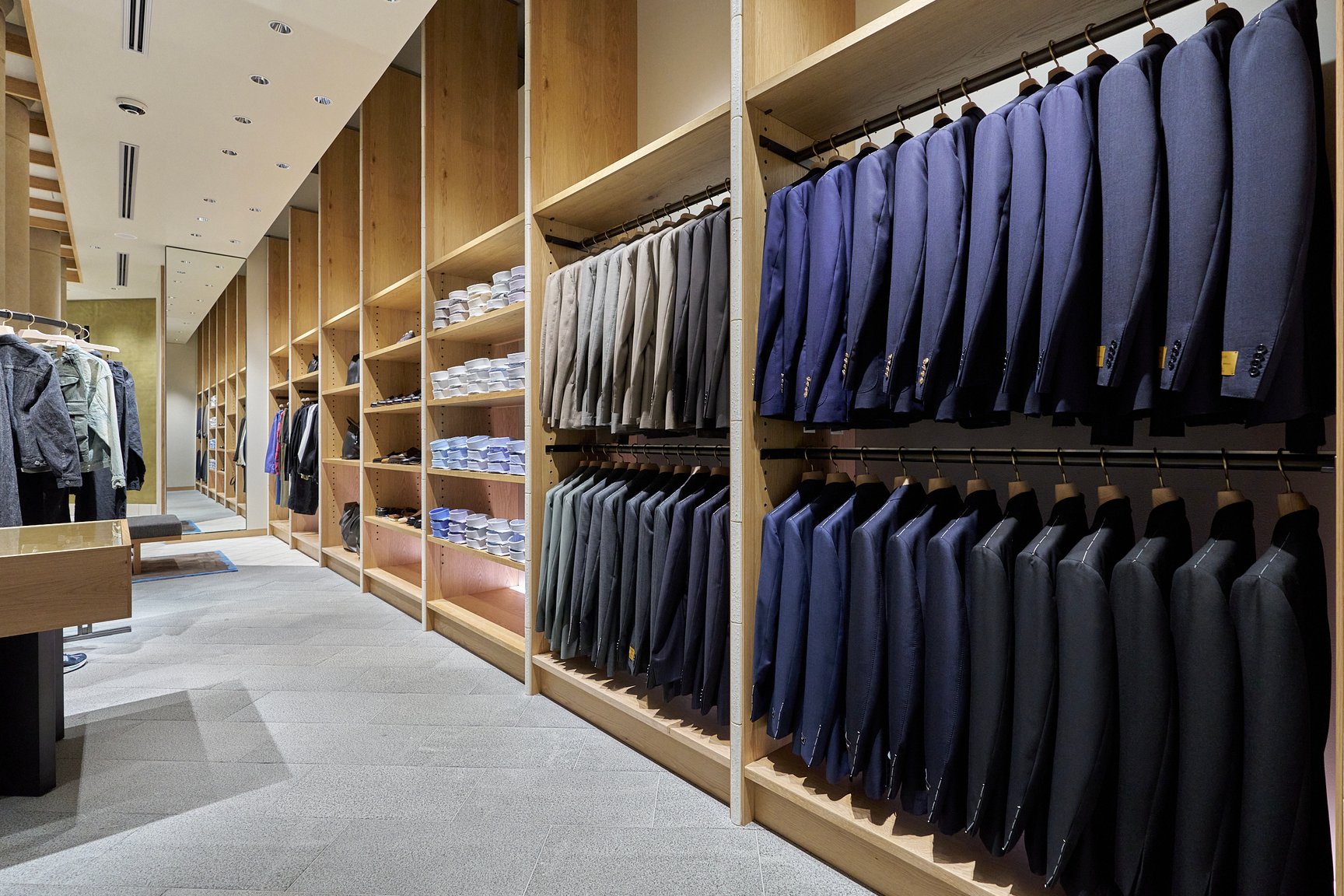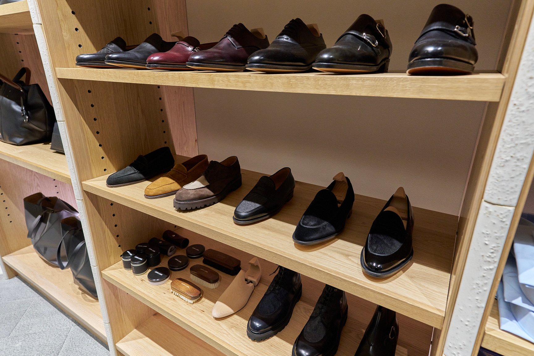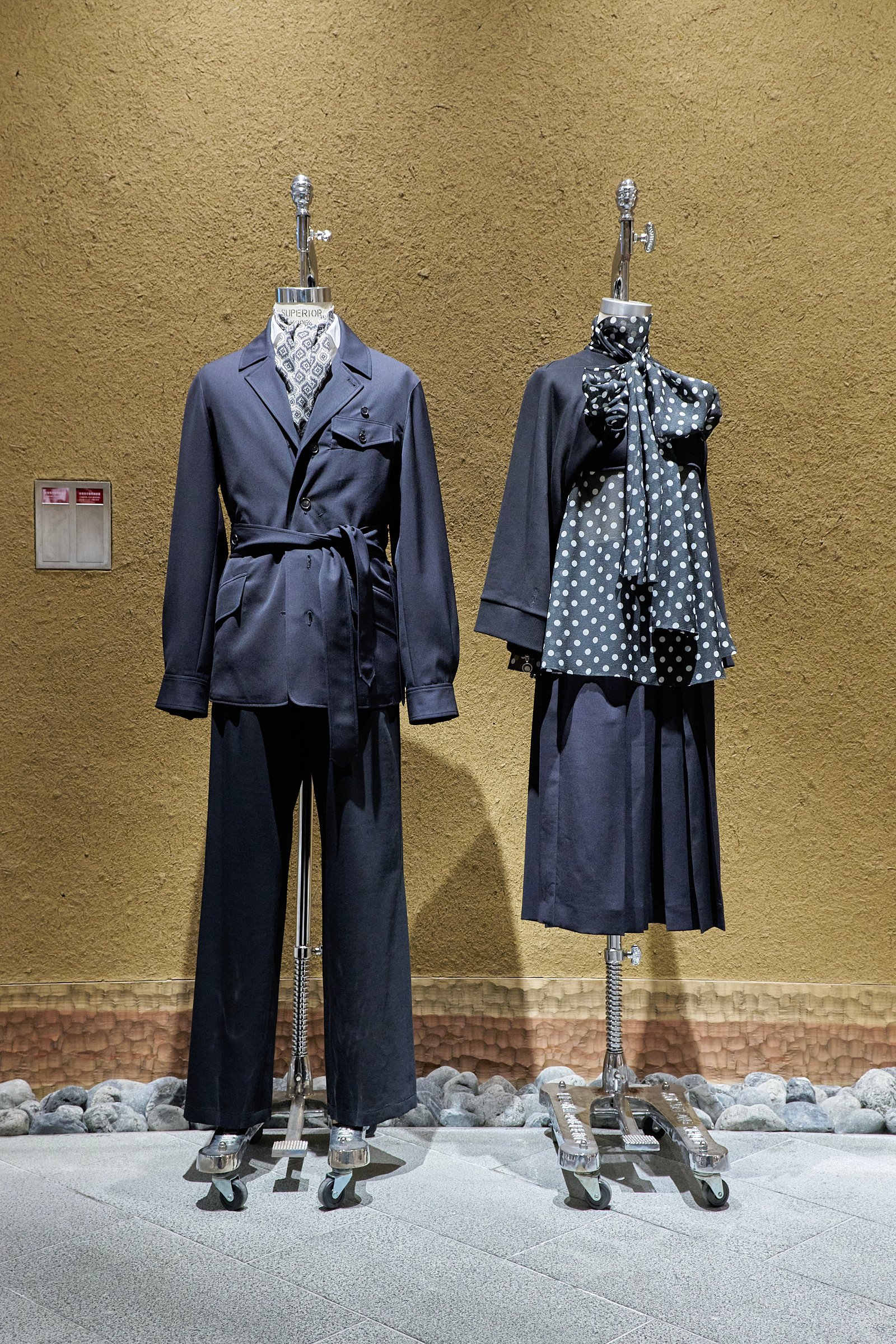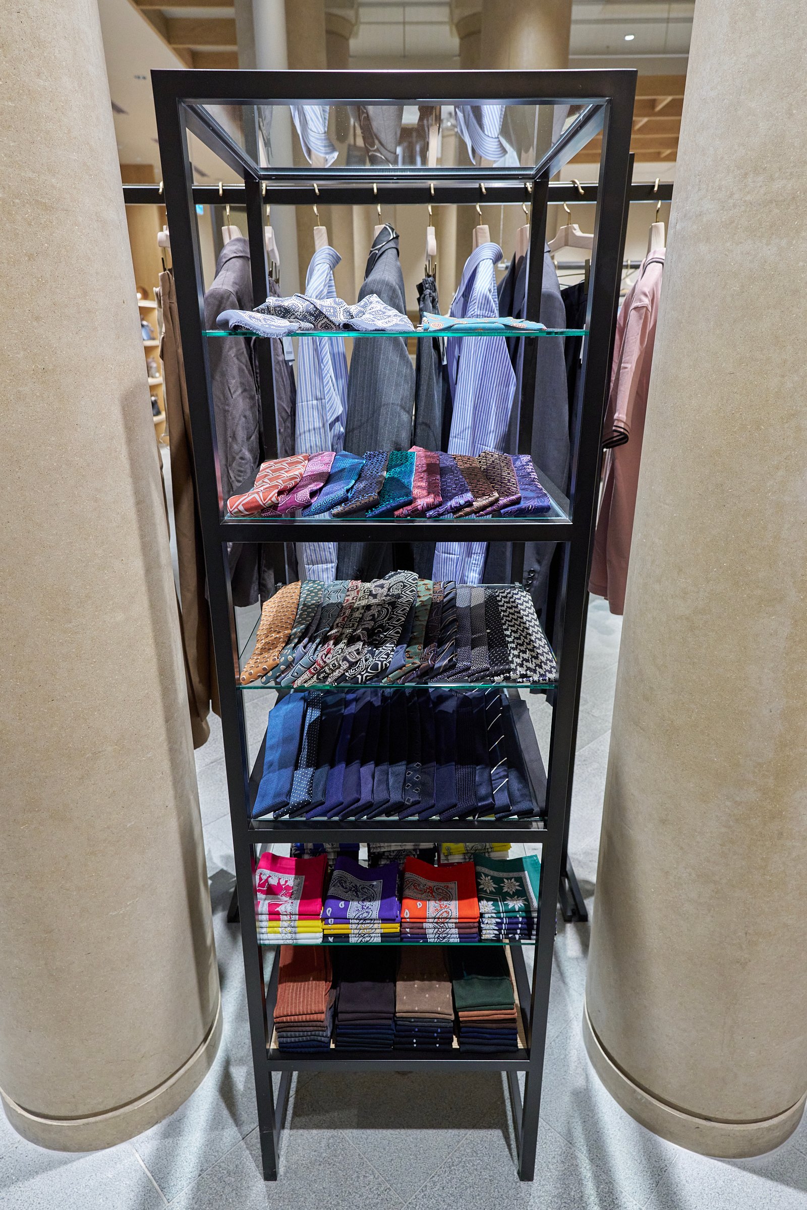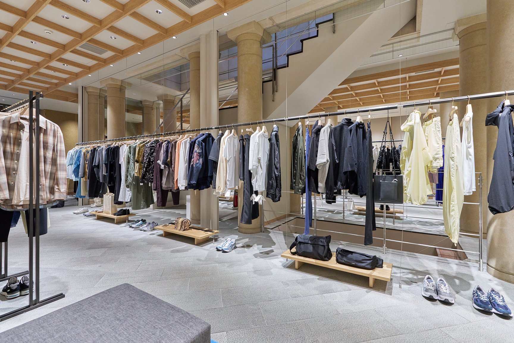 「衣」をテーマに構成された地下1階では、ウィメンズとメンズのウェアやシューズ、ハンドバッグ、ジュエリーなどをラインナップ。「日本が影響を受け、また影響を与えている」素材やディテール、柄、職人技などへの敬意が込められたブランドを中心に、「ロエベ(LOEWE)」「ザ・ロウ(THE ROW)」「メゾン マルジェラ(Maison Margiela)」「ドリス ヴァン ノッテン(DRIES VAN NOTEN)」「セッチュウ(SETCHU)」「オーラリー(AURALEE)」「コモリ(COMOLI)」「コッキ(KHOKI)」「ノワール ケイ ニノミヤ(noir kei ninomiya)」「ジョンロブ(JOHN LOBB)」「マノロ ブラニク(Manolo Blahnik)」「ミオ ハルタカ(MIO HARUTAKA)」など、国内外のブランドを揃えている。