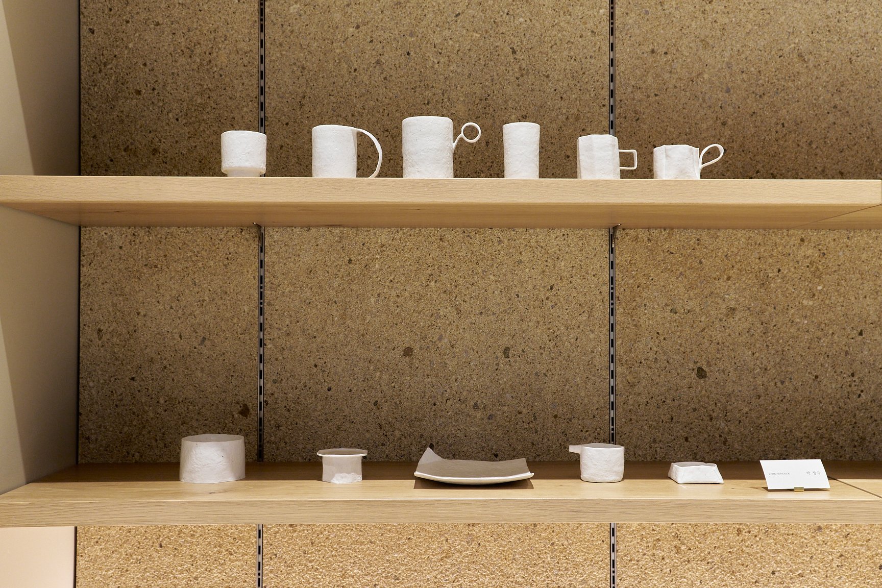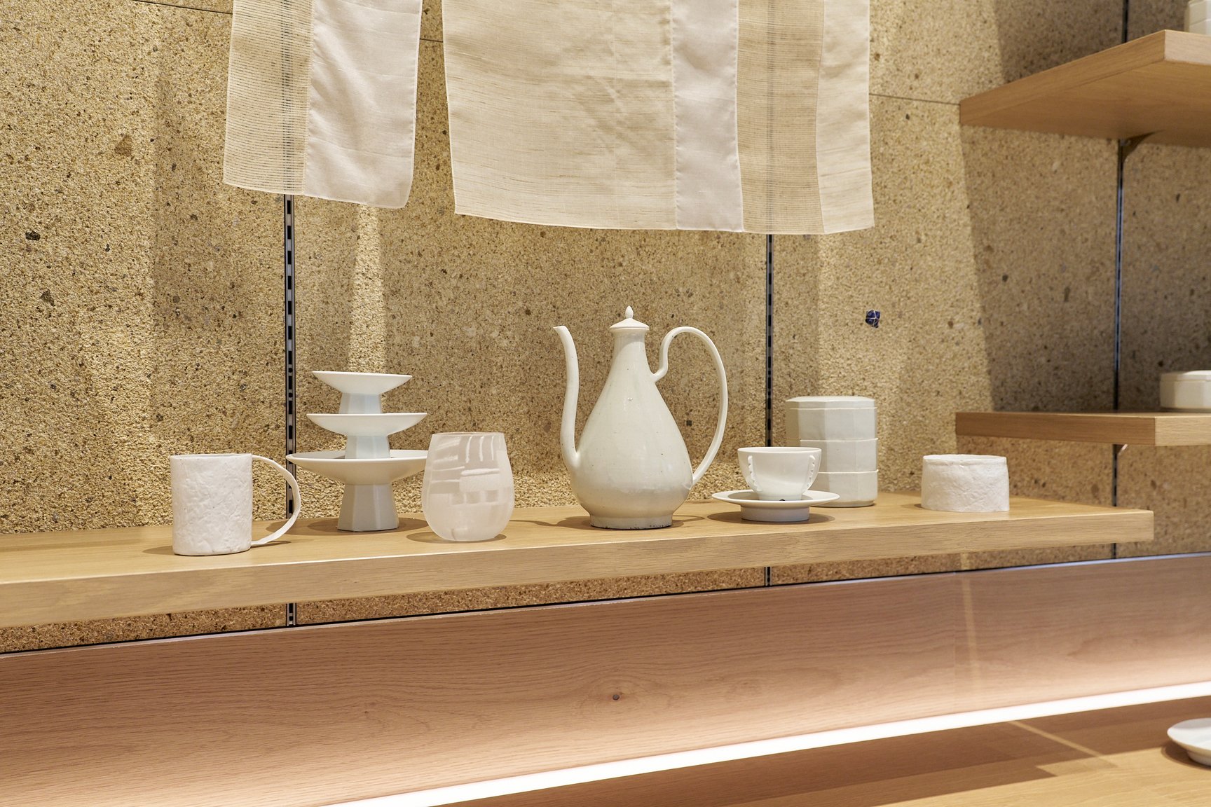 インテリアストリートを挟んだ向かい側の別館1階には、月替わりで国内外の多様なアーティストの作品を展示販売するギャラリースペースを新設。初回は4月25日から5月26日まで、韓国の伝統工芸作家7人による作品展示「UNITED in WHITE」を開催する。「伝統的な和文化の形成に大きな影響を与えた」という視点から、かつて中国大陸から朝鮮、日本へと伝わった「白磁」の作品を中心に、韓国の伝統的パッチワーク「ポジャギ」やガラス作品などを展開する。