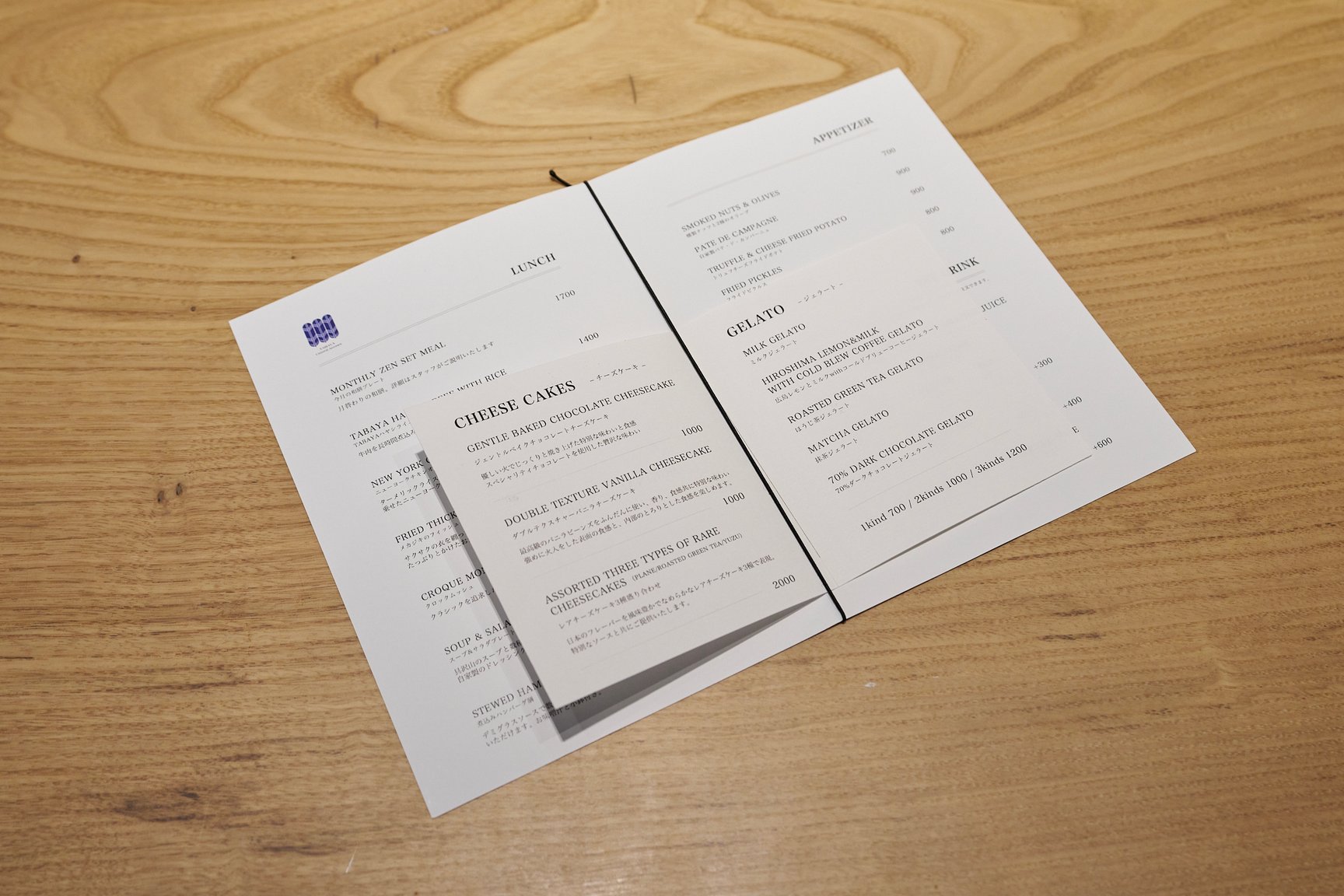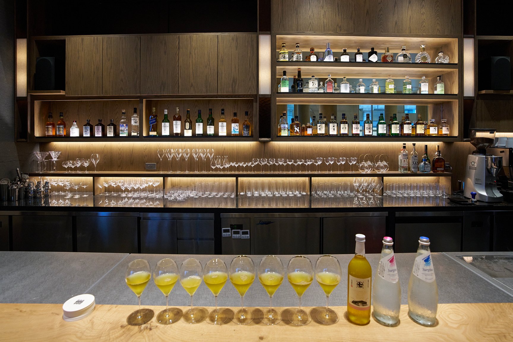 同店のエントランスとなる1階には、カフェ・バーをスペースを拡大して展開。席数を従来の14席から37席まで広げたゆったりとした空間で、恵比寿のパティスリー「レス(LESS)」のパティシエによる柚子や抹茶など日本の素材を活かしたスイーツをはじめ、お茶やスペシャリティコーヒー、和の要素や日本の旬の食材を用いたカクテル、プレートやハヤシライス、バーガーといったランチ・ディナーメニュー、アルコールとともに楽しめる軽食など、季節に応じたメニューを提供する。