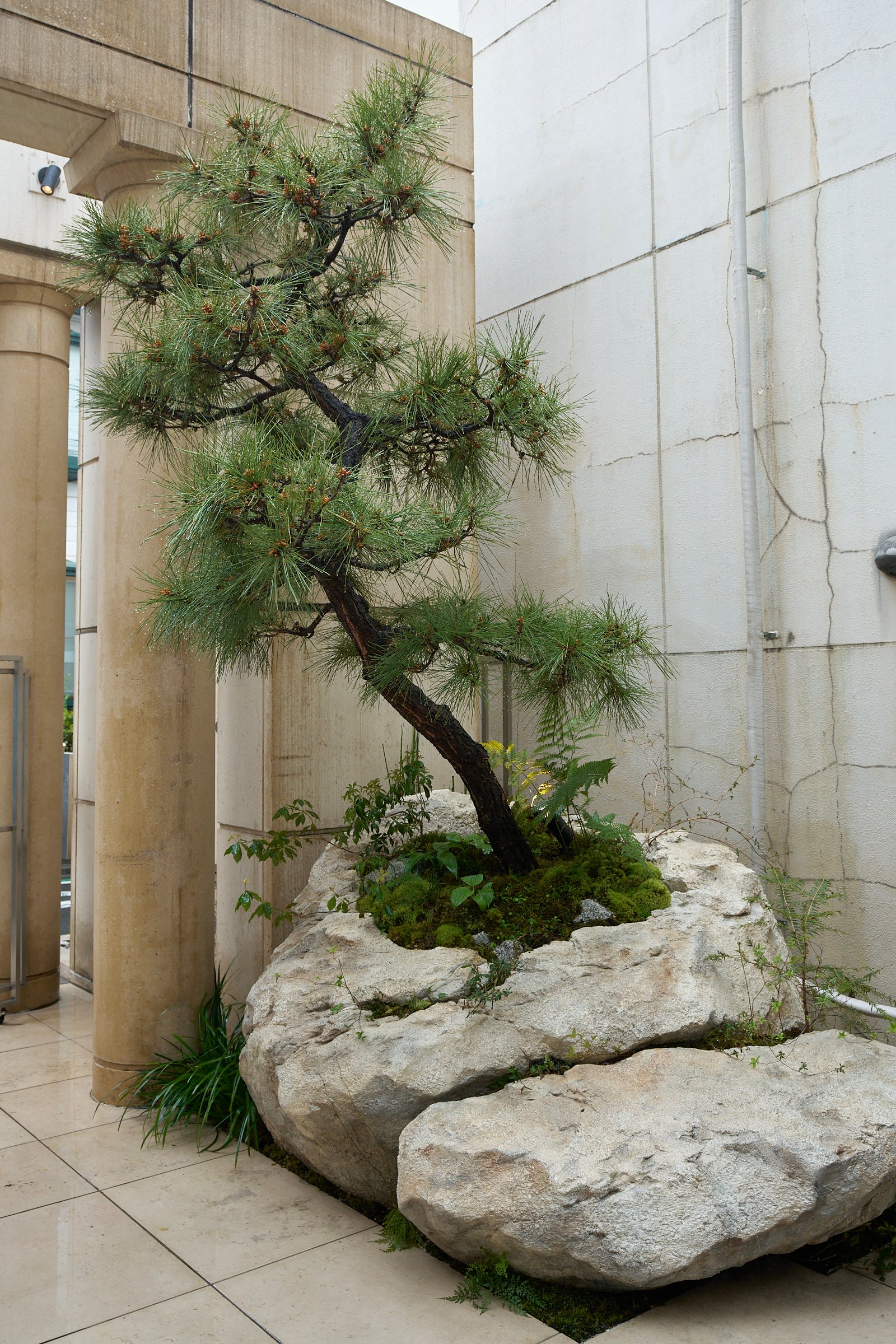店内の什器や内装の木材には、北海道産の楢材や山形産の栗材を使用。さらに、屋外にはシンボルツリーの「潮見の松」や白谷雲水峡をイメージした植え込みを配するなど、随所に「和との親和性と融合性」を表現した。