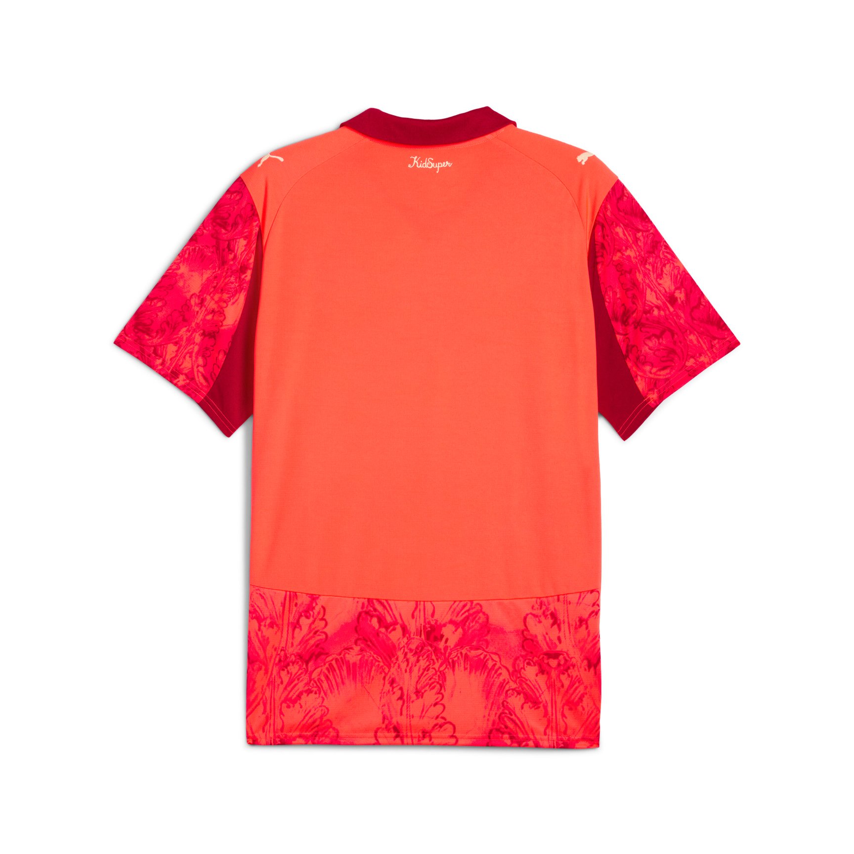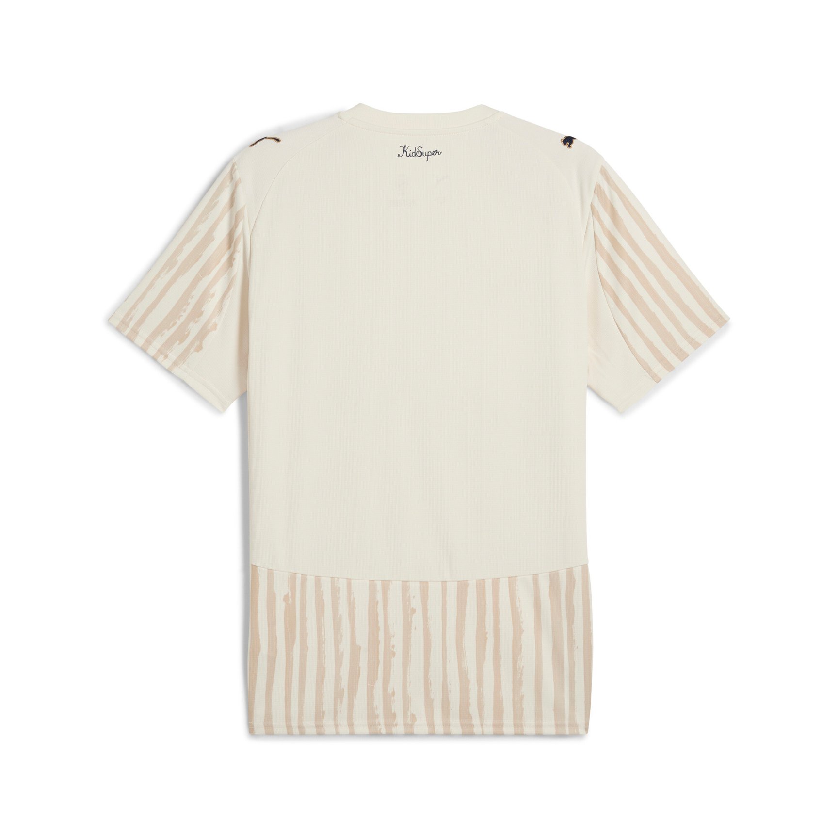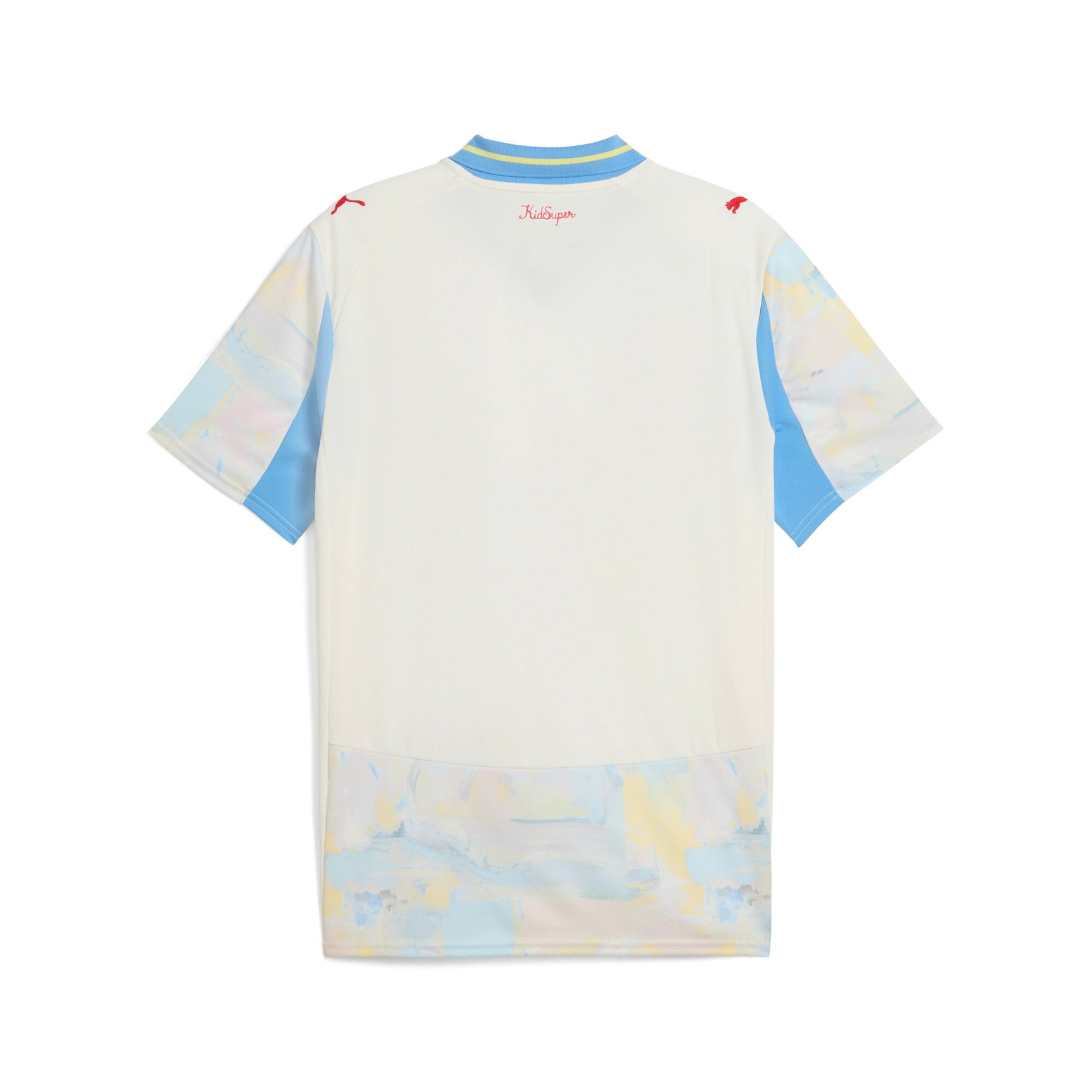 同コレクションでは、手描きのグラフィックや水彩タッチで仕上げるキッドスーパーならではの遊び心のあるデザインを落とし込み、プーマが契約している7つのクラブチームのユニフォームと、3型のスパイクを揃えている。