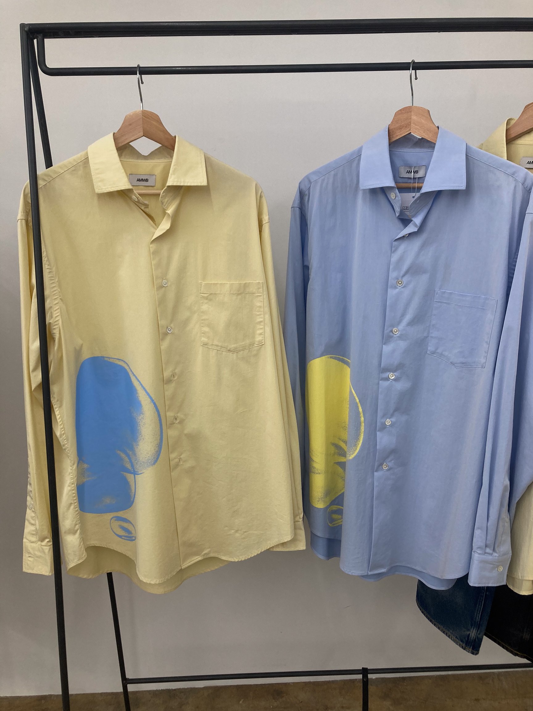 AMWBは、「コンセプチュアルな日常着」をテーマに、ファッション性とプロダクトとしての品質を追求。父親が着ていた「コム デ ギャルソン(COMME des GARÇONS)」のシャツが原体験だと語り、高品質な生地や縫製をあくまで手段として捉え、創造性を失わないデザインに感銘を受けたことから、クリエイティビティとクオリティの両立を重視するようになったという。ブランド名は、「A Modernized Whole Body」の頭文字から命名。「着ることで自分が少し新しくなるような服を作りたい」という想いをこめた。ヴィンテージやアーカイヴを参照しながら、異質な素材やパターン、縫製の仕様などを意図的に組み合わせることで、どこか歪で新鮮なリアルクローズを提案していく。