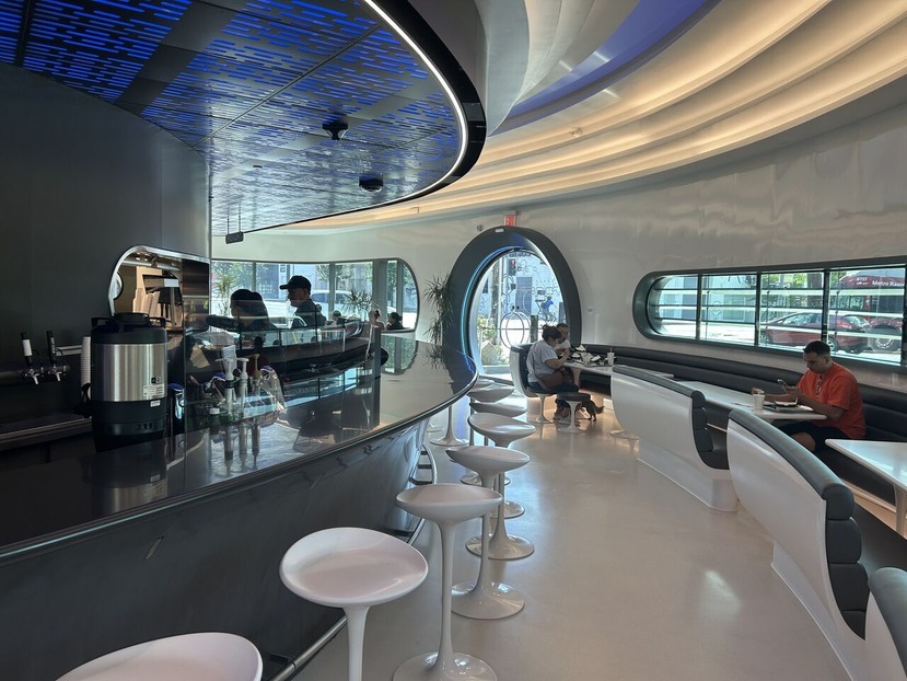 筆者が到着したのは平日の午前10時半ごろで、客入りはちらほら。近未来的な内装でワクワクする。オープン当初は数時間待ちの混雑だったが、現在は落ち着いている。また現実的なオペレーションへの調整が進んでいるようだ。