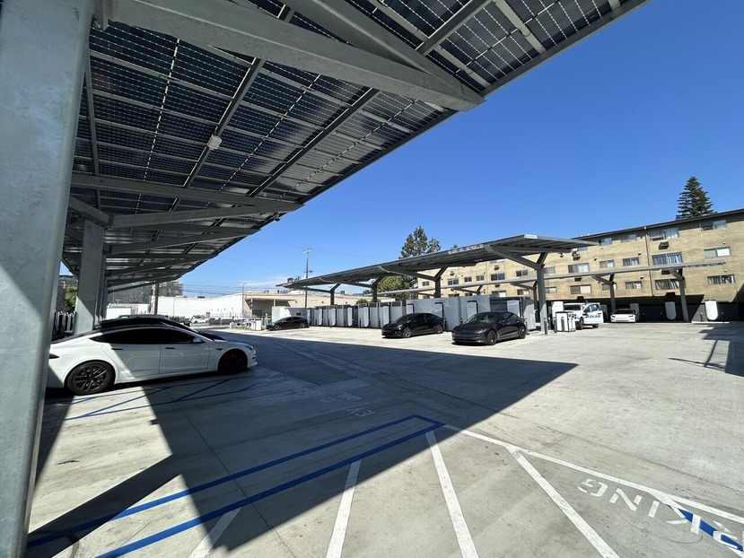 急速充電V4を80台導入した世界最大の充電ステーションは壮観だが、周囲の風景から違和感も残る。