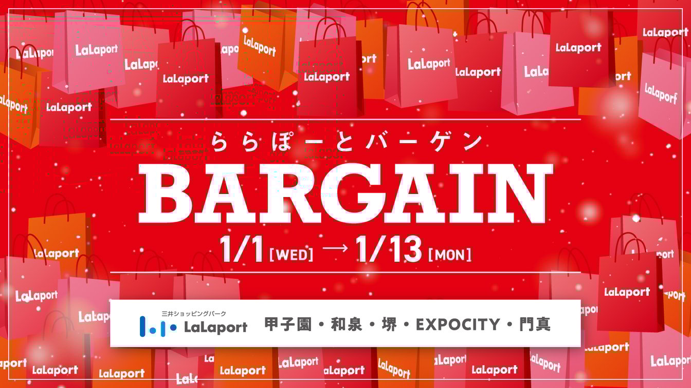 ららぽーとは、元日から13日間にわたり最大90%オフの「ららぽーとバーゲン」を開催。約1500店舗が参加します。