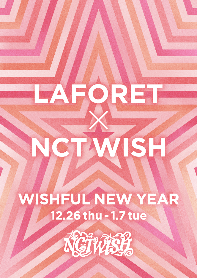 ラフォーレ原宿では、毎年恒例の福袋やレア商品・サンプル品などを限定価格で販売。また、グローバルボーイズグループ「エヌシーティー ウィッシュ(NCT WISH)」とコラボレーションし、ポップアップストアなどを展開します。