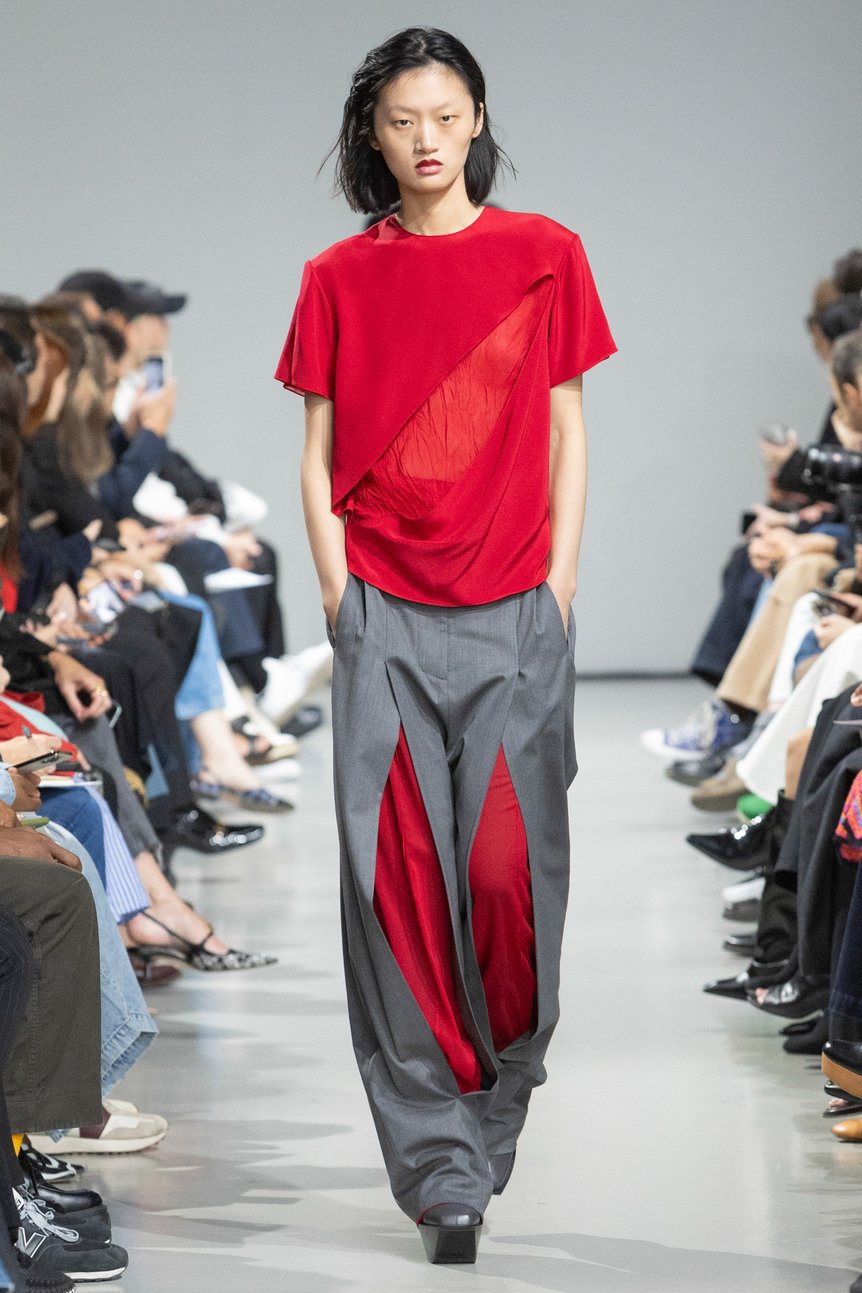 装飾を最小限に抑え、カッティング、生地、構造でミニマルな服の美しさを表現したコレクションはとてもエレガントだ。カラーパレットもモノトーンやベージュ、グレイに赤、ロウデニムのインディゴのみでシンプルさが際立つ。