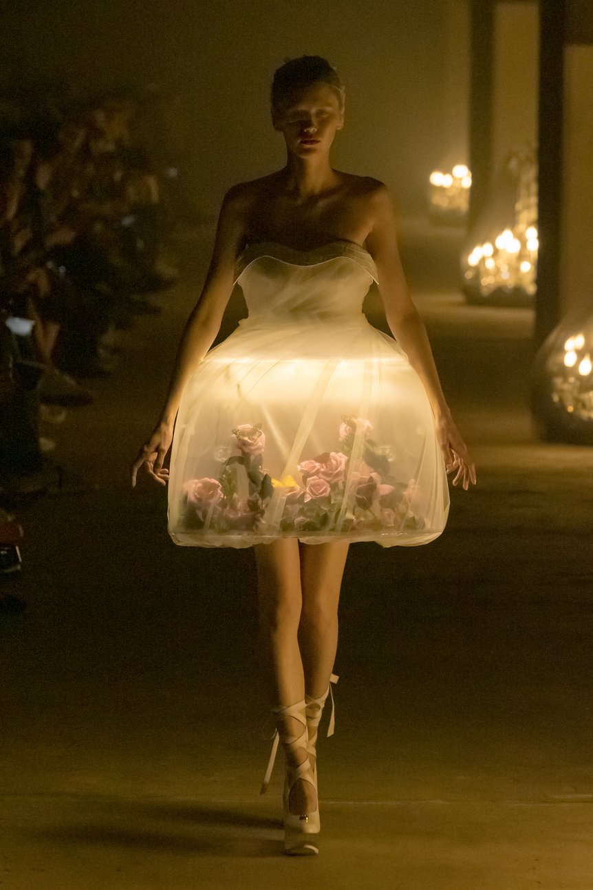 最後に皆が驚いたのは、ショーの締めくくりとして登場した暗闇に光る3体の「テラリウム」ドレス。不透明な世界に光を放つ、斬新で幻想的な演出には心を奪われる。オリジナリティに溢れたショーだった。