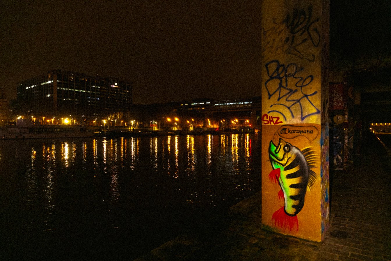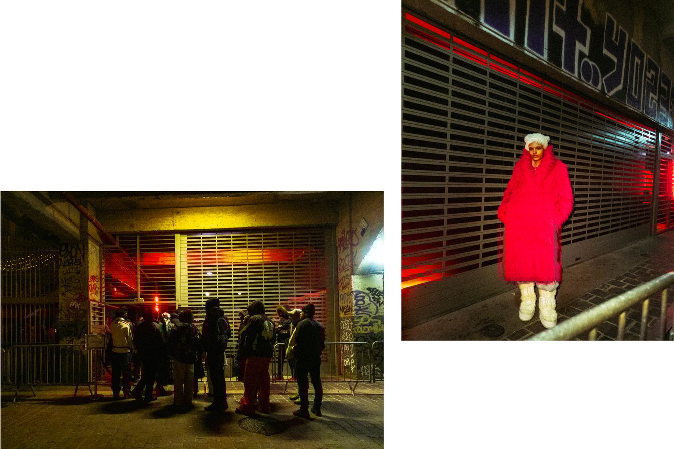 会場は、パリ13区のセーヌ川沿いにある文化施設「シテ・ド・ラ・モード・エ・デザイン(Cite de la Mode et du Design)」の地下1階に昨年オープンしたばかりのナイトクラブ「FVTVR」。入り口まで伸びる数百メートルの地下通路は、左手に川面を眺めつつ、ありとあらゆる壁面にグラフィティがボムされており、いかにもなアンダーグラウンドの雰囲気を漂わせる。