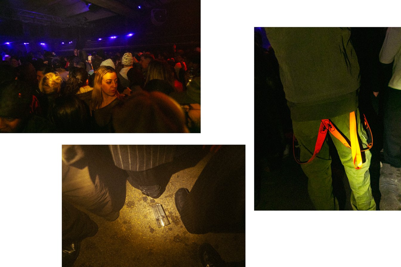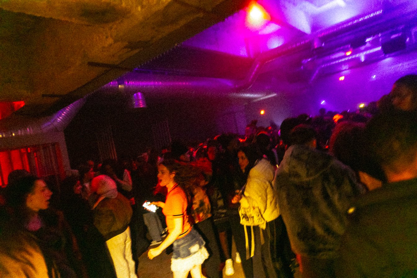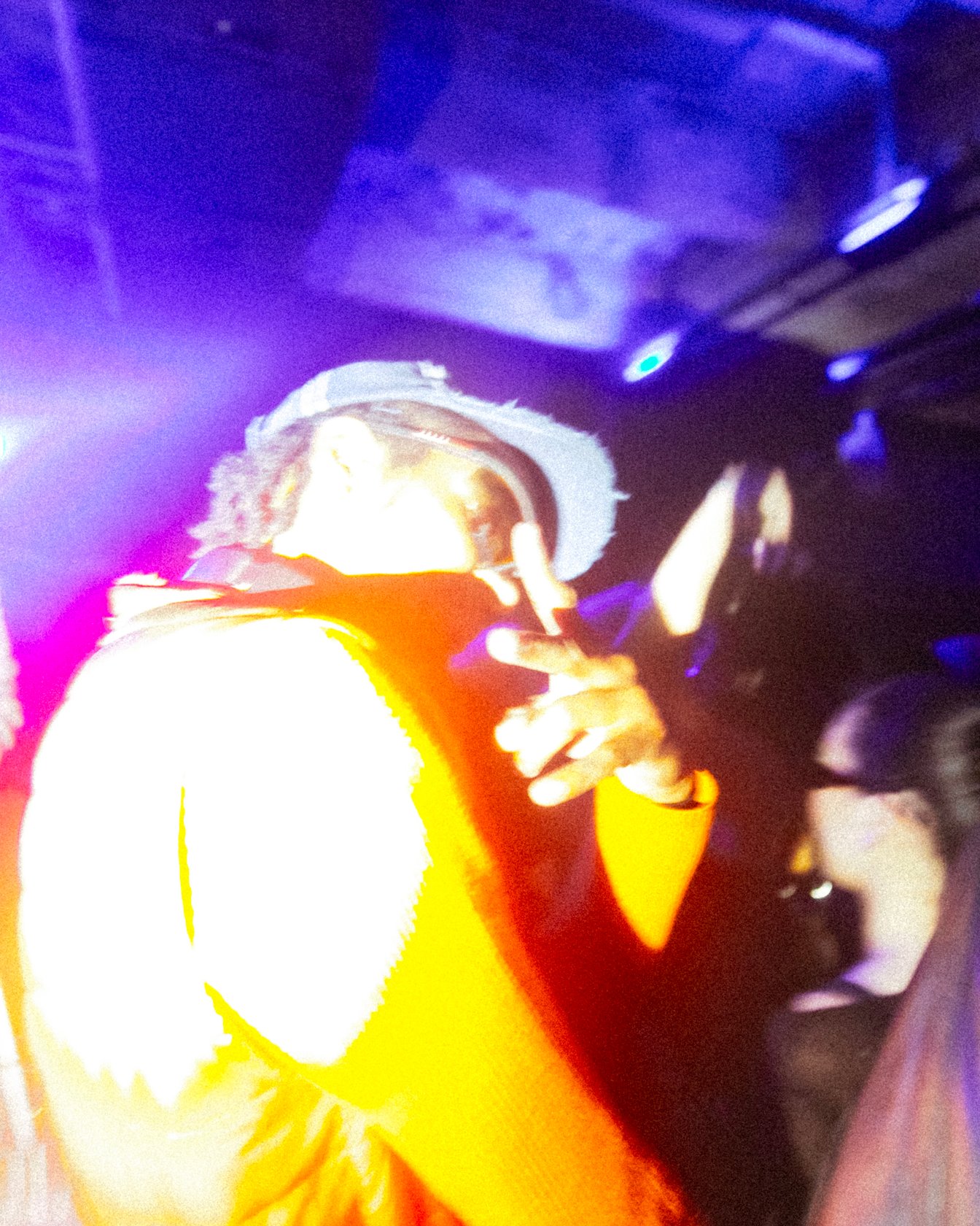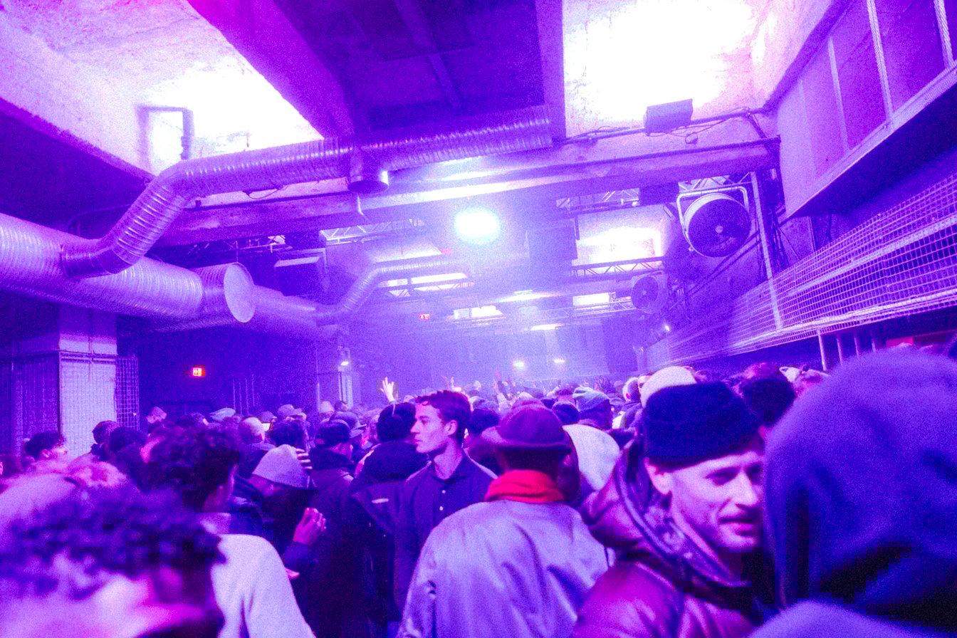 このラウンジエリアを抜けると前方に広がるのが、最大1000人を収容するメインフロアだ。99ジンジャーと友人の面々は、当然の如くキャパオーバーしたフロアなどお構いなしに、アフロビートからハードテクノ、ドラムンベース、ジャズファンク、USヒップホップまで、多様なジャンルを大胆かつ軽快によどみなく繋げ、来場者たちにスマホを掲げる隙も与えないほど踊らせる。そのエネルギーに満ち溢れた様子は、以下の写真に目を通すだけで伝わるはずだが、「フォトグラファーのカメラのレンズに結露が生じていた」と聞けば、ヒートアップ具合がより想像しやすいだろう。