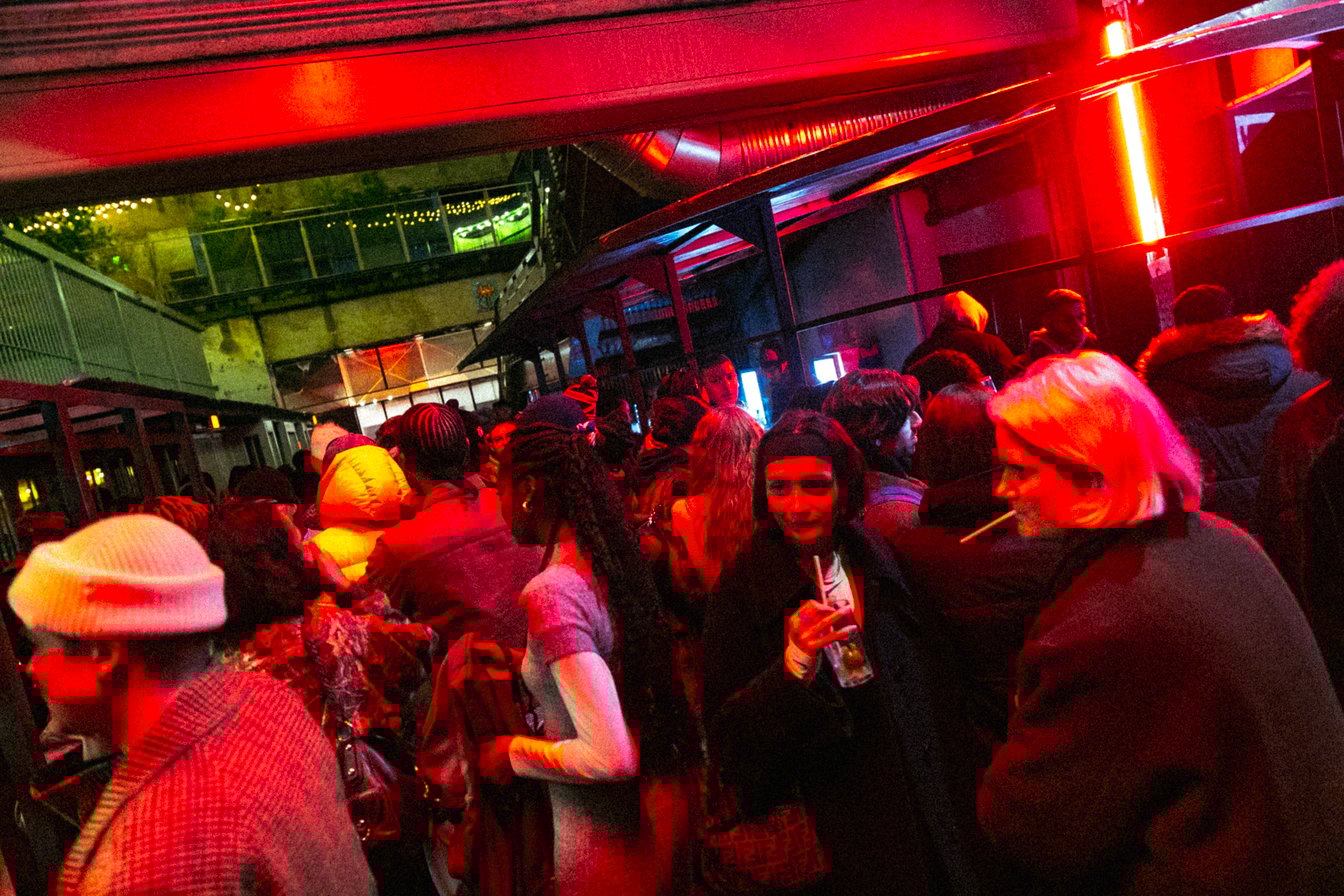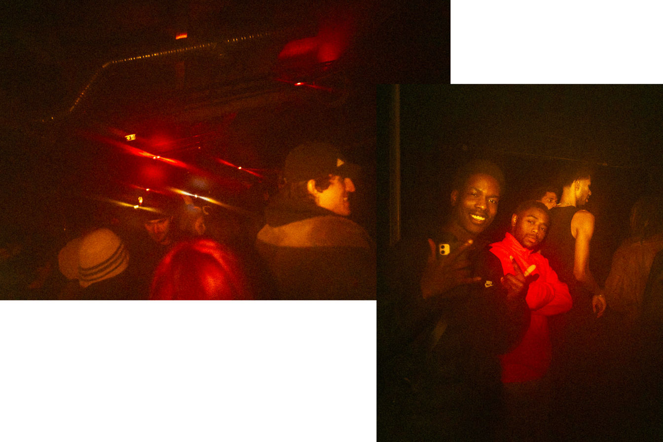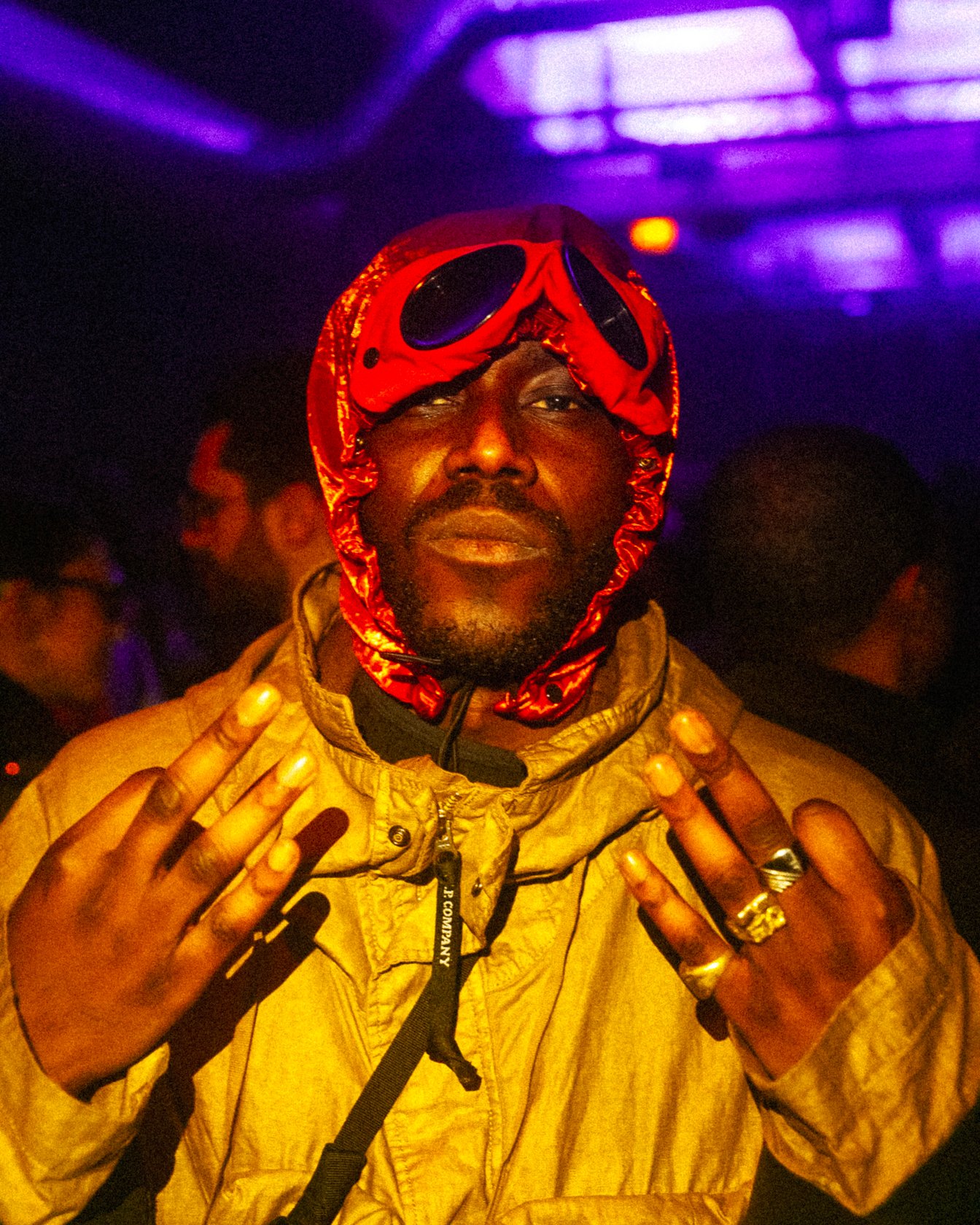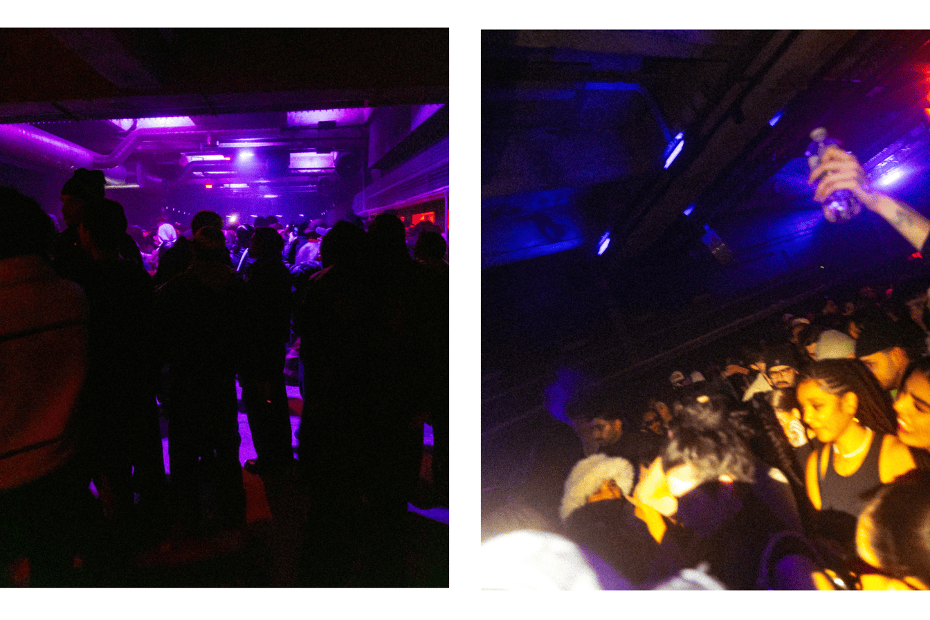 このラウンジエリアを抜けると前方に広がるのが、最大1000人を収容するメインフロアだ。99ジンジャーと友人の面々は、当然の如くキャパオーバーしたフロアなどお構いなしに、アフロビートからハードテクノ、ドラムンベース、ジャズファンク、USヒップホップまで、多様なジャンルを大胆かつ軽快によどみなく繋げ、来場者たちにスマホを掲げる隙も与えないほど踊らせる。そのエネルギーに満ち溢れた様子は、以下の写真に目を通すだけで伝わるはずだが、「フォトグラファーのカメラのレンズに結露が生じていた」と聞けば、ヒートアップ具合がより想像しやすいだろう。