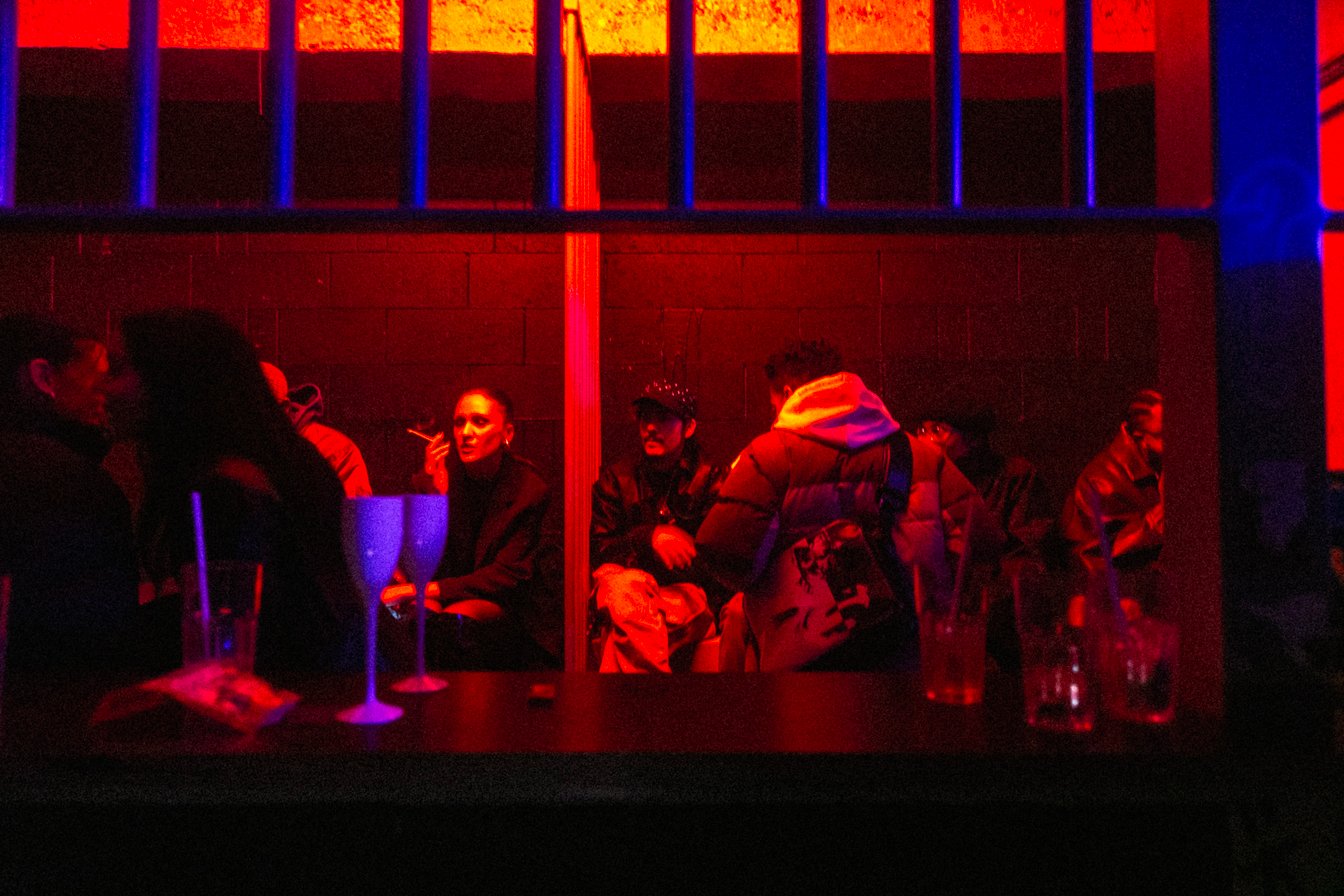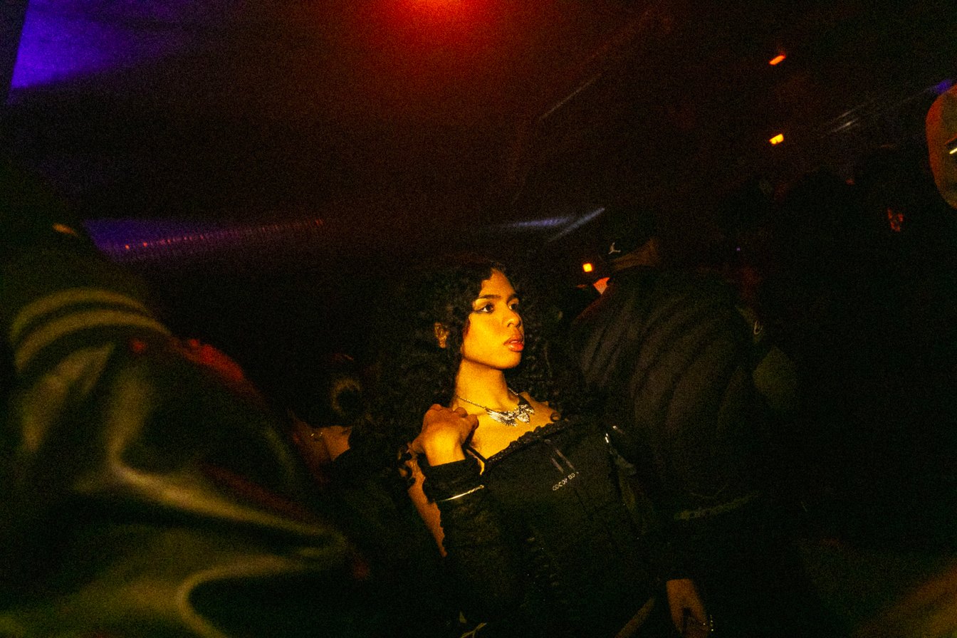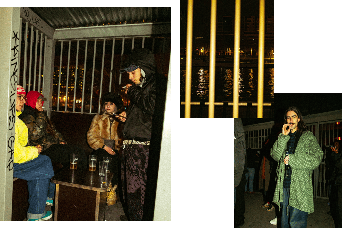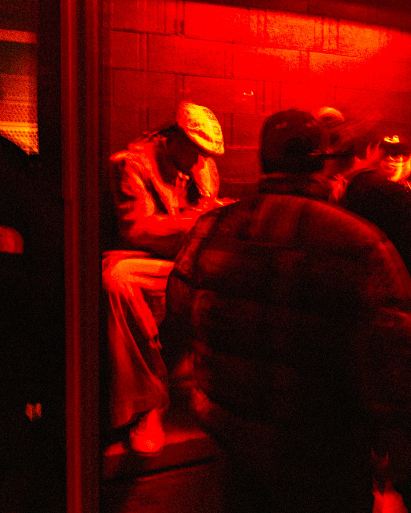このラウンジエリアを抜けると前方に広がるのが、最大1000人を収容するメインフロアだ。99ジンジャーと友人の面々は、当然の如くキャパオーバーしたフロアなどお構いなしに、アフロビートからハードテクノ、ドラムンベース、ジャズファンク、USヒップホップまで、多様なジャンルを大胆かつ軽快によどみなく繋げ、来場者たちにスマホを掲げる隙も与えないほど踊らせる。そのエネルギーに満ち溢れた様子は、以下の写真に目を通すだけで伝わるはずだが、「フォトグラファーのカメラのレンズに結露が生じていた」と聞けば、ヒートアップ具合がより想像しやすいだろう。