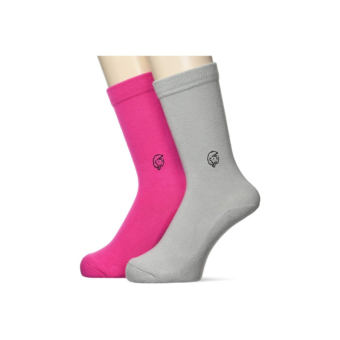 目を引くビビッドピンクとグレーというカラーコンビネーションのソックスセット。くるぶし部分にさりげなくあしらわれているのは、人気イラストレーター・長場雄のイラスト刺しゅうです。